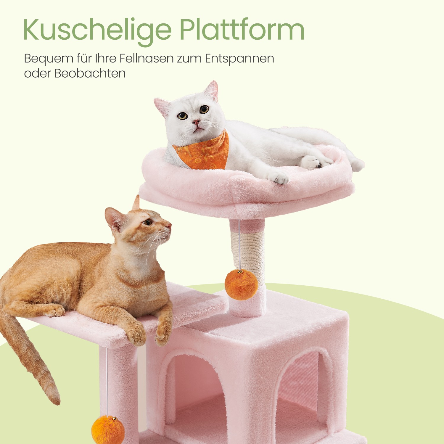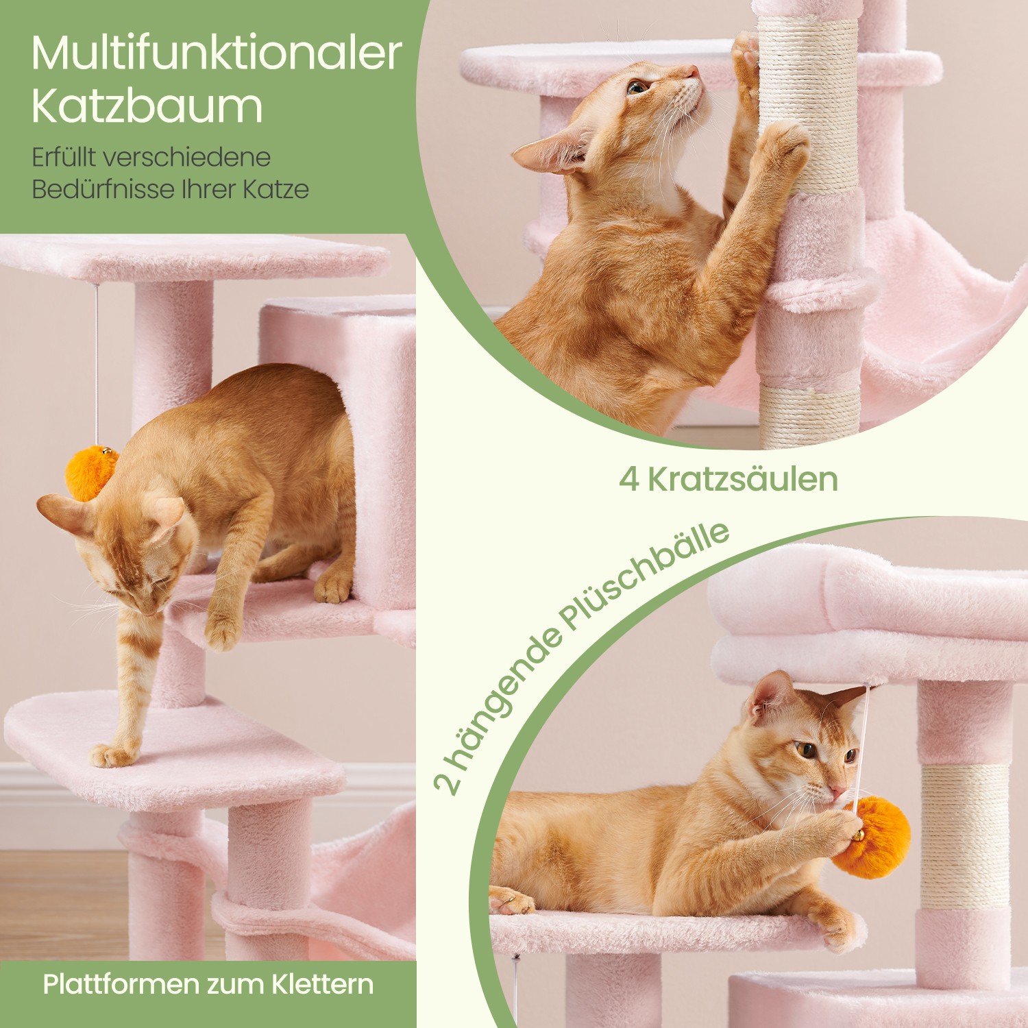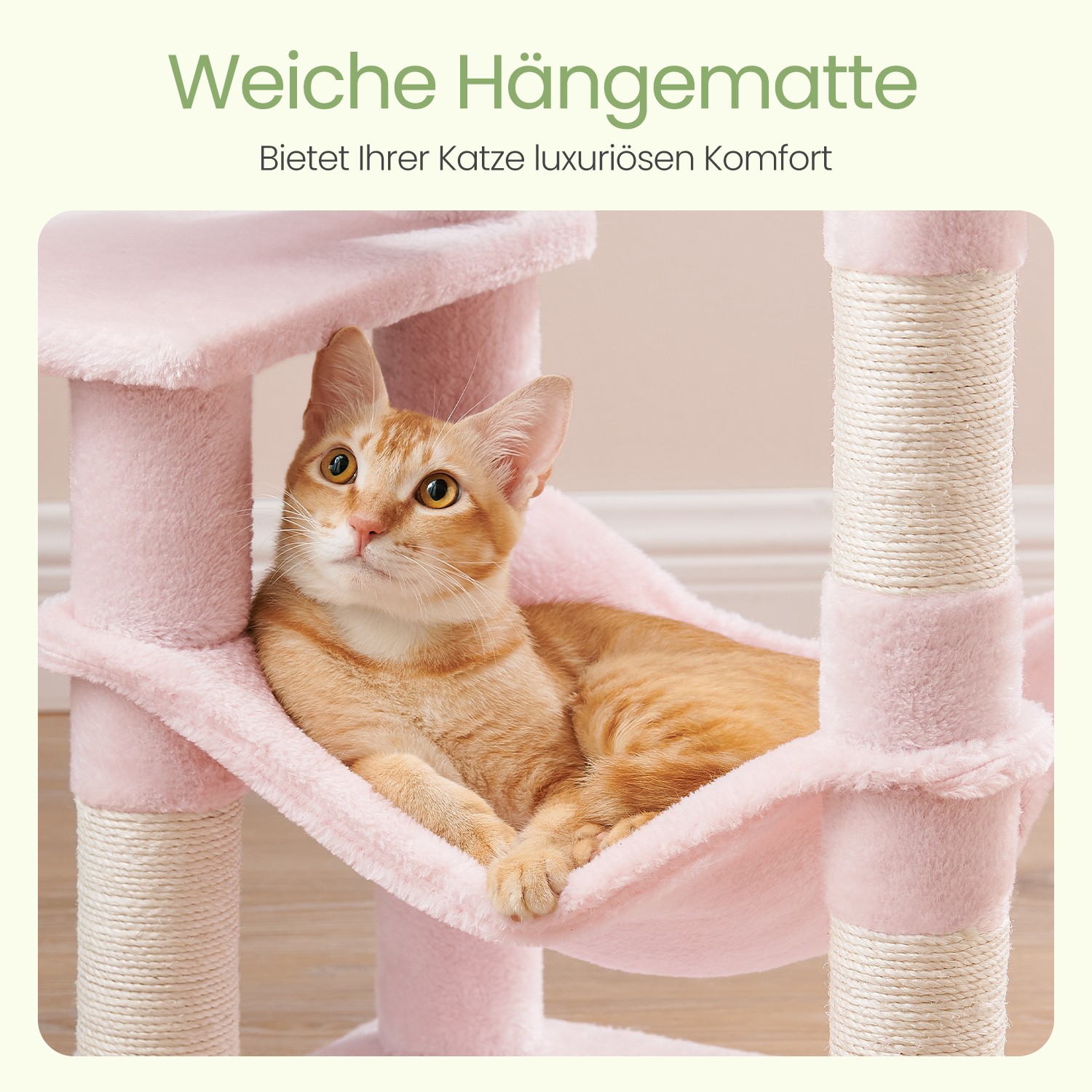 Cat tree, multi-level cat tree with cave, hammock, and 4 scratching posts, beige