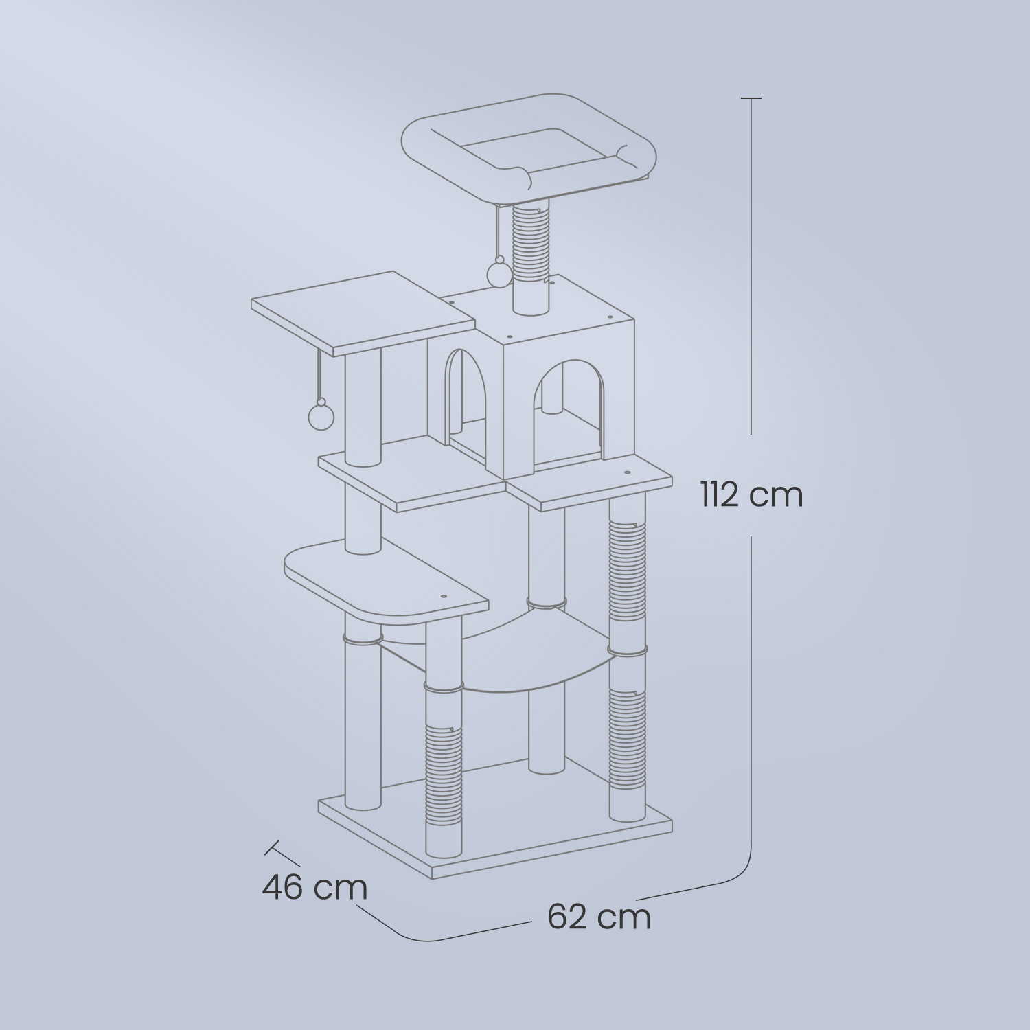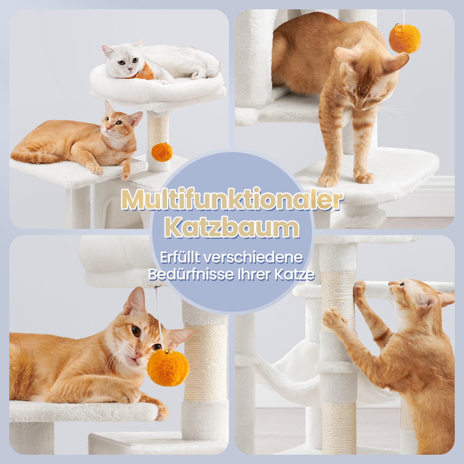 Cat tree, multi-level cat tree with cave, hammock, and 4 scratching posts, beige