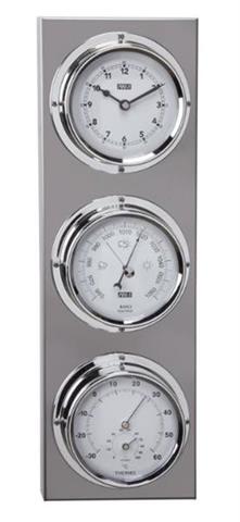 Outdoor Weather Station with Clock – 29.0723 This elegant outdoor weather station combines the functions of barometer, thermometer and hygrometer, enhanced with a clock. This unique product is a combination of aesthetics and functionality, designed to provide accurate measurements and an elegant appearance. Made of stainless steel. The barometer provides precise information on atmospheric pressure, allowing you to forecast the weather and plan outdoor activities. The thermometer helps monitor the temperature, both inside and outside the room, which is extremely useful for those concerned about thermal comfort. The hygrometer provides information on humidity, which is important for those interested in maintaining the right conditions inside their home or outside. In addition, this weather station has a clock, which not only allows you to read the time, but also adds elegance. The quality of the measurements of this weather station is very high, ensuring the precision and reliability of the results. This is an indispensable tool for meteorology enthusiasts, gardeners, outdoor sports people, and those who simply appreciate well-designed and functional items. This elegant outdoor weather station can also be a perfect gift for a loved one who is interested in the weather, or for someone who appreciates beauty and utility in one product. Whatever the occasion, this weather station is sure to live up to expectations and be a lasting keepsake. Dimensions: 38 x 12.2 cm Operating Range: Temperature: -20C – 50CHumidity: 20% – 98% RHAtmospheric Pressure: 1060 hPA – 960 hPA