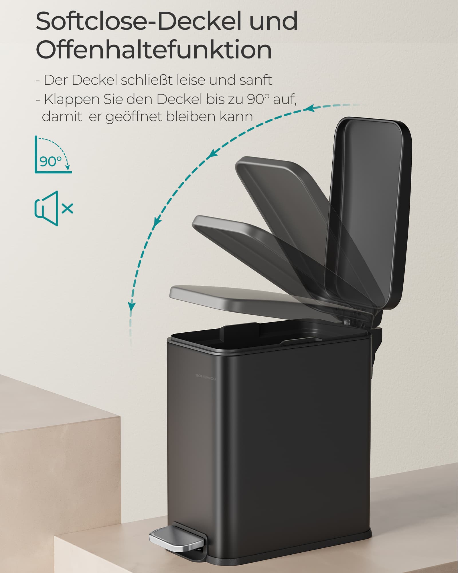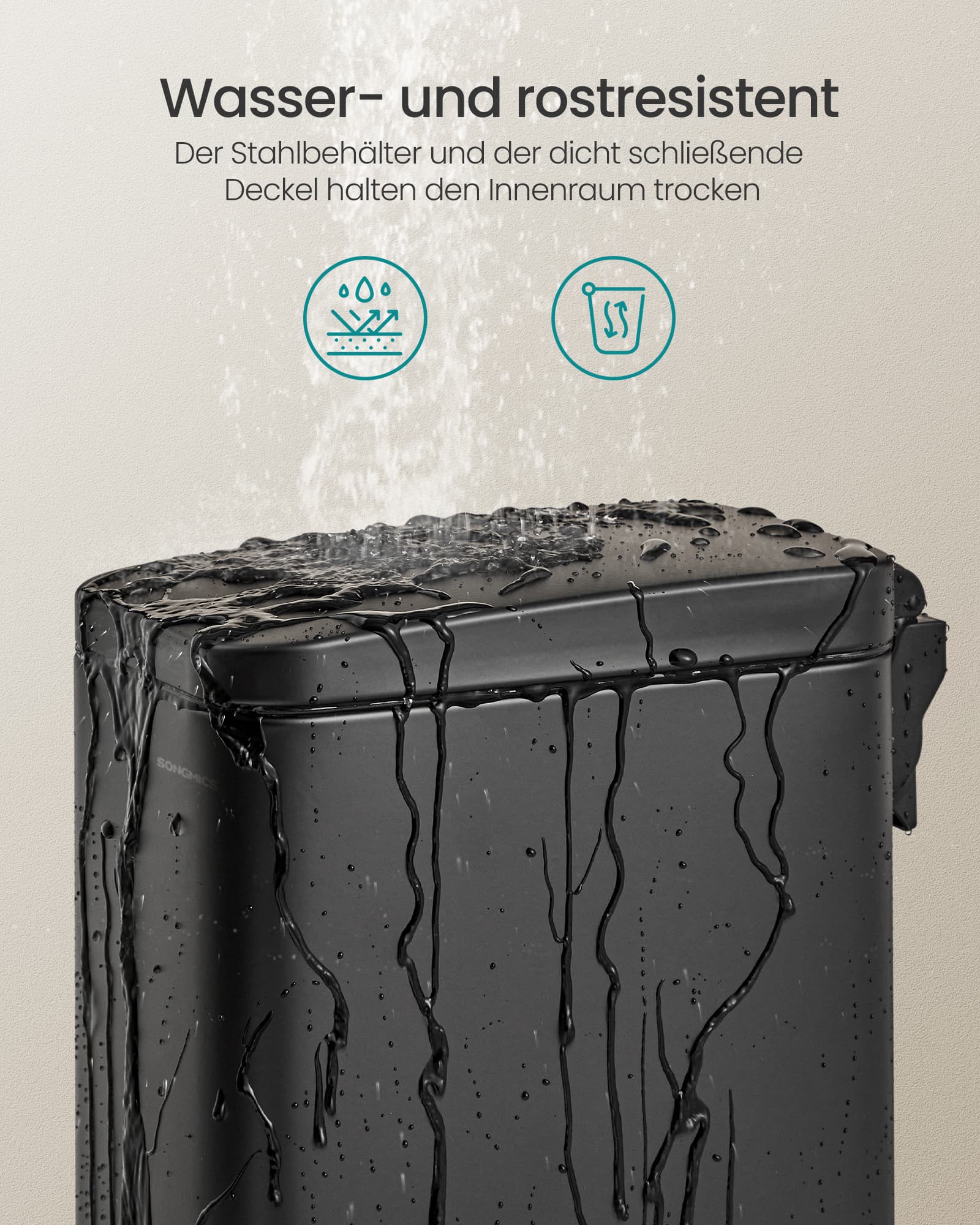 Material: Outer container made of steel, inner bucket made of PP plastic, base made of ABS plastic