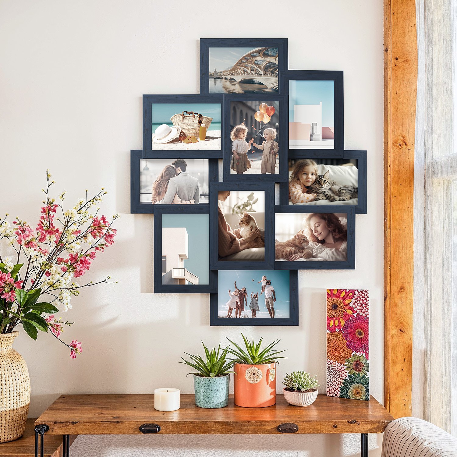 Picture frame collage, 10 photo frames for 10 x 15 cm pictures, photo collage, wall collage, multi-frame, wall decoration, vintage brown