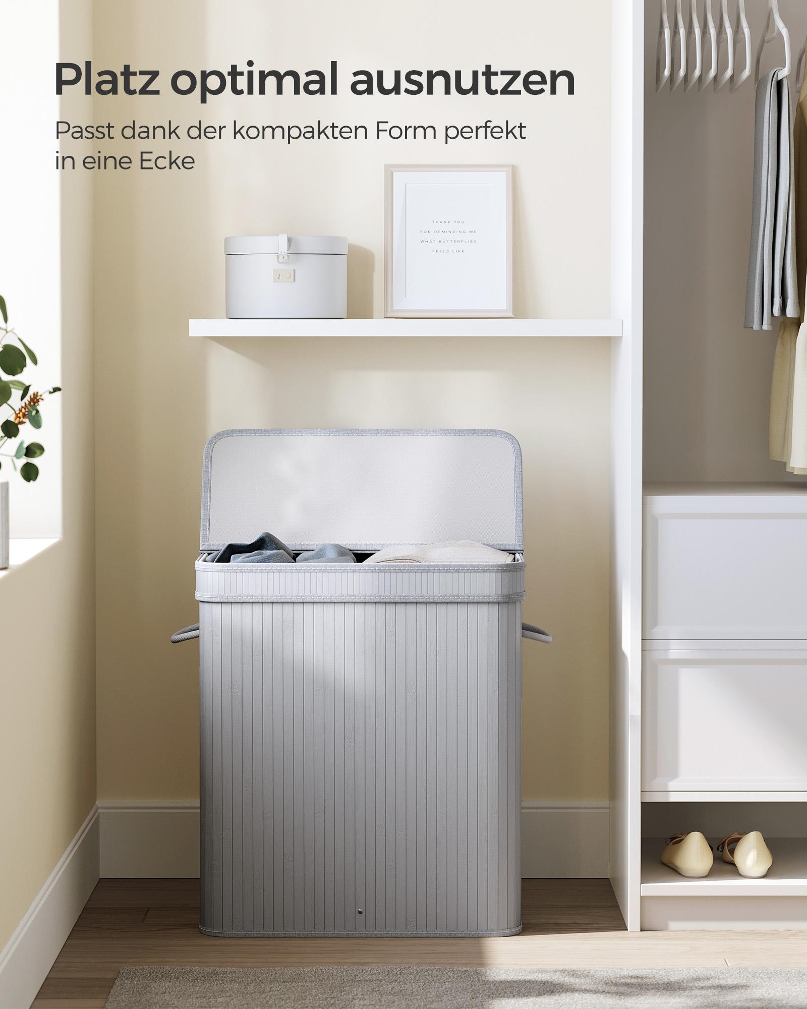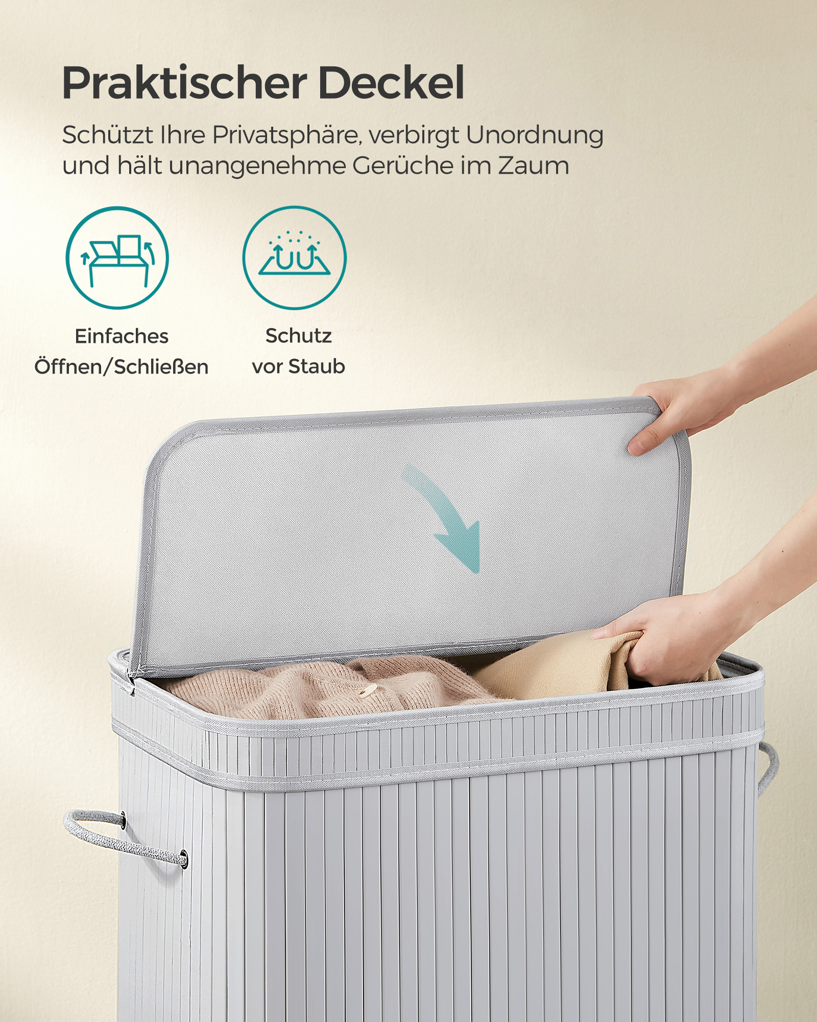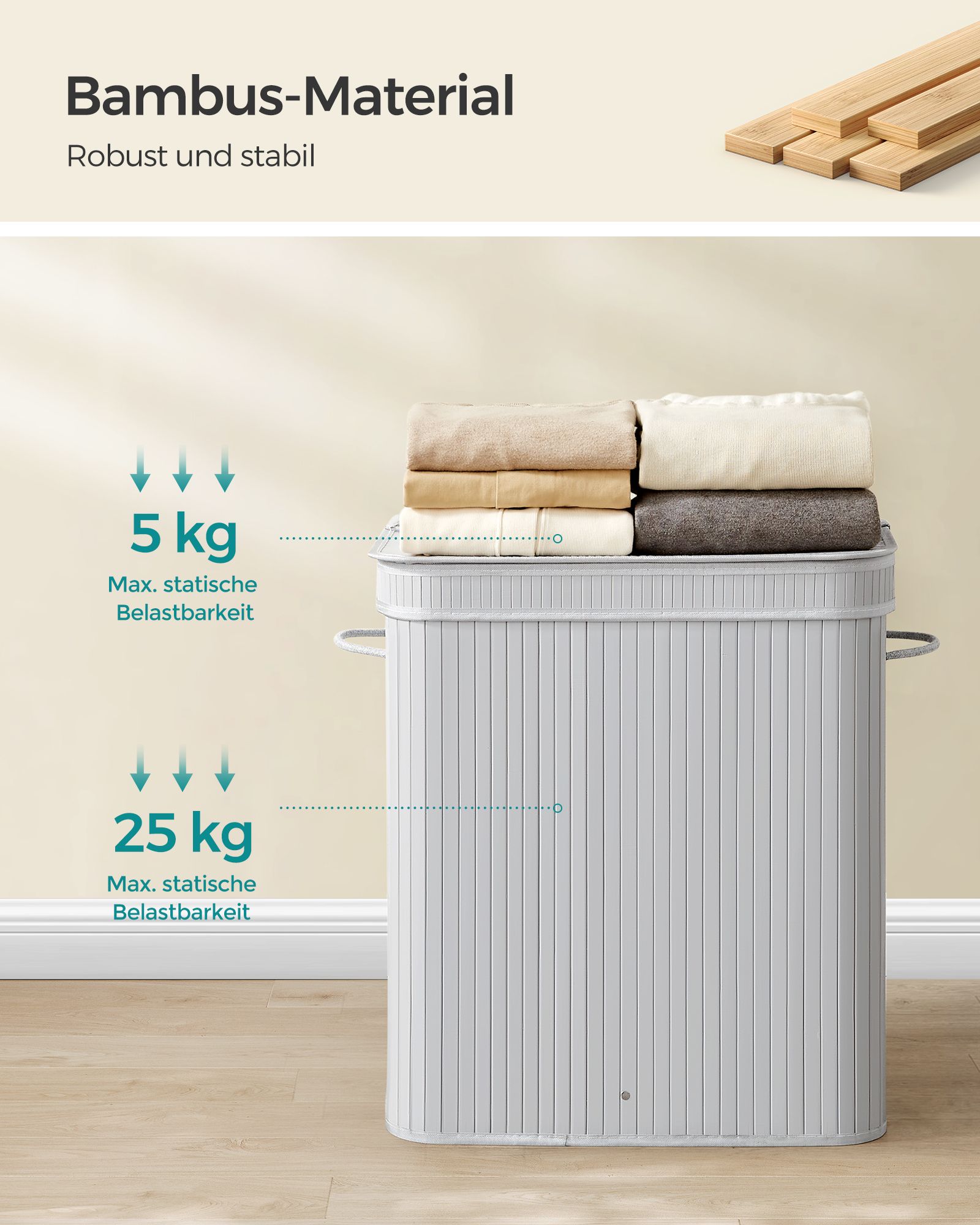 SONGMICS laundry basket with lid, 100 liters, bamboo laundry collector, removable and machine-washable laundry bag, with handles, for laundry room, bedroom, living room, natural color LCB063N01