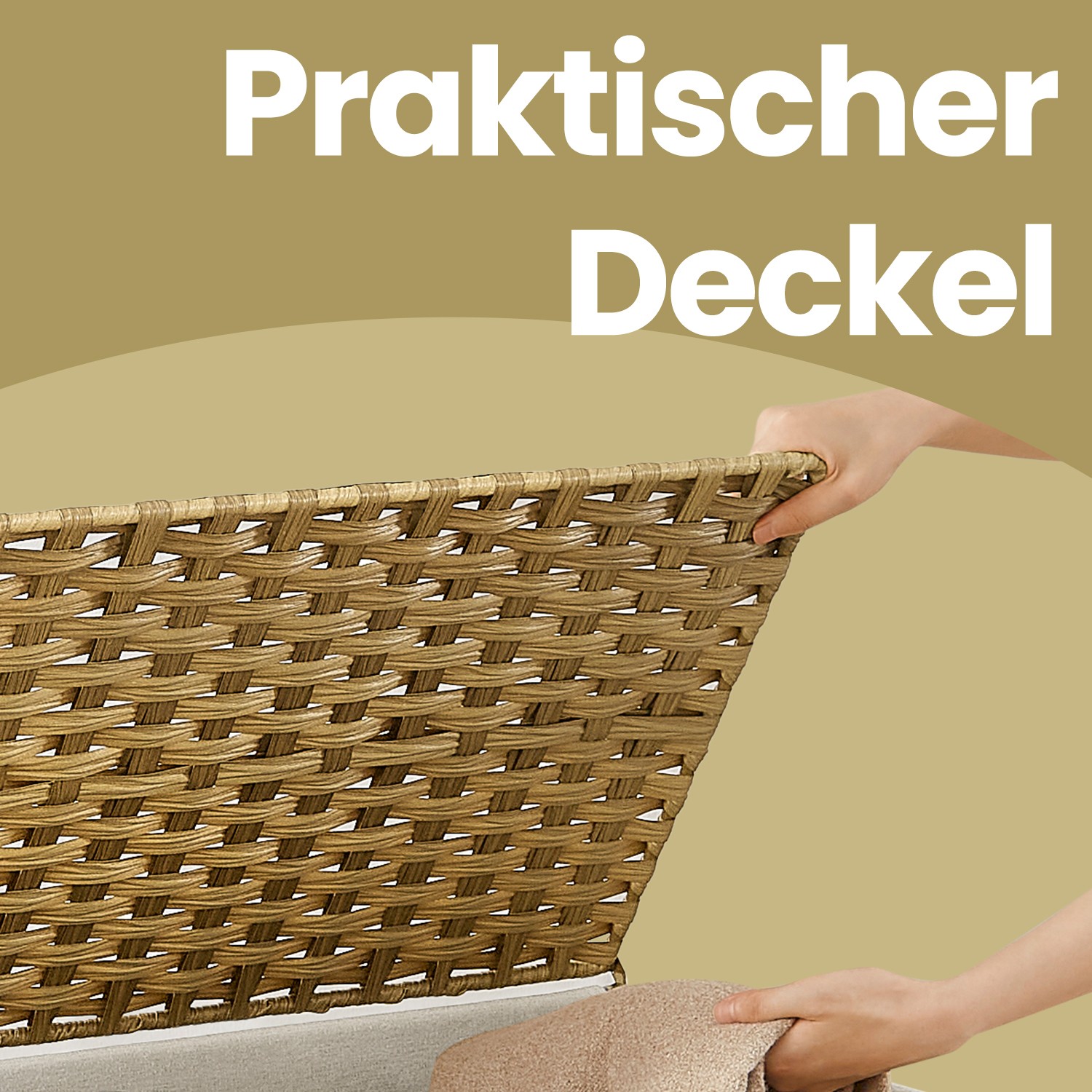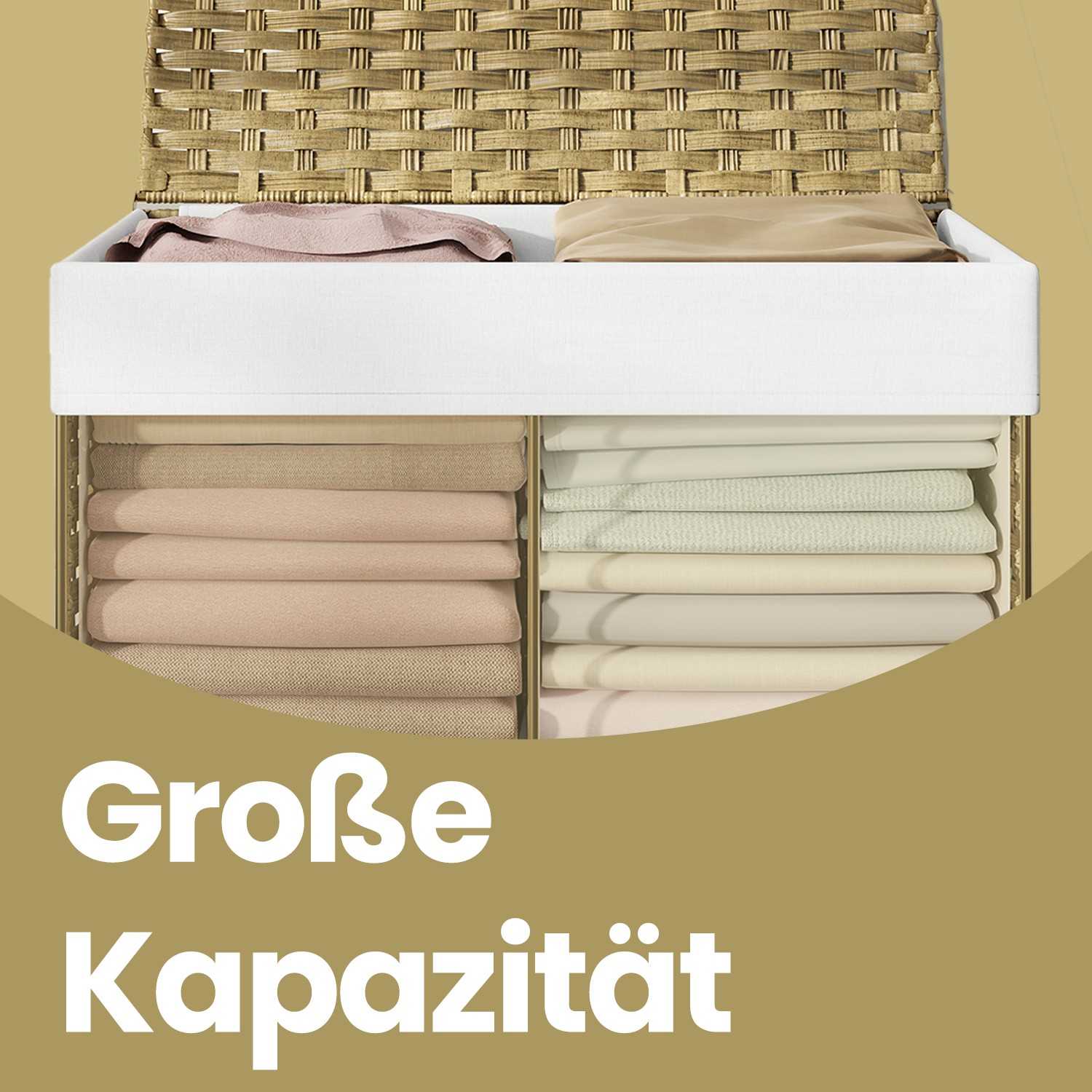 Laundry basket 90 liters, hand-woven, laundry collector made of synthetic rattan, foldable, lid and handles, removable laundry bag, natural color
