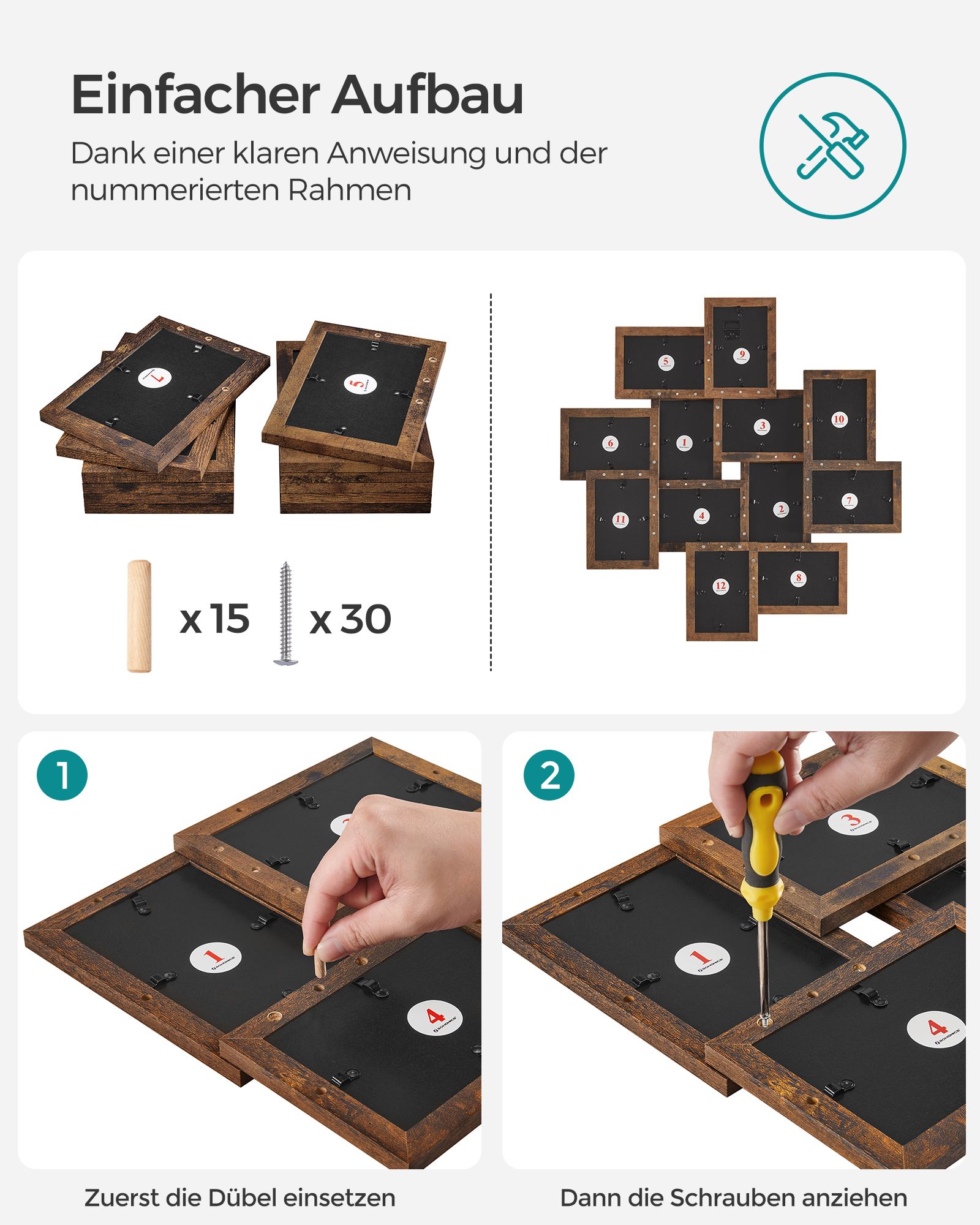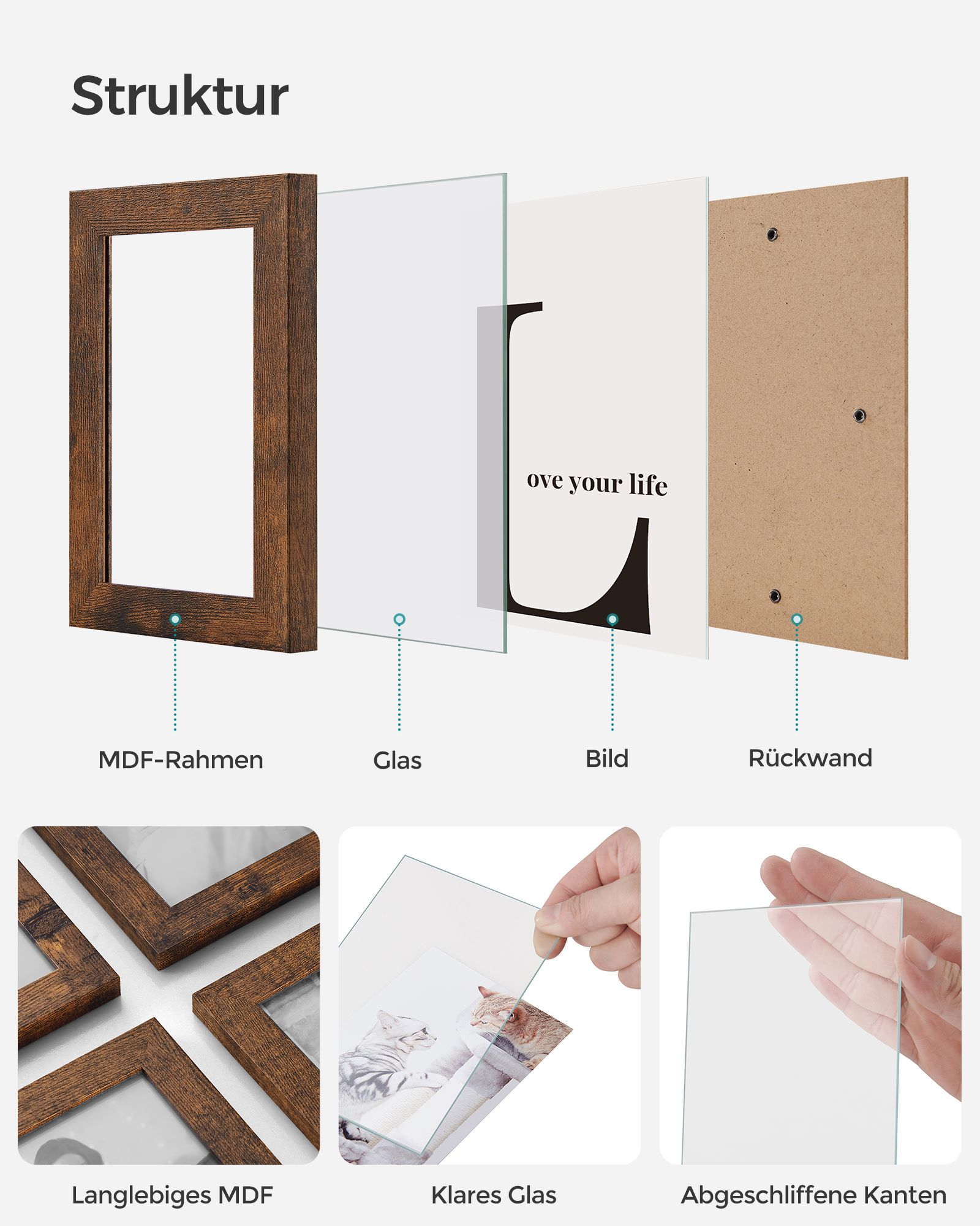 SONGMICS Picture Frame Collage, 12 Photo Frames for 10 x 15 cm Pictures, Photo Collage, Wall Collage, Multi-Frame, Wall Decoration