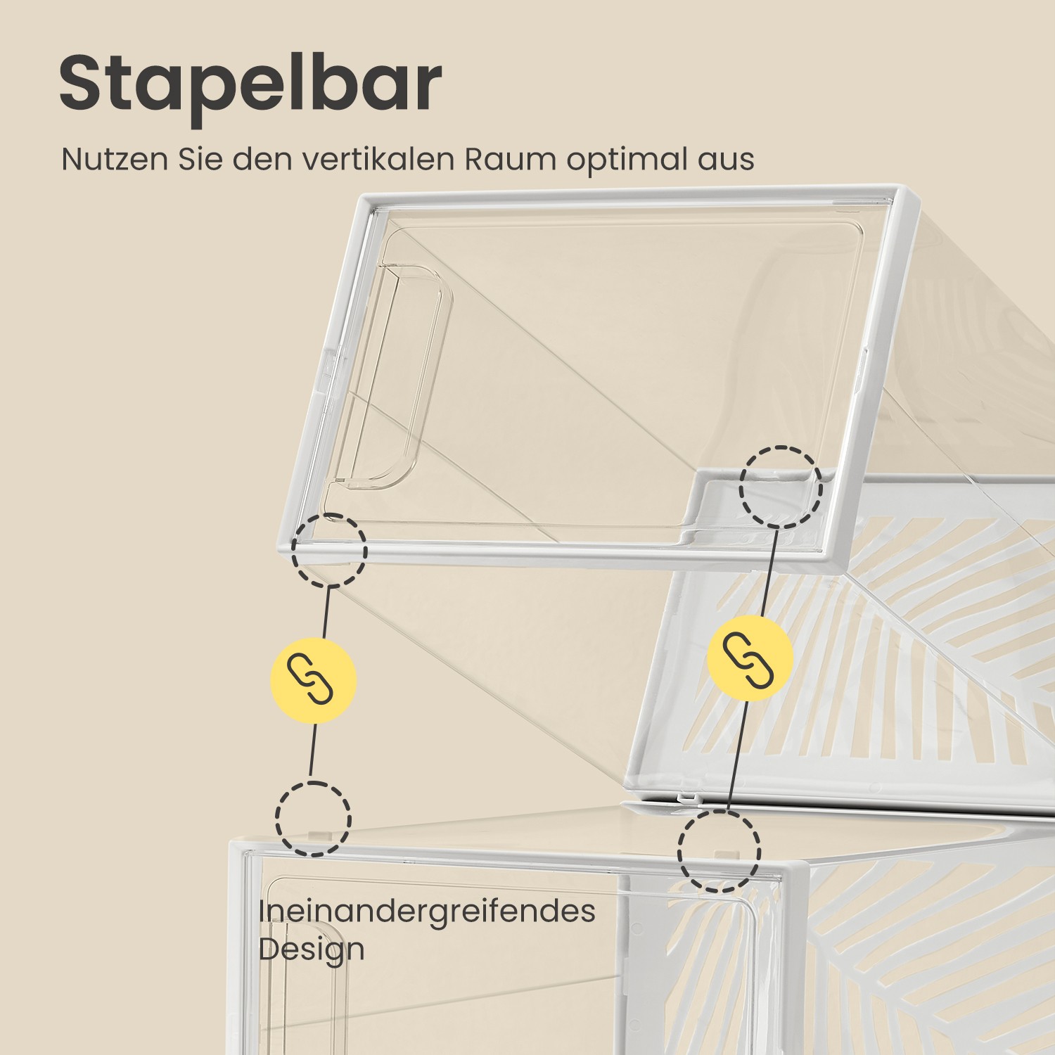 Product details: – Color: Transparent white – Material: PET body, ABS frame – Size per shoe box: 33.5 x 23 x 14 cm (D x W x H) – Internal size per shoe box: 30 x 22.6 x 13.5 cm (D x W x H) – Total weight: 4.6 kg Scope of delivery: – 12 x shoe box – 1 x instructions SONGMICS Notes: – Please assemble the product strictly according to the instructions. – Please measure your shoes before purchasing and check that they fit in these shoe boxes.