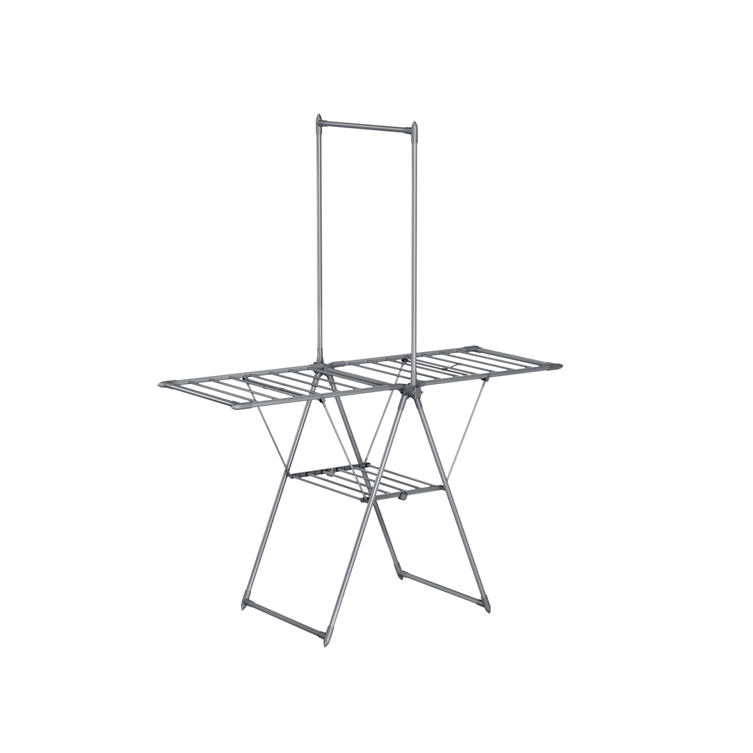 SONGMICS Collapsible Clothes Drying Rack, 2-Tier, Free-Standing, 1 Top Hanger Bar, 2 Height-Adjustable Wings, 24 Rods, Space-Saving, Gray LLR521G01