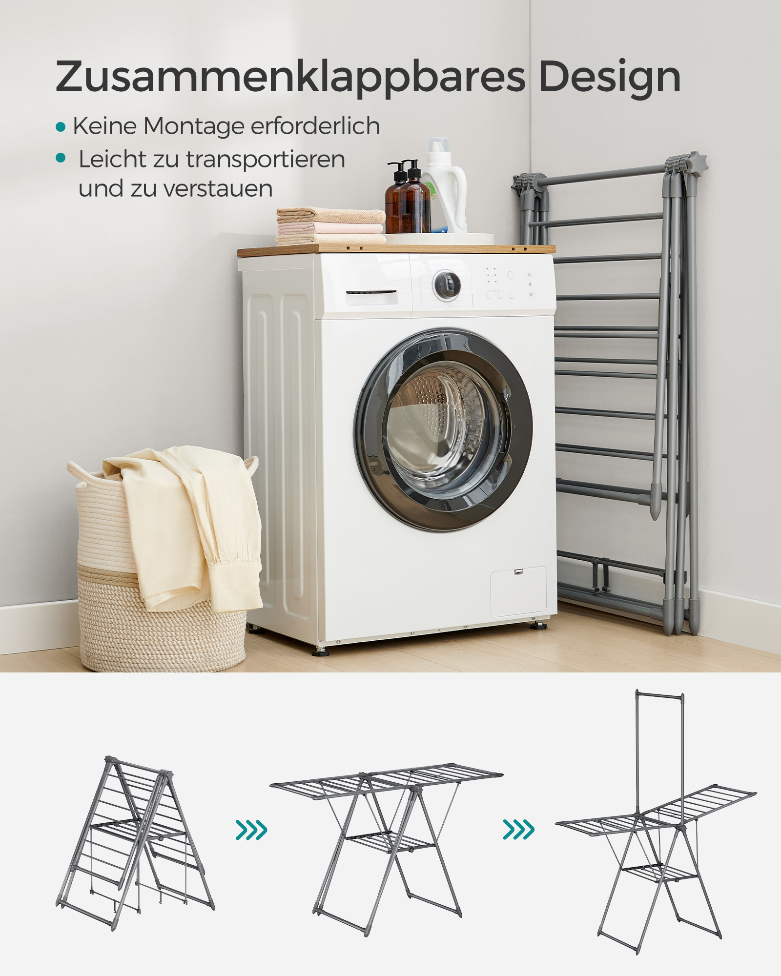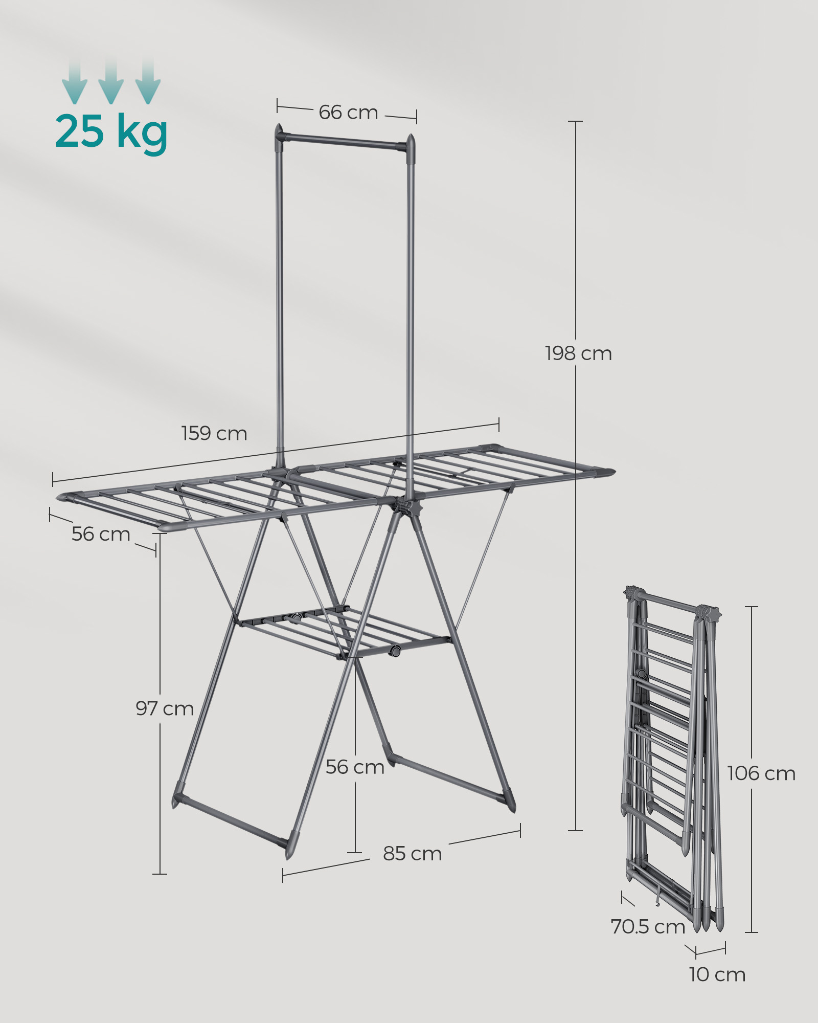 Size of the rack when folded: 70.5 x 106 x 10 cm (D x W x H)