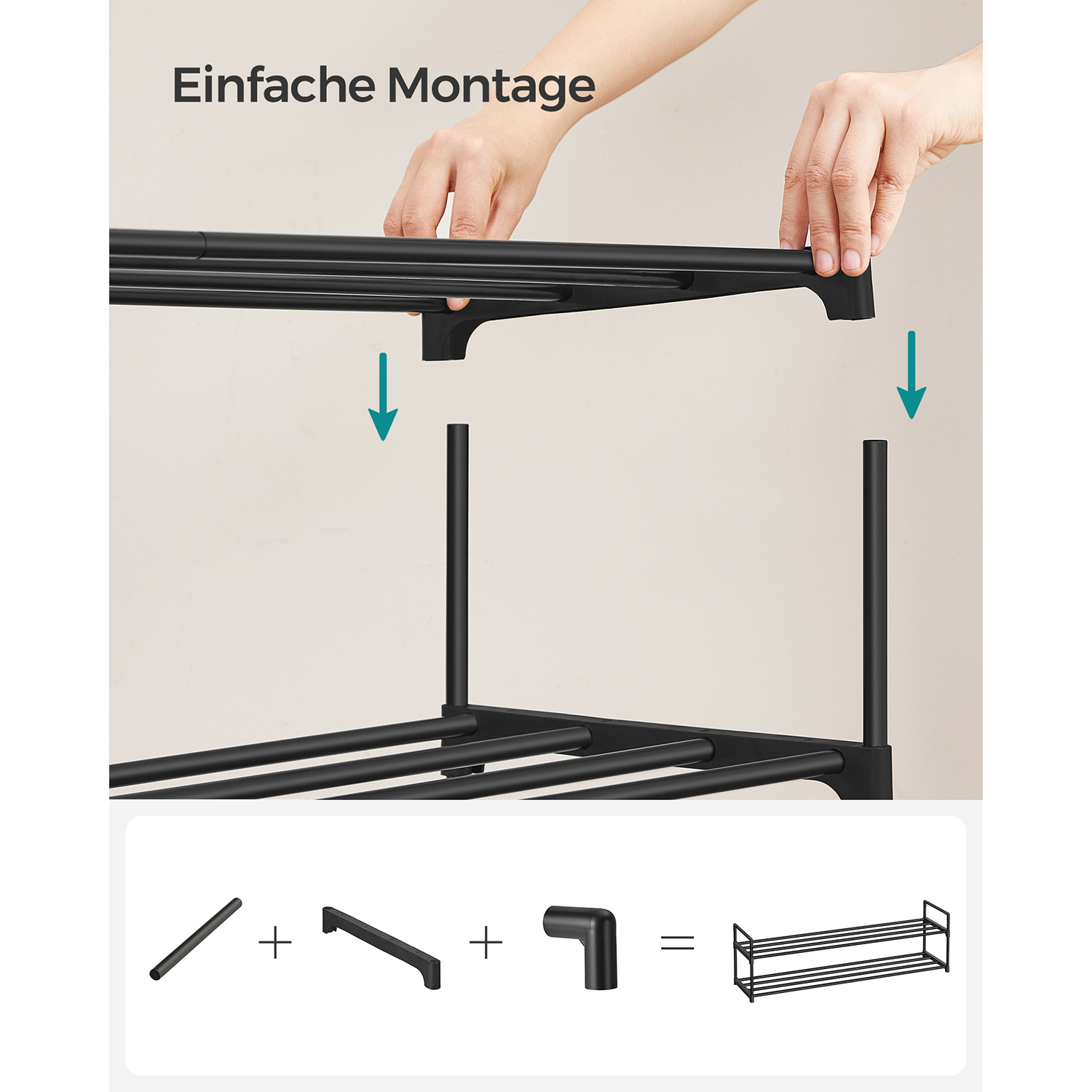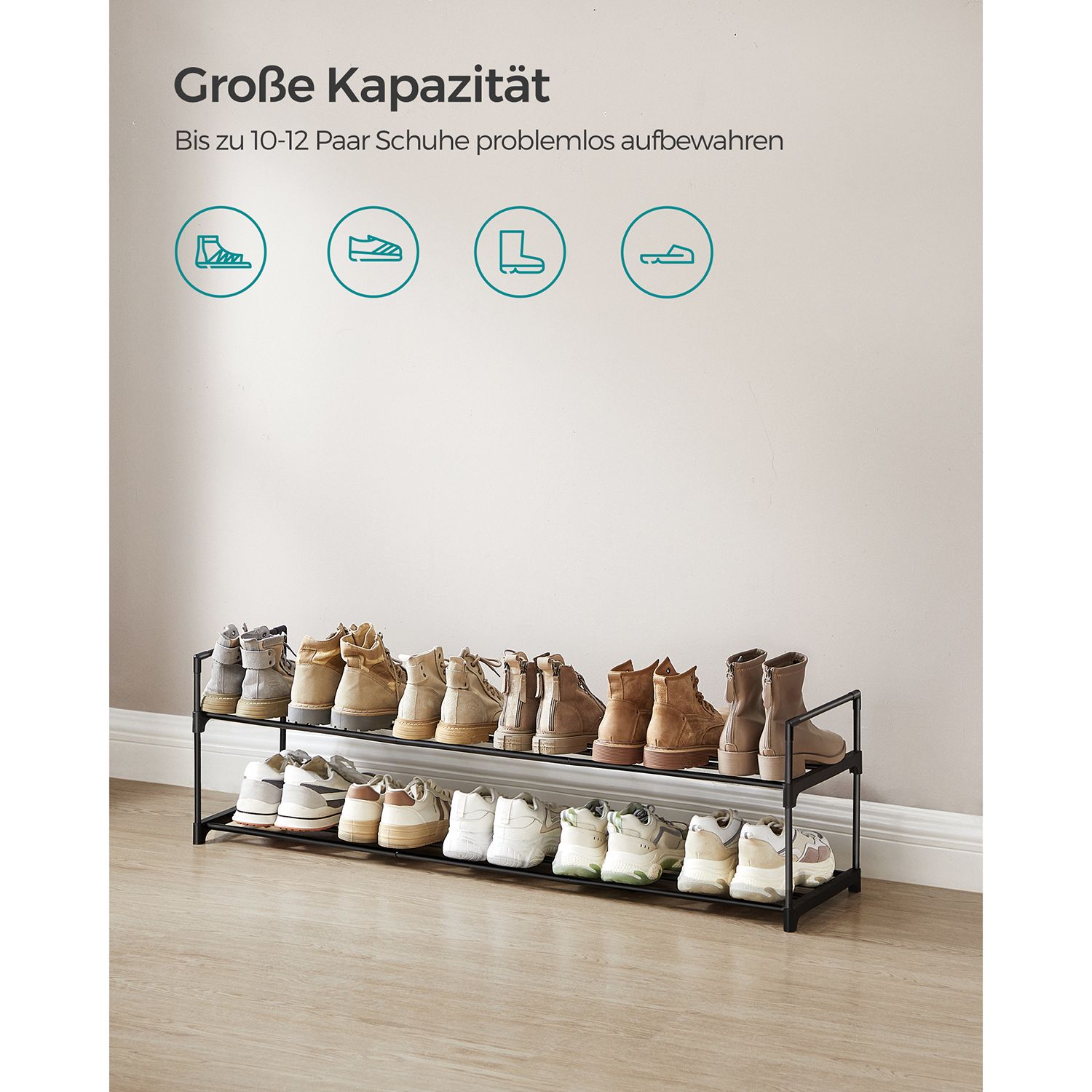 SONGMICS shoe rack with 2 levels, metal shoe storage, for up to 10 pairs of shoes, shoe organizer for living room, hallway, and dressing room, 92 x 30 x 33 cm, black LSA12BK