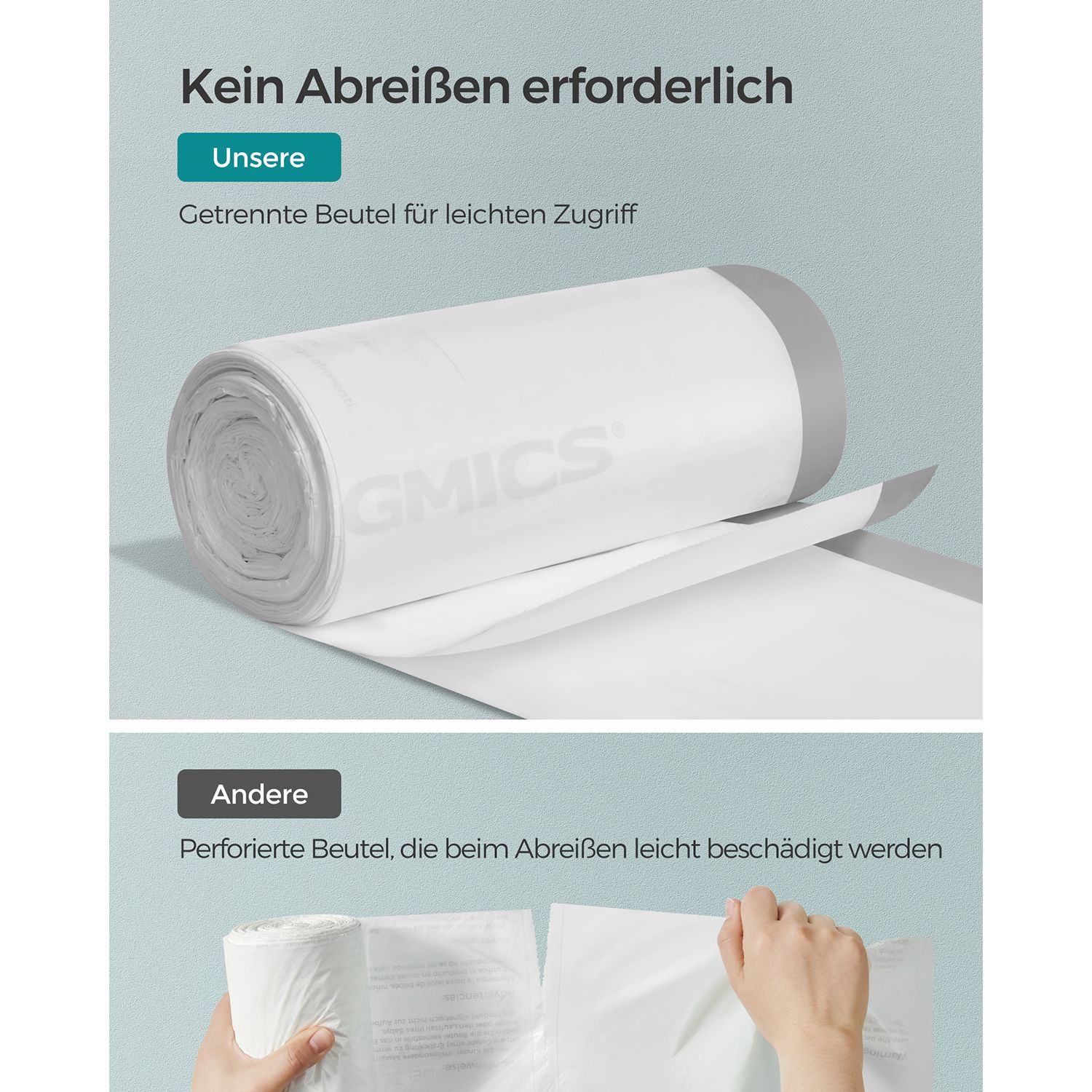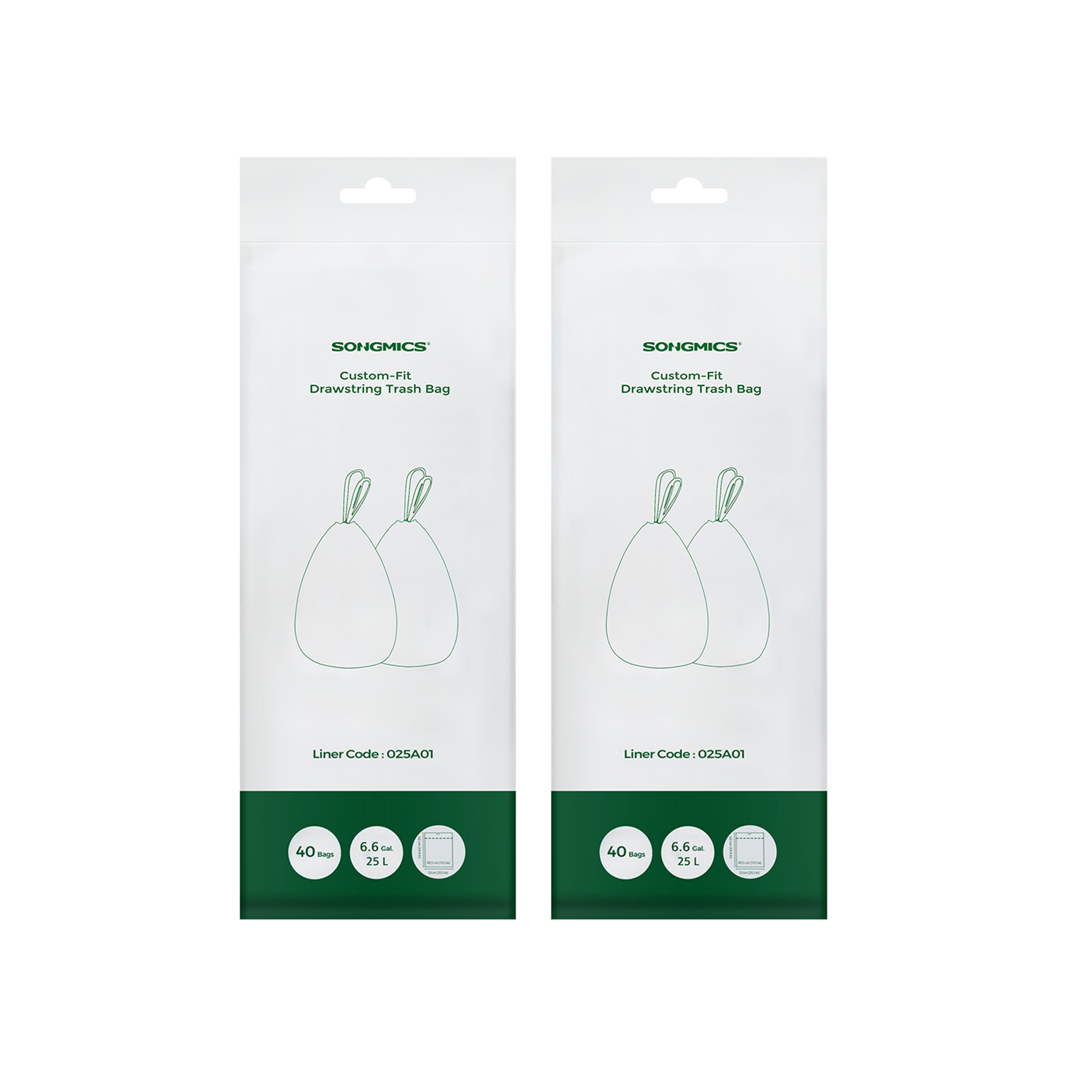 SONGMICS Garbage Bags with Drawstring, Garbage Bags for 25 Liter Trash Cans, Garbage Bags for Kitchen Trash Cans, Code 025A01, 1 Roll, 40 Pieces, White KRB025A01