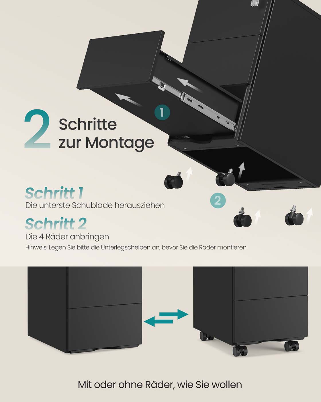 Max. static load capacity of each drawer: 5 kg