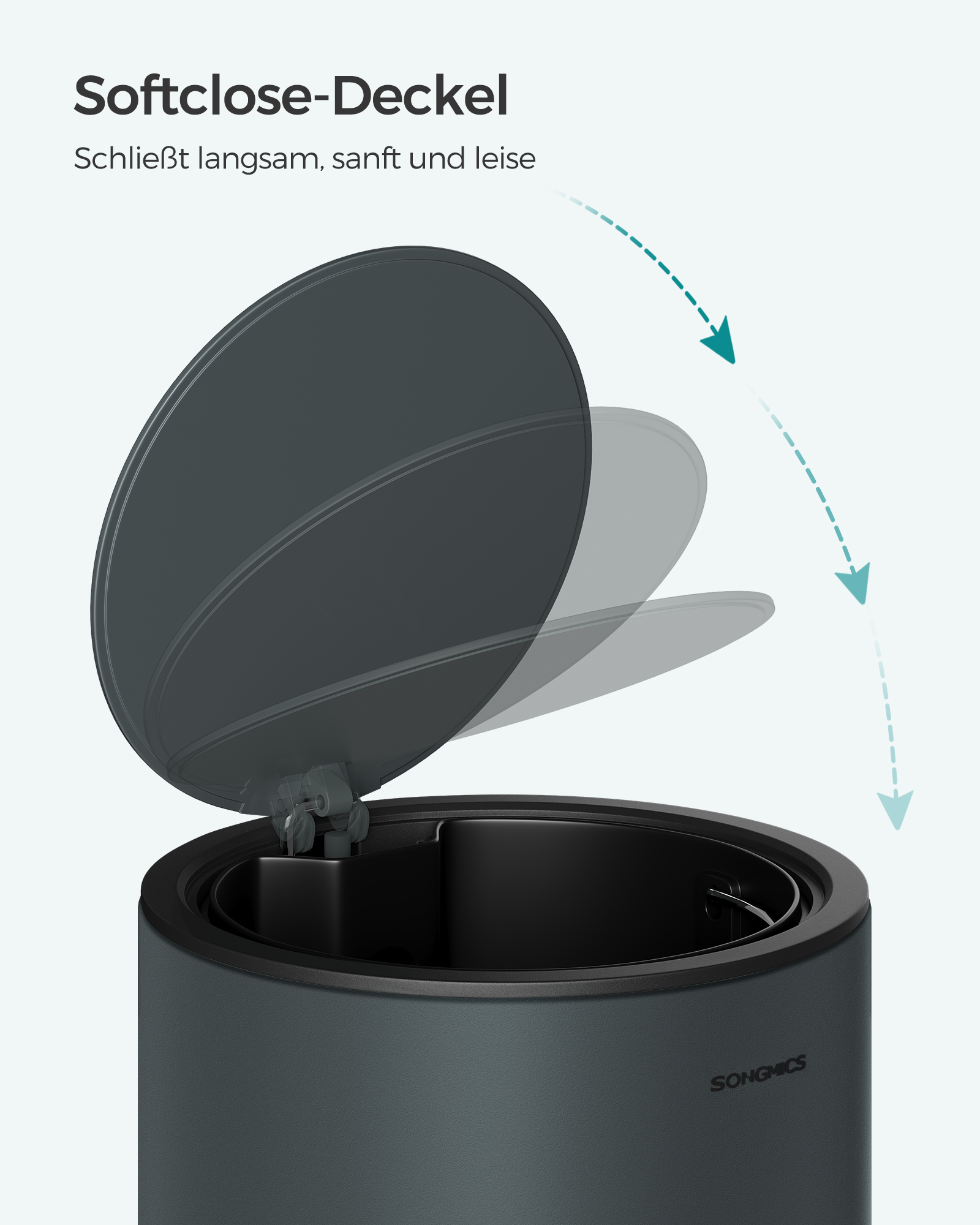 SONGMICS cosmetic bin, 3 liters, bathroom trash can, small trash can with lid, soft close, removable plastic inner bucket, for bathroom, office, steel, black LTB011B01