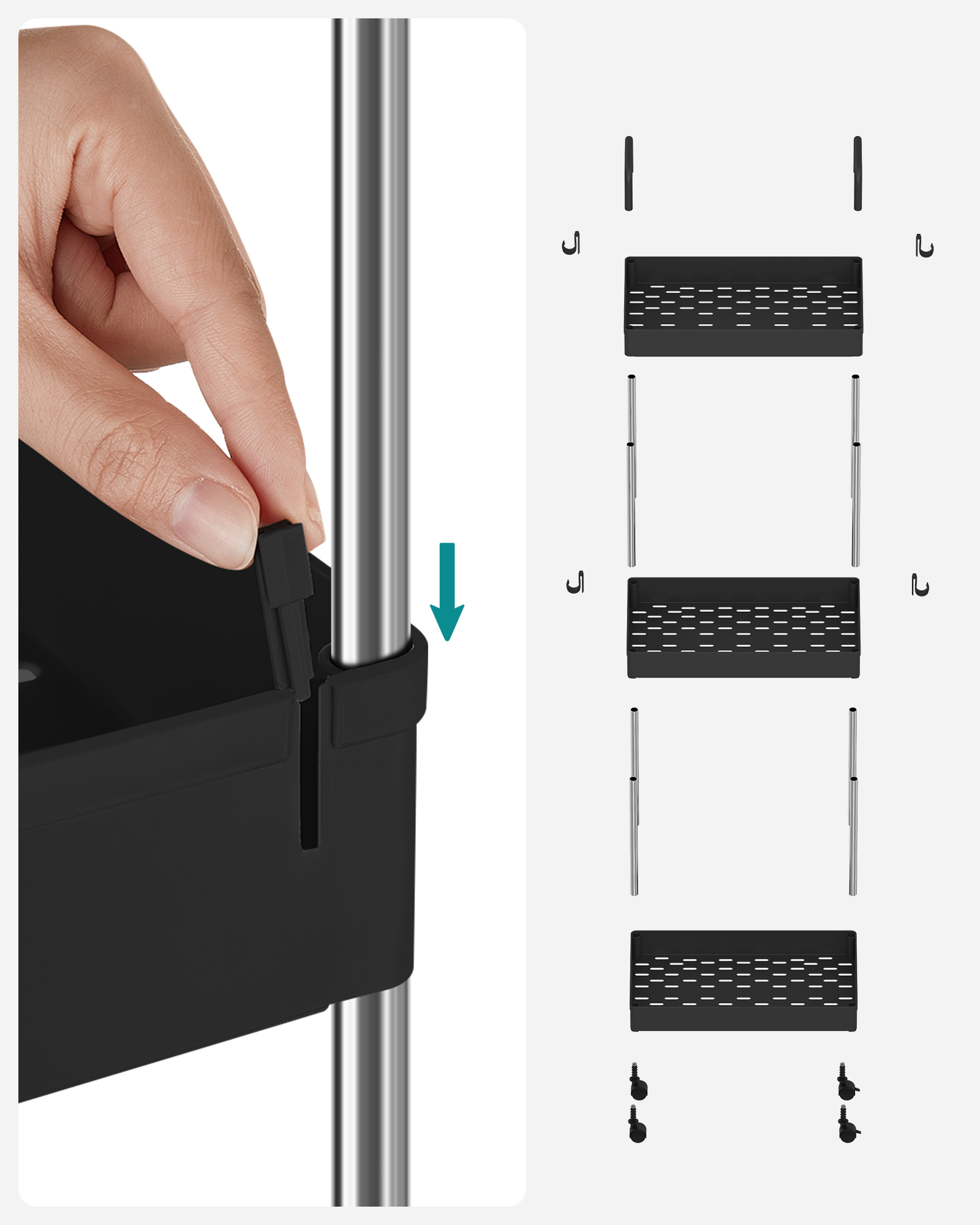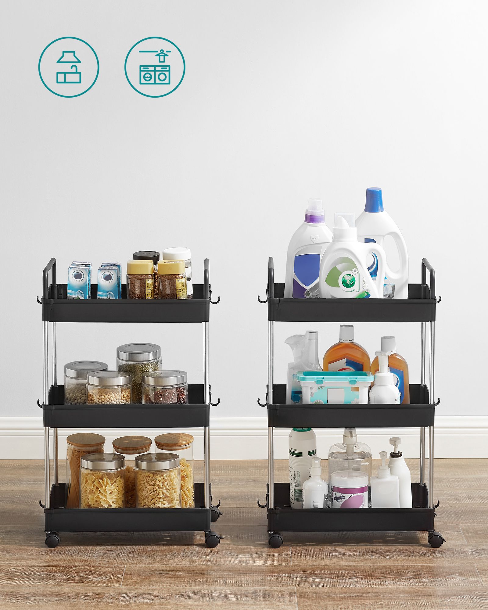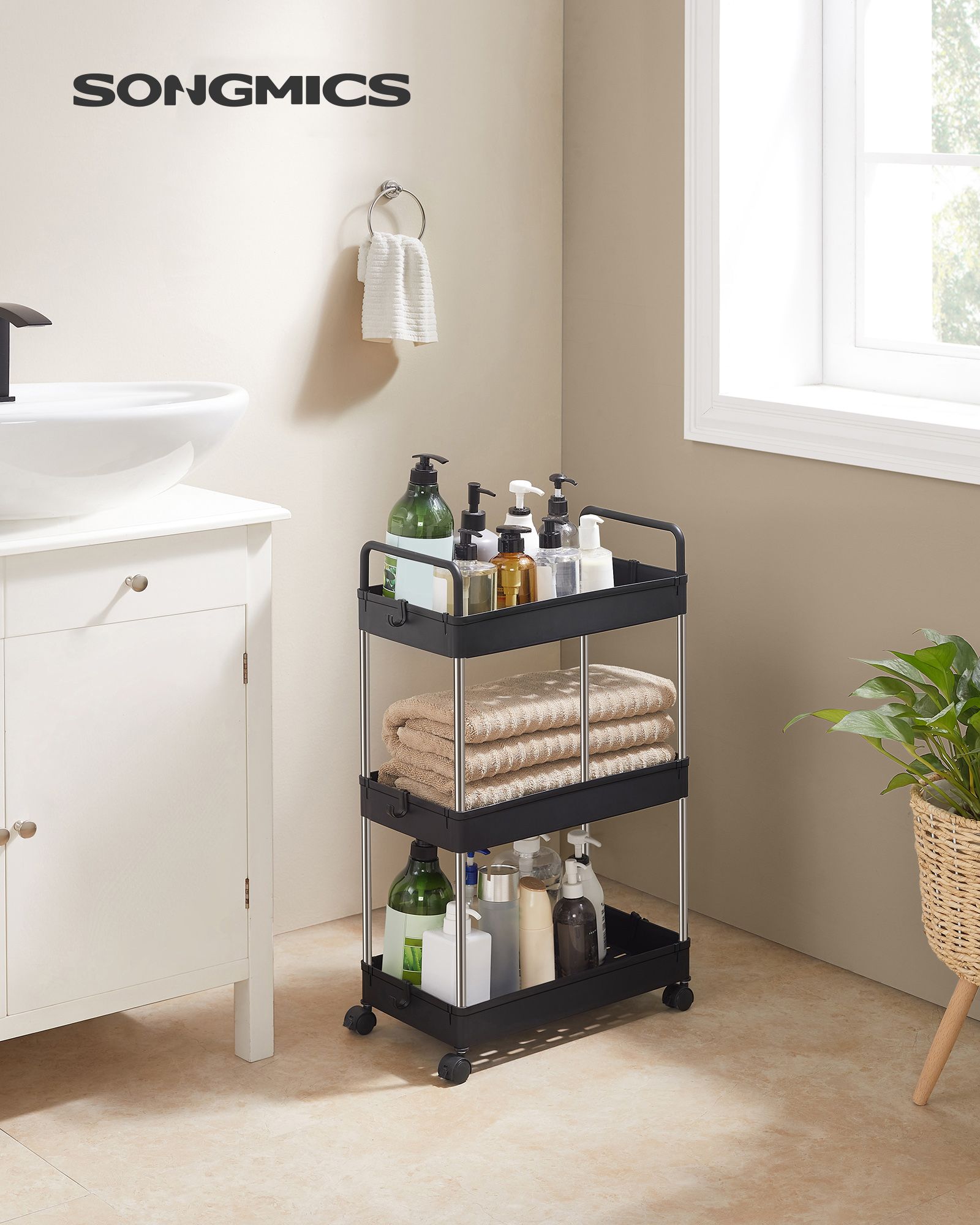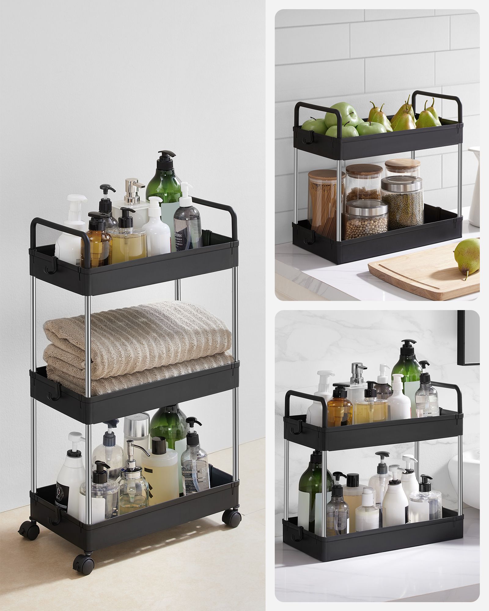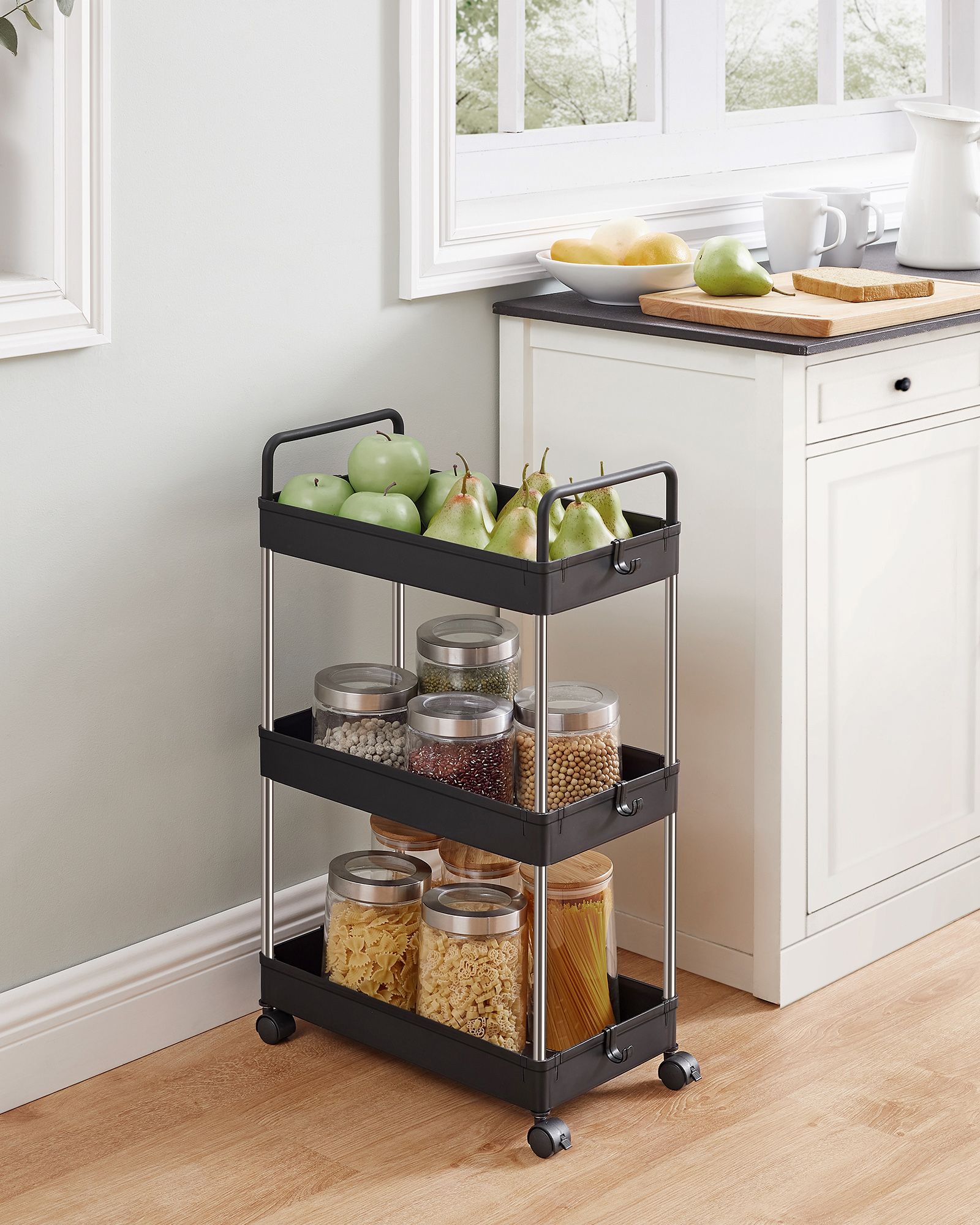 SONGMICS Trolley, kitchen trolley with 3 levels, handles, kitchen shelf on casters, 40 x 22 x 67 cm, white KSC019W01