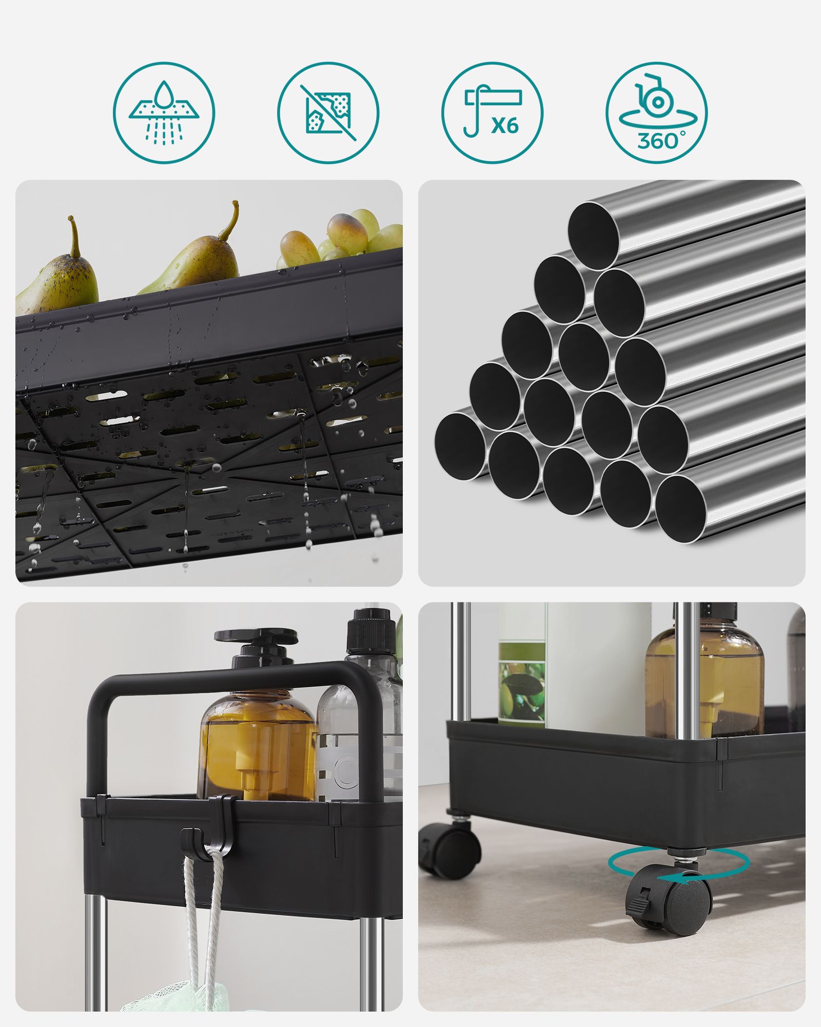 Material: PP (polypropylene), stainless steel tubes