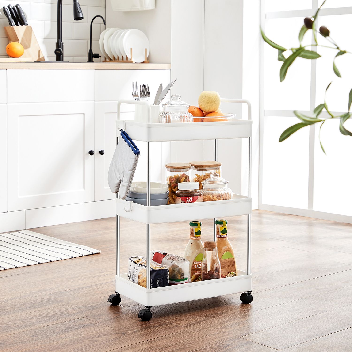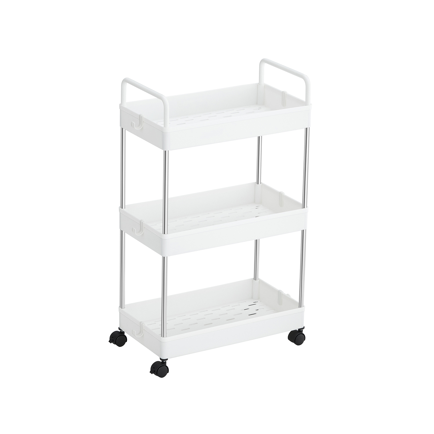 SONGMICS Trolley, kitchen trolley with 3 levels, handles, kitchen shelf on casters, 40 x 22 x 67 cm, white KSC019W01
