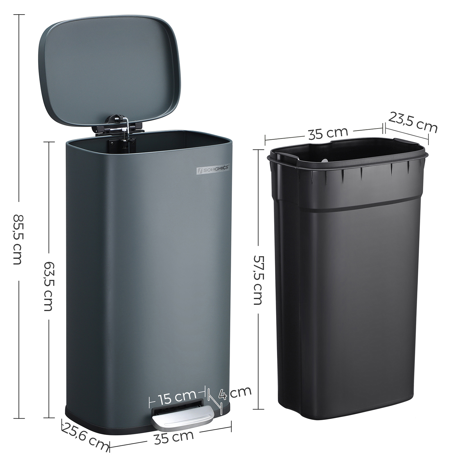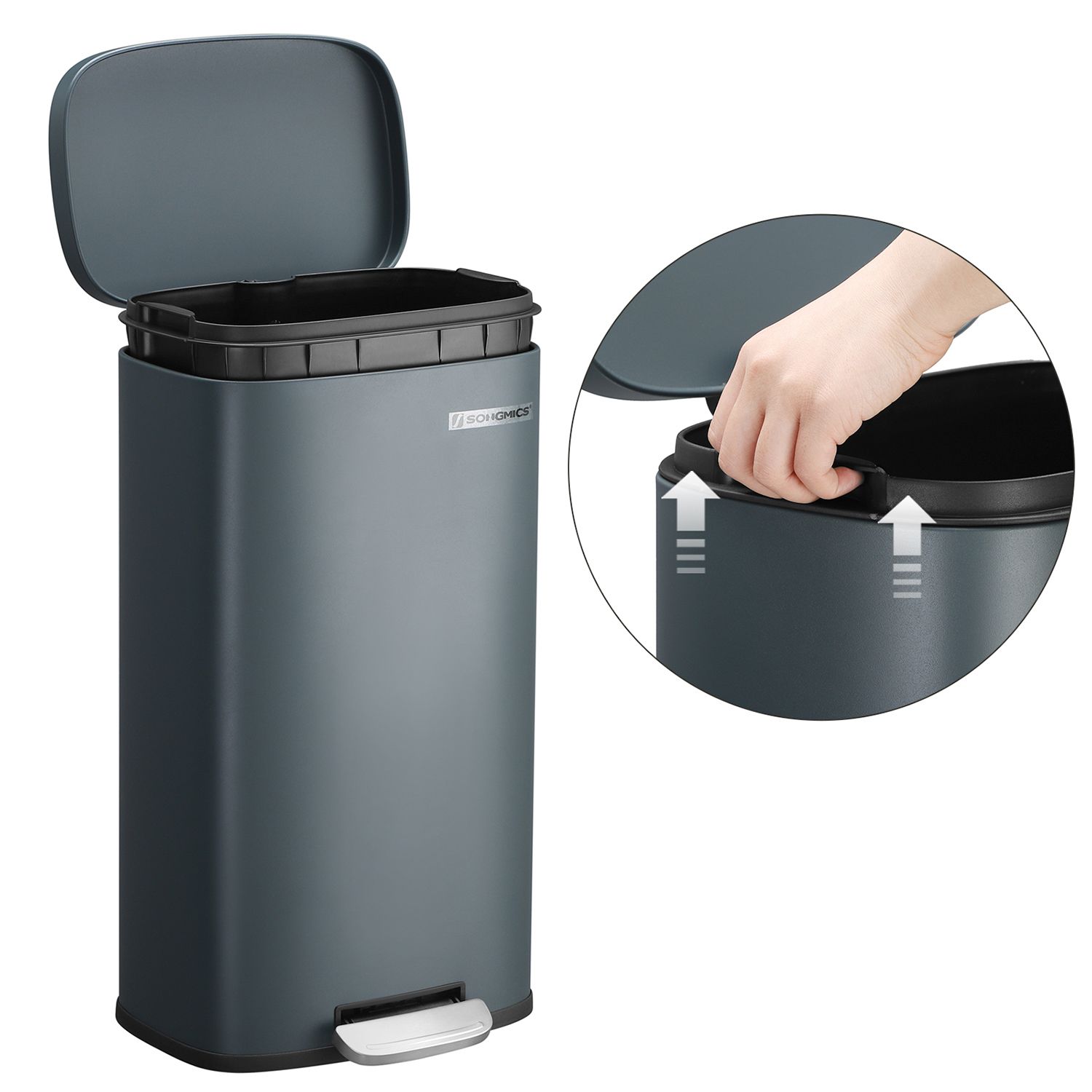 SONGMICS Pedal bin for the kitchen, soft close, waste bin with lid and inner bin, 30 L stainless steel waste container, odor-proof and hygienic LTB03NL
