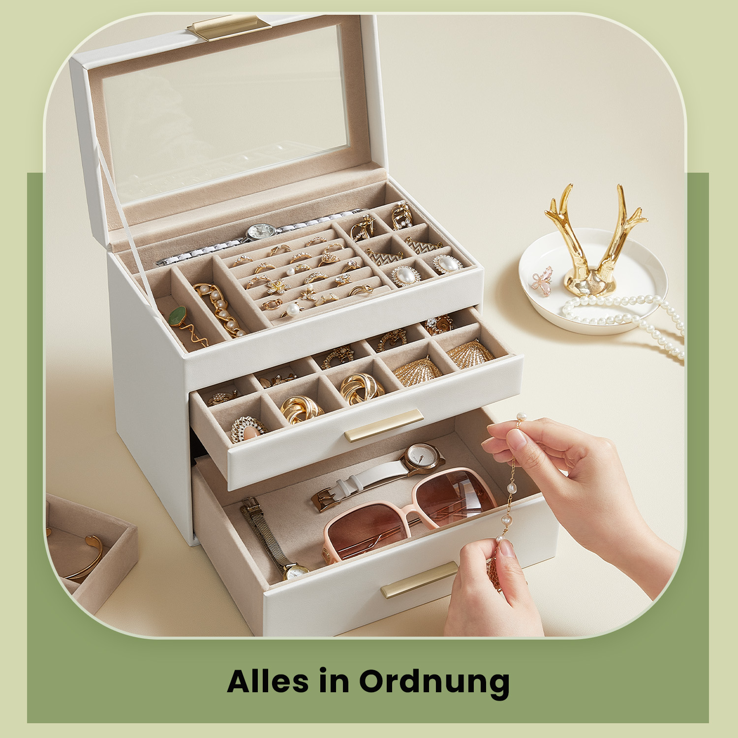 SONGMICS 4-tier jewelry box with glass lid
