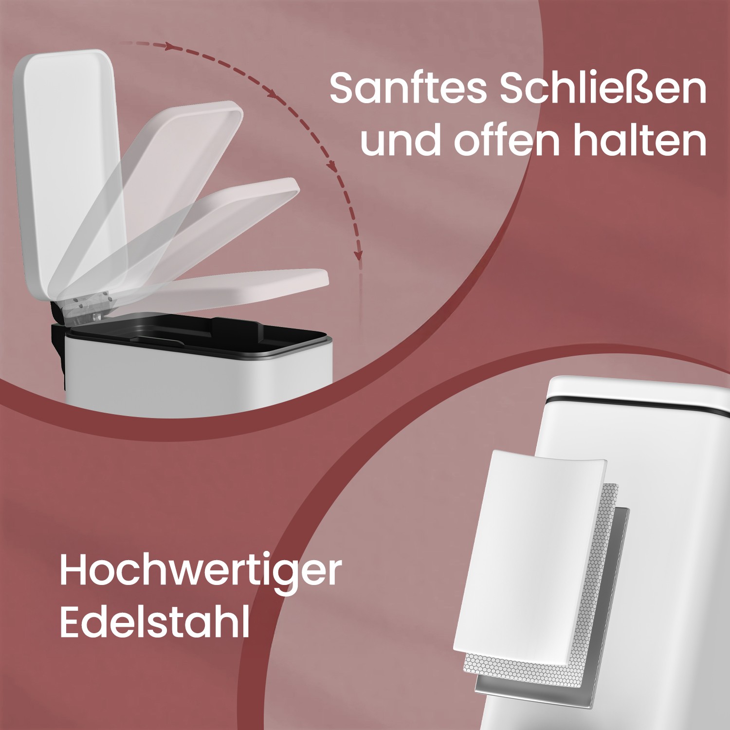 Material: Outer container made of steel, inner bucket made of PP plastic, base made of ABS plastic