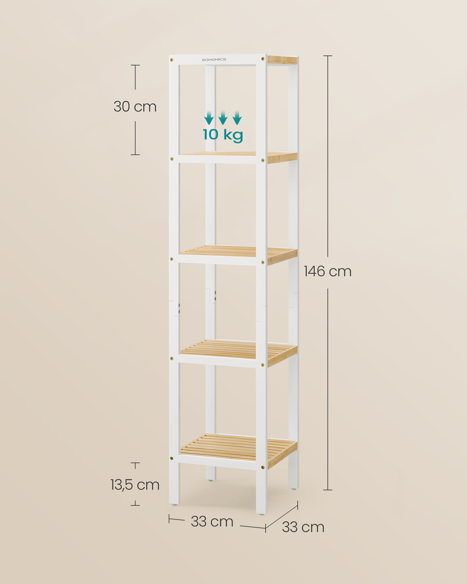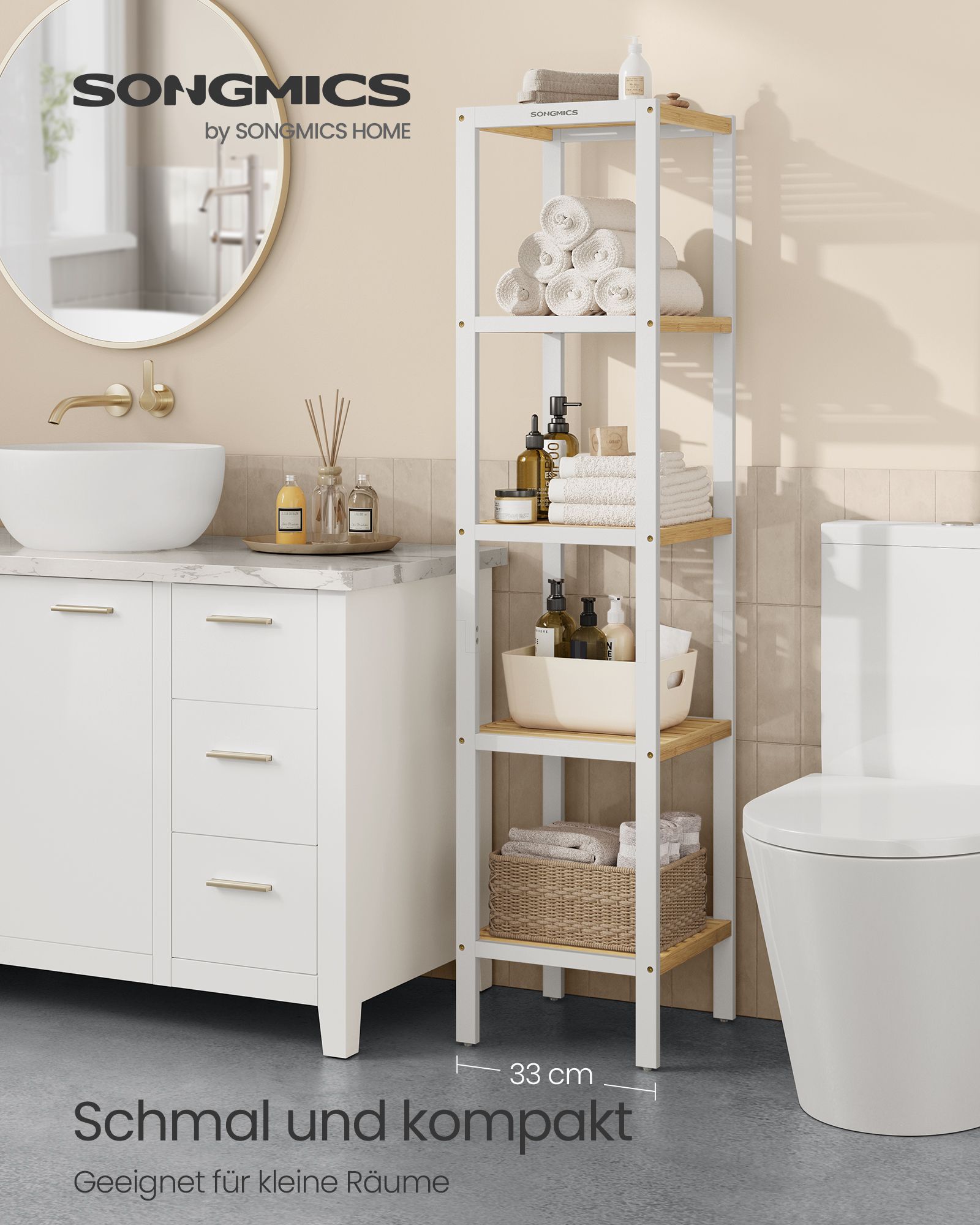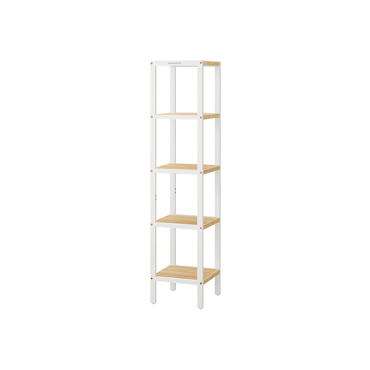 SONGMICS Bathroom shelf 5 levels, narrow standing shelf, bamboo shelf, multifunctional storage shelf, for kitchen, living room, bedroom, bathroom, cloud white BCB055W01
