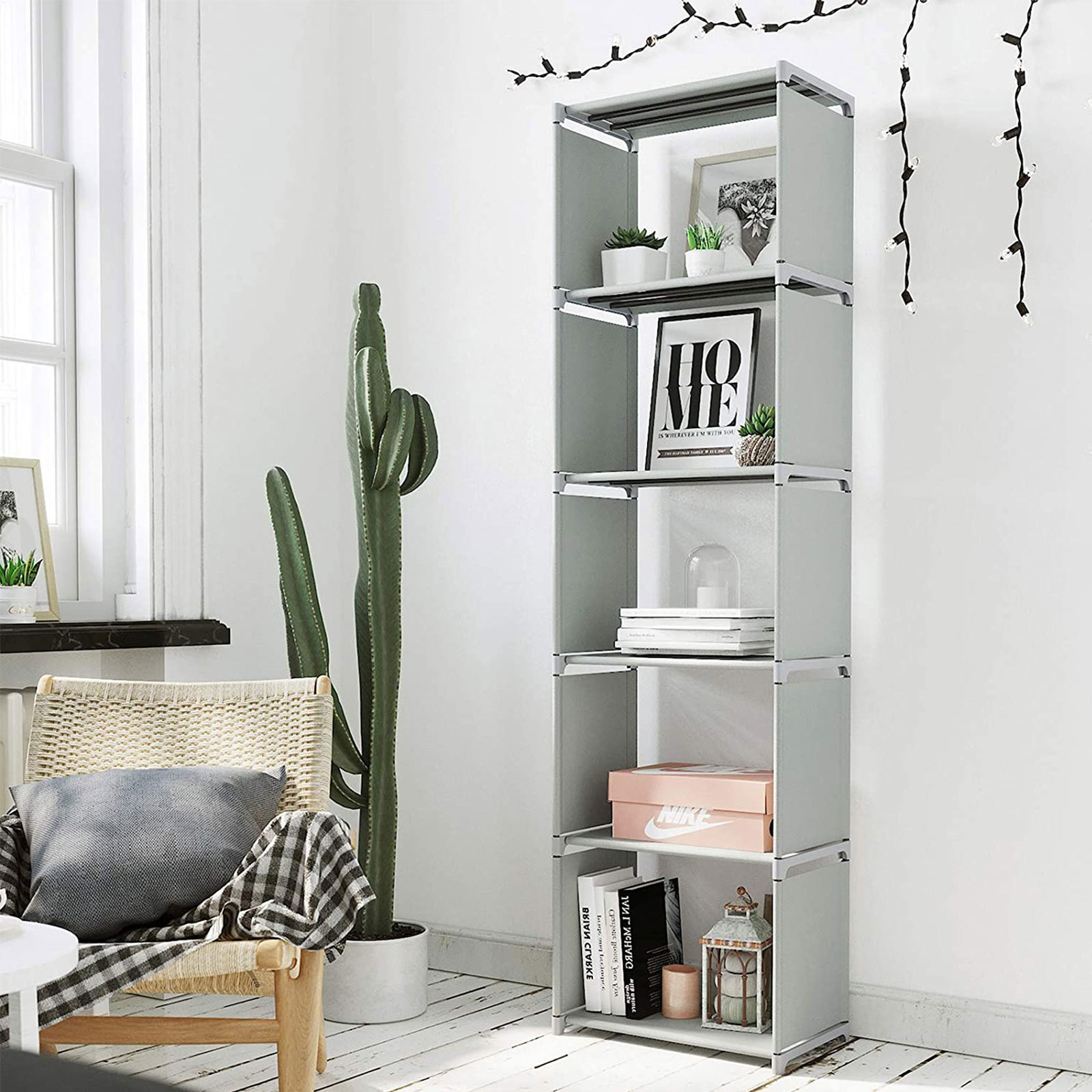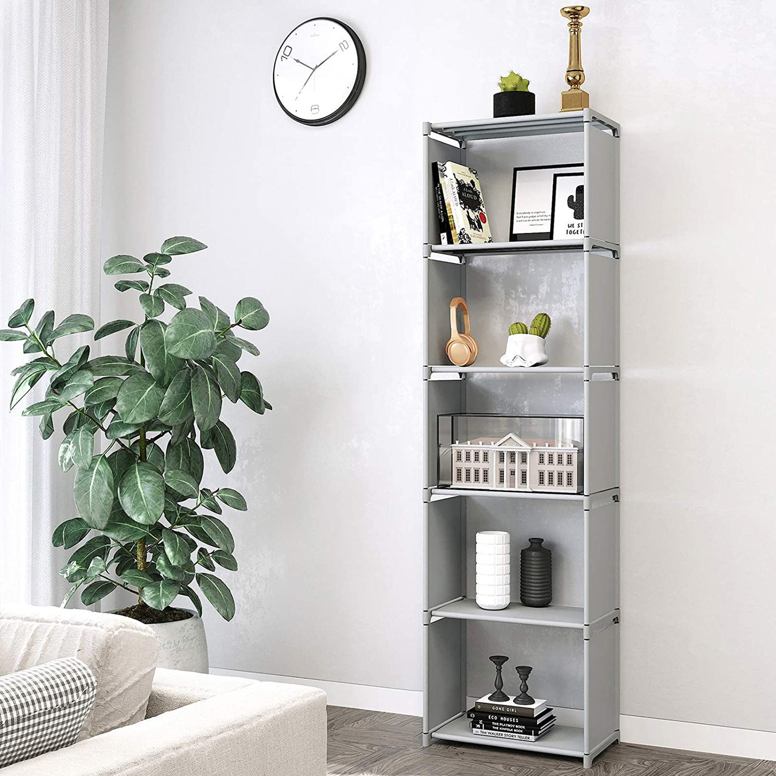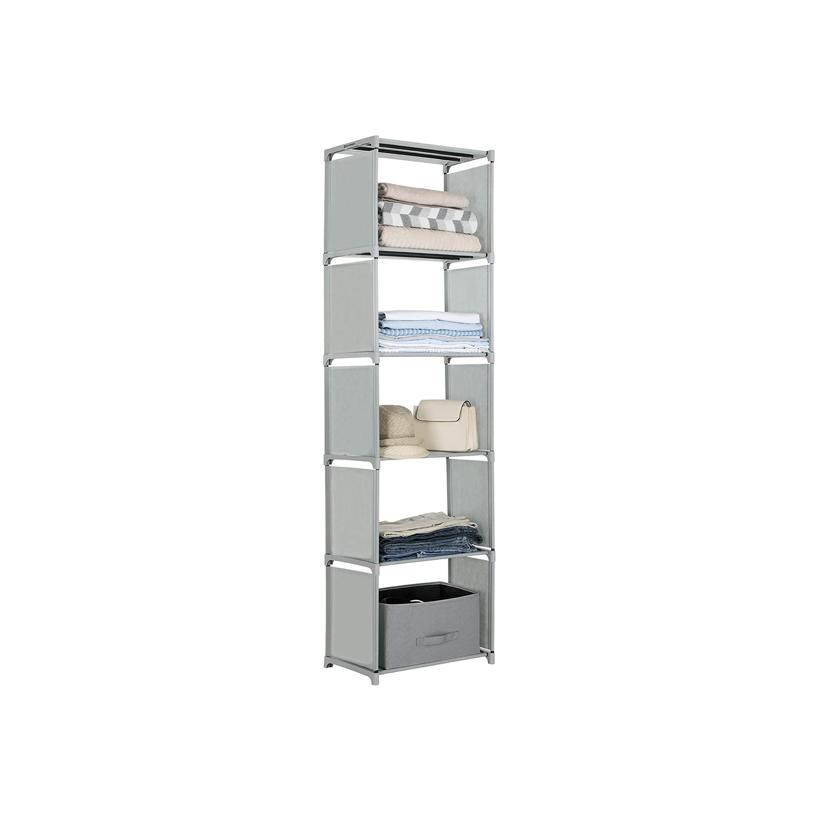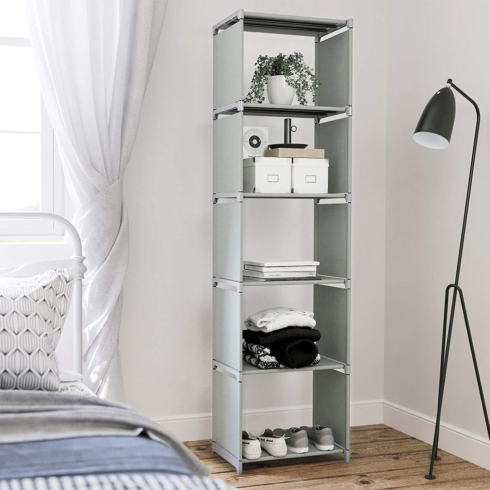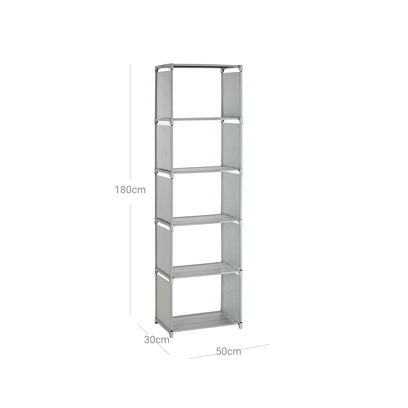 An open shelf is always a great way to organize and display your everyday items. Our modern, high-quality bookcase from SONGMICS is just the thing for you. In the living room: The open shelf offers space for small items such as remote controls, DVDs, pictures, plants, or other decorative items. This allows you to add a personal touch to your home.In the study: The compartments can neatly accommodate a number of books, which also exudes a lot of charm. This bookcase not only has a sturdy frame, but also puts your favorite books in the right light. In the children’s room: Children have many toys that should be stored neatly. With its 5 shelves, this shelving system provides plenty of storage space for model airplanes, building blocks, stuffed animals, etc. In the bathroom: Place this shelf in your bathroom so that makeup, towels, and other utensils can be stored within easy reach. If you need a portable, spacious, and versatile shelf, your search ends here! This standing shelf from SONGMICS is perfect for you! Product details: Color: Black Material: Non-woven fabric, metal tubes, plastic connectors Size: 50 x 30 x 180 cm (L x W x H) Weight: 1.6 kg Max. load capacity of the entire shelf: 25 kg Max. load capacity of each compartment: 5 kg Scope of delivery: 1 x storage shelf 1 x instructions (DE, EN, FR, ES, IT) SONGMICS notes: Please do not use the product outdoors.