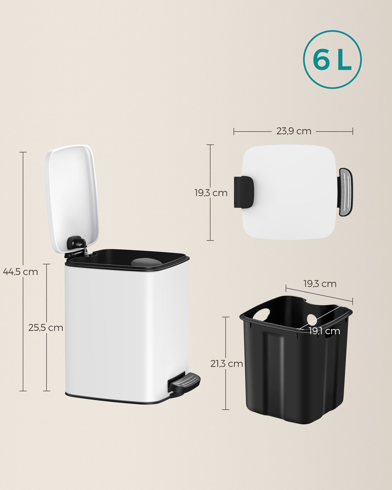 SONGMICS Cosmetic Bin, 6 liters, Bathroom Trash Can, Small Waste Bin, Pedal Bin, with Pedal, for Small Rooms, with Lid, Soft Close, Steel