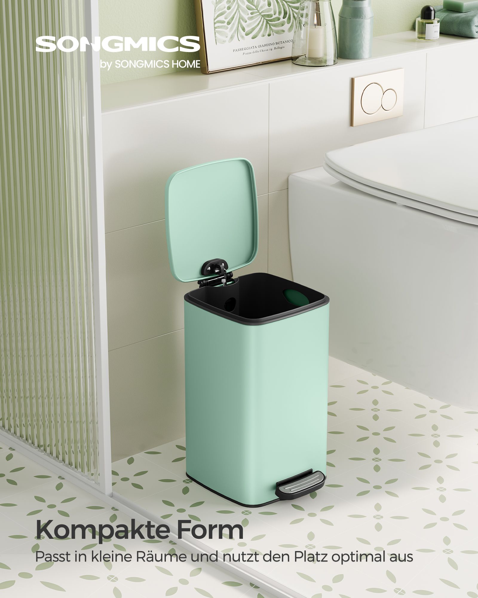 SONGMICS Cosmetic Bin, 6 liters, Bathroom Trash Can, Small Waste Bin, Pedal Bin, with Pedal, for Small Rooms, with Lid, Soft Close, Steel