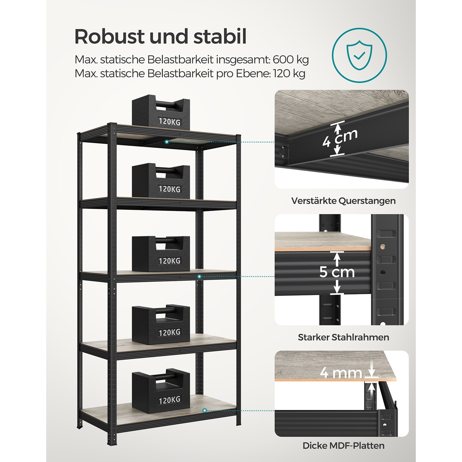 Max. static load capacity per level: 120 kg