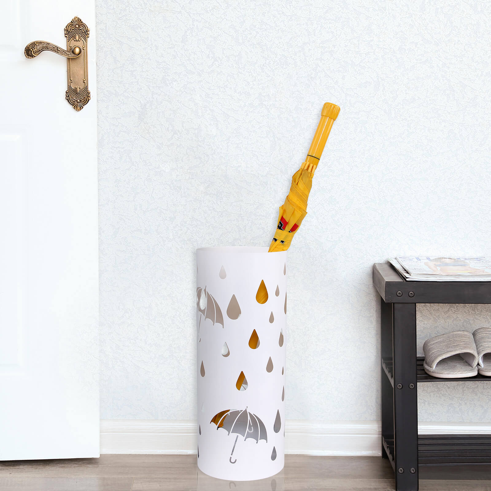 This iron umbrella stand is both functional and stylish. The hole pattern of raindrops and an open umbrella is very fitting for an umbrella stand. The stand not only provides storage space, but also decorates your room and is sure to be an eye-catcher in your hallway/entrance area. Why choose the Songmics umbrella stand? Songmics is always customer-oriented and is committed to offering high-quality products with a good price/performance ratio. We have excellent customer service and do everything we can to solve your problems. Innovative hole pattern, originally designed by Songmics. Perfect packaging reduces transport damage to a minimum. We offer the umbrella stand in various designs and are constantly working to develop new designs. We appreciate your attention. Product details: – Material: sheet iron – Dimensions: 19.5 x 19.5 x 49 cm – Color: white – Weight: 2 kg Scope of delivery: – 1 x umbrella stand – 1 x water collection tray – 2 x hooks