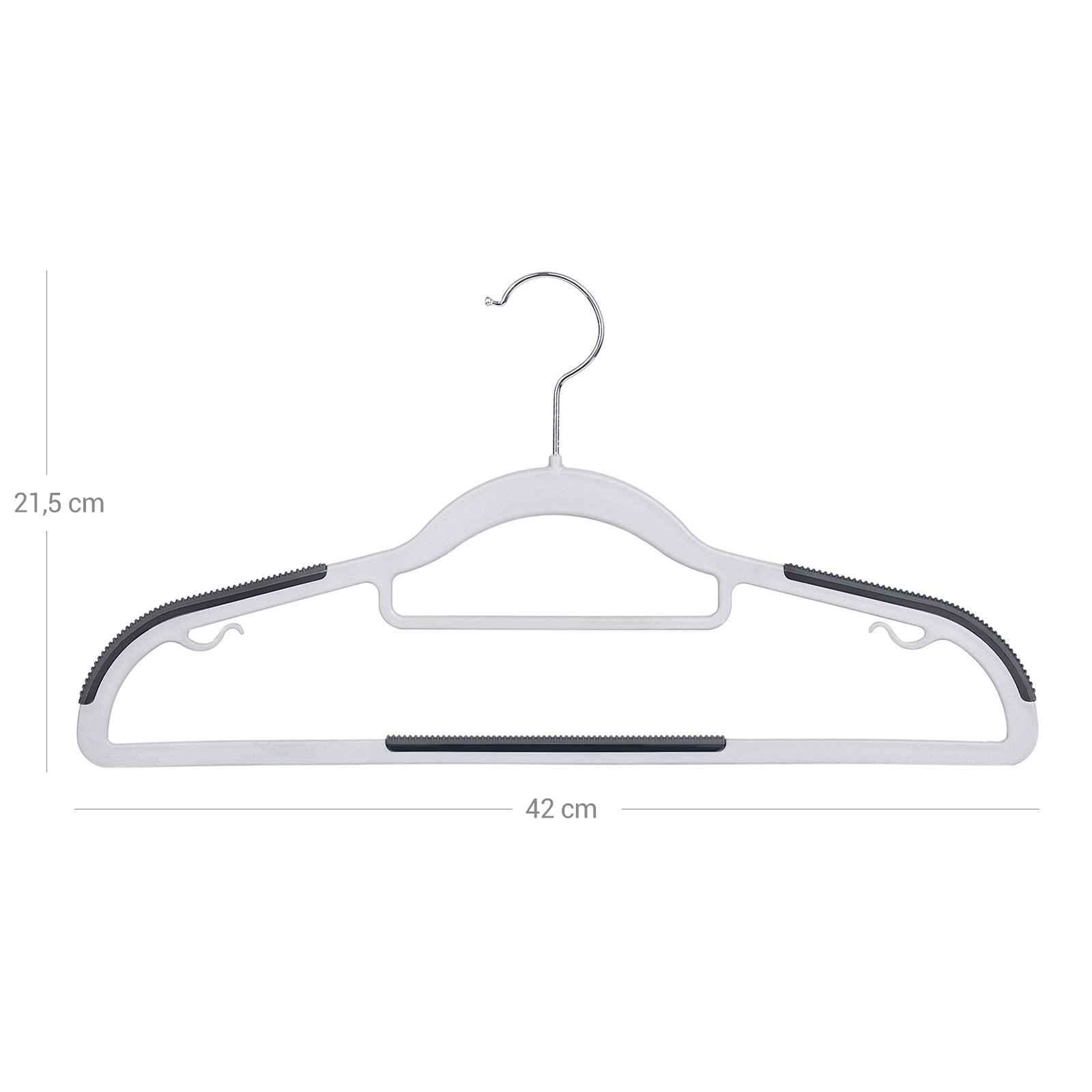 Do you find it difficult to navigate the wide selection of different types of hangers? Then why not try these classic hangers from SONGMICS to add a touch of class to your wardrobe? Sometimes a simple design is all you need. Whether down jackets, wool coats, windbreakers, shirts, dresses, pants, skirts, scarves, or towels—all garments can be easily hung on and removed from the hangers. These hangers from SONGMICS offer all the features you need to keep your clothes neat and wrinkle-free. Product details: Color: Gray Material: ABS plastic Dimensions per hanger: 42 x 0.6 x 21.5 cm (L x W x H) Weight per hanger: 83 g Max. load capacity per hanger: 5 kg Scope of delivery: 50 x clothes hangers SONGMICS notes: Please do not hang items that are too heavy or laundry on the clothes hangers.Please do not use these hangers in a portable clothes dryer.