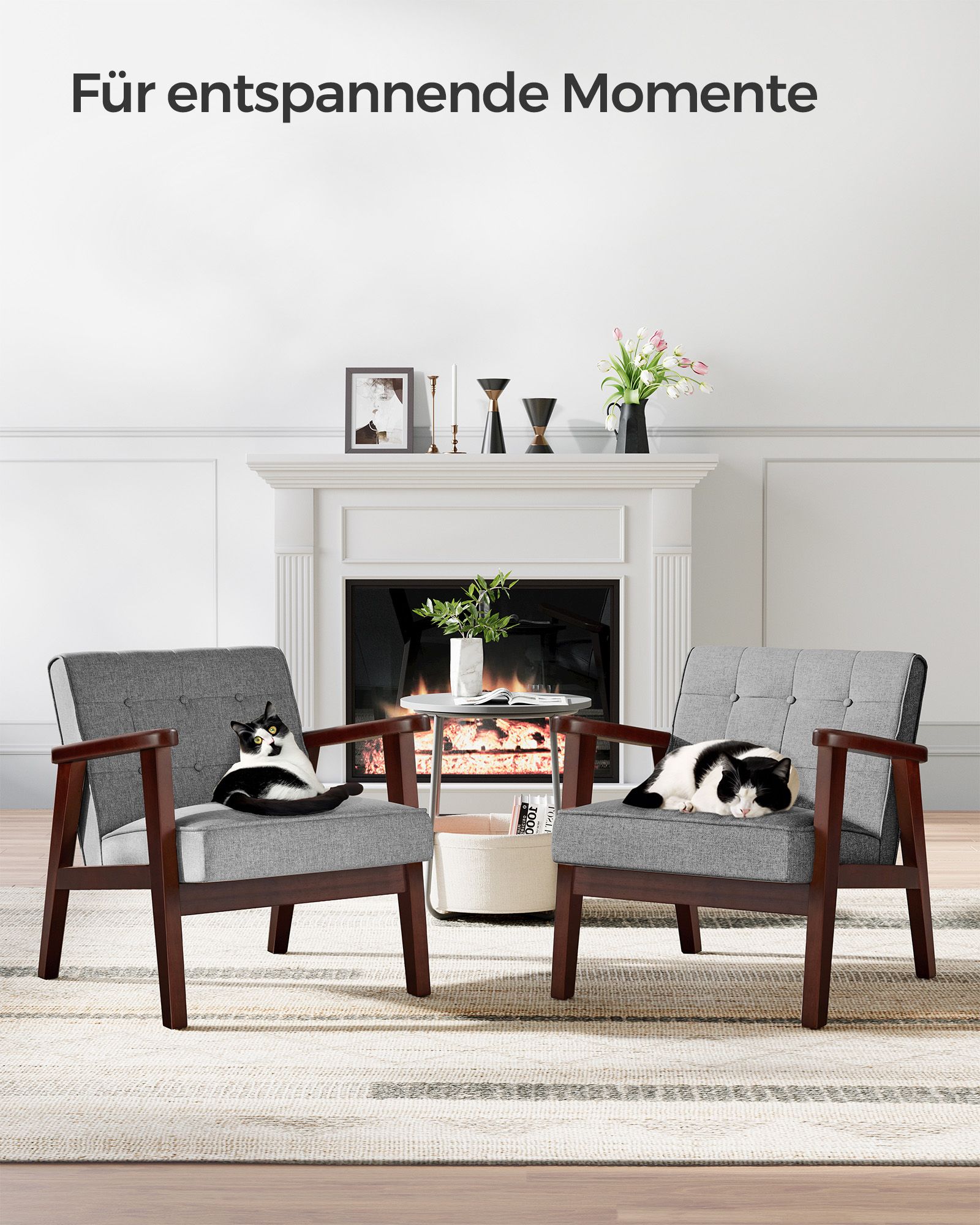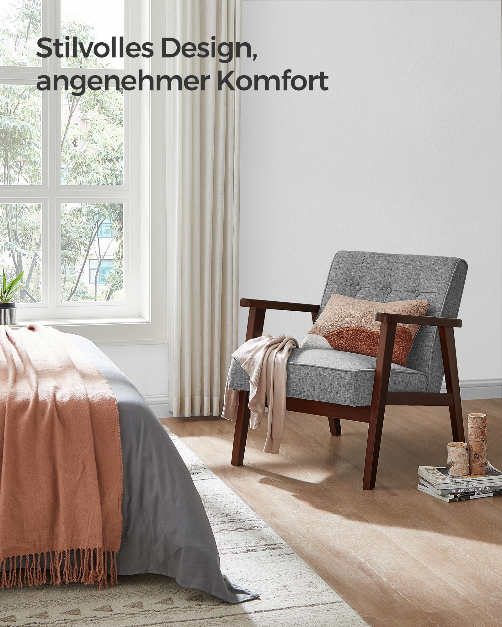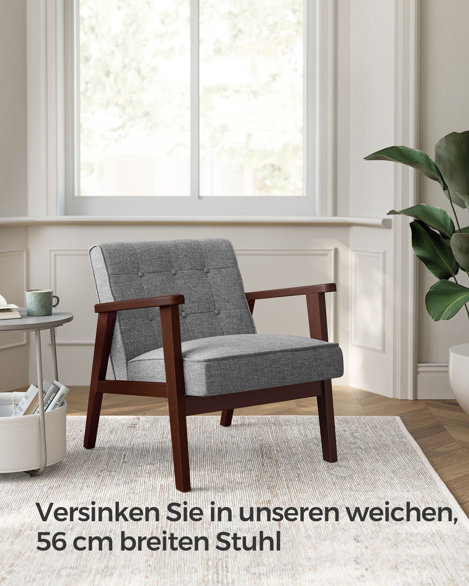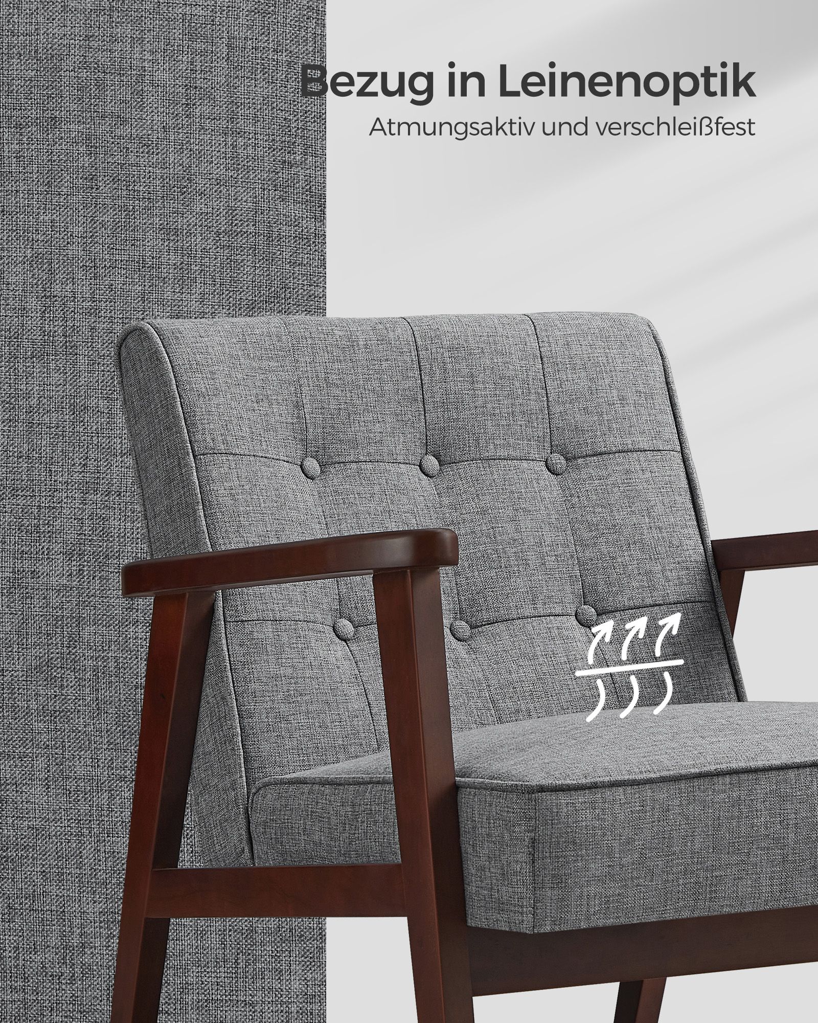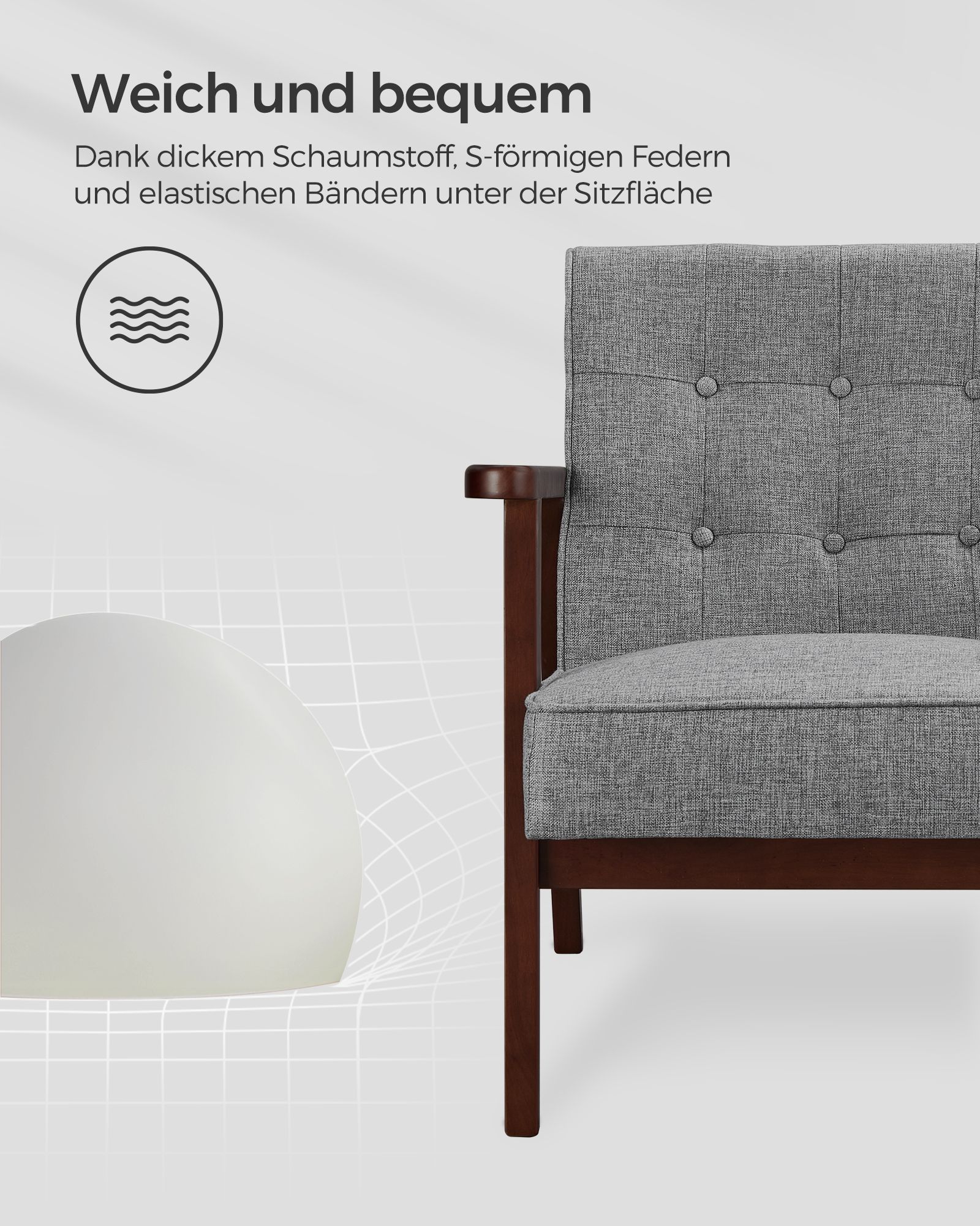 – Material: rubberwood, polyester, foam