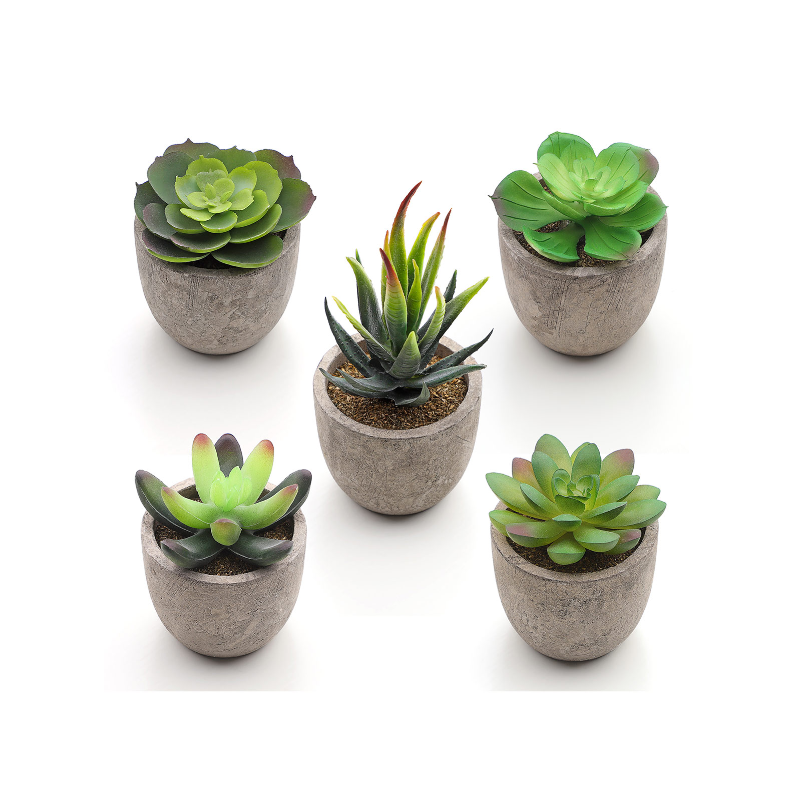 5 x artificial succulents in flower pots