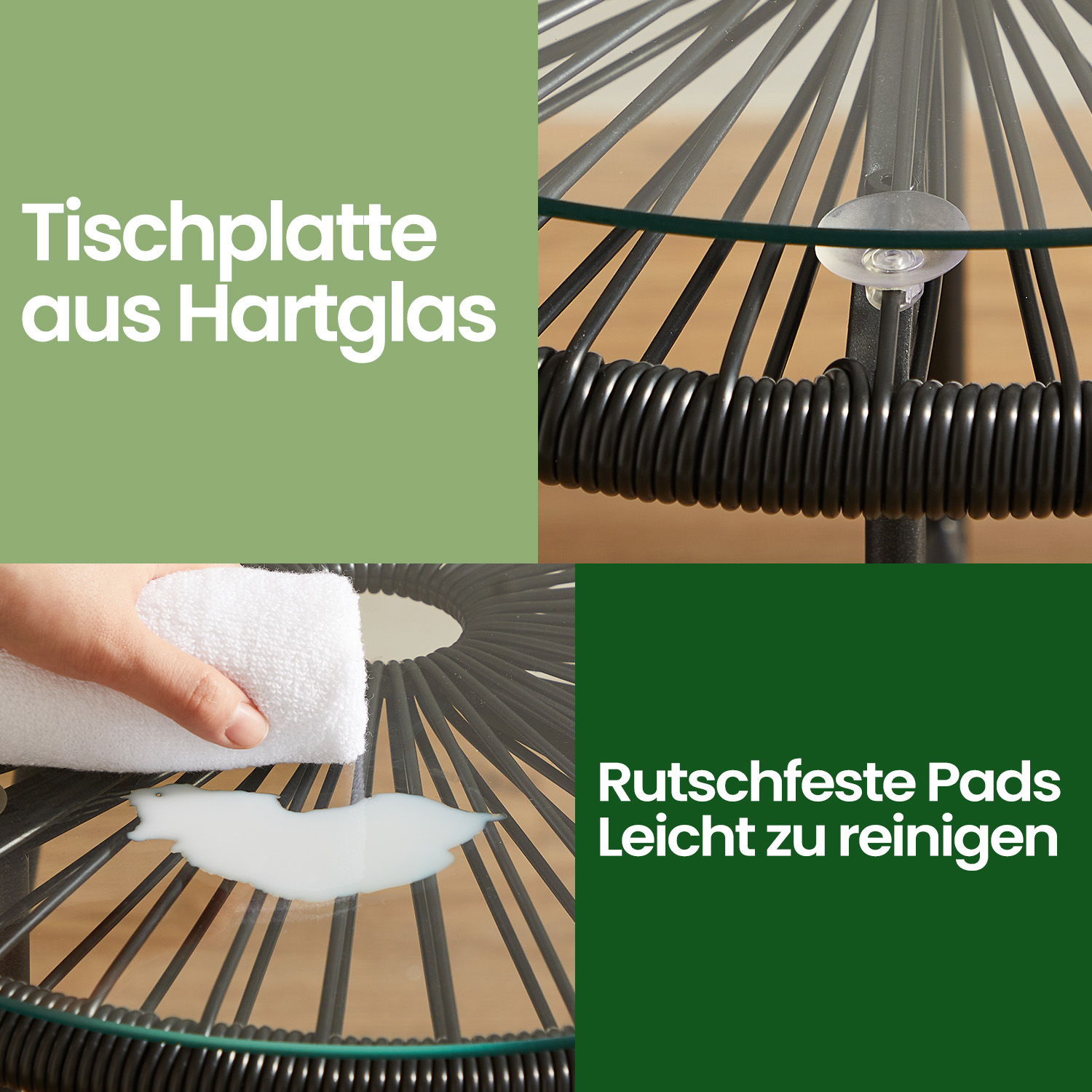 A peaceful retreatRelax by the pool in summer and end the day on our ultra-comfortable Acapulco chairs. The ergonomic design offers a comfortable seat so you can lean back and enjoy a cool glass of wine in relaxation. You can place your glass on the side table. Brings a holiday atmosphere to any room The modern aesthetic creates a Mexican holiday atmosphere on balconies, terraces, and patios. Relax on this Acapulco chair set outdoors and enjoy a fresh breeze, or use it indoors? Of course, that works too! This seating set transforms a small space into a comfortable place to relax in no time at all. Product details: – Color: turquoise blue – Material: powder-coated steel, PE (polyethylene), tempered glass – Table size: 50.5 x 52 cm (Ø x H) – Size per chair: 64 x 65 x 77 cm (L x W x H) – Table weight: 4.2 kg – Weight per chair: 4.4 kg – Max. static load capacity per chair: 130 kg – Max. static load capacity of table surface: 60 kg Scope of delivery:- 2 x chairs – 1 x table – 1 x accessory pack – 1 x instructions SONGMICS notes: – We recommend covering this furniture set in bad weather or during winter. This will increase its service life. – To ensure safe use, the maximum load capacity must not be exceeded.
