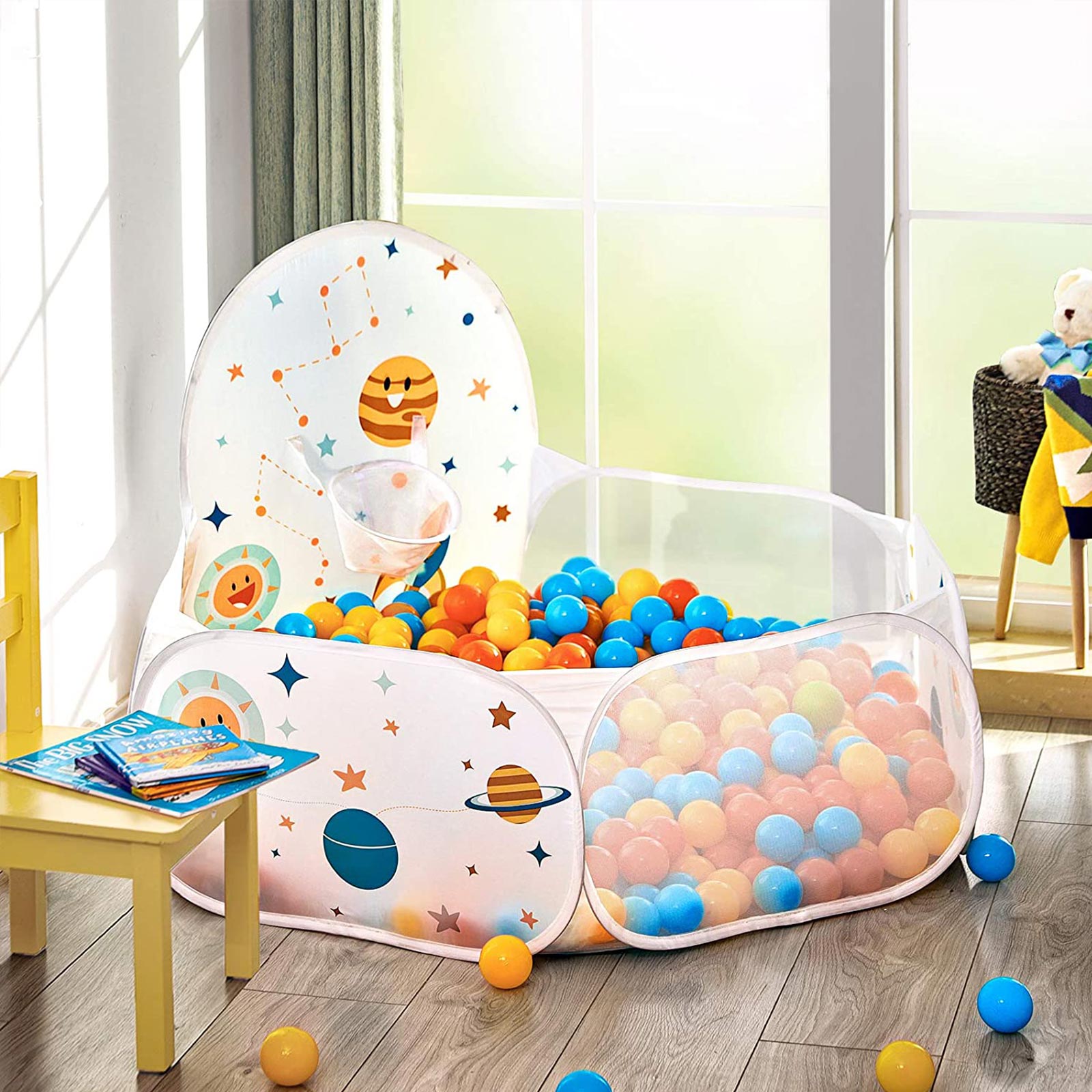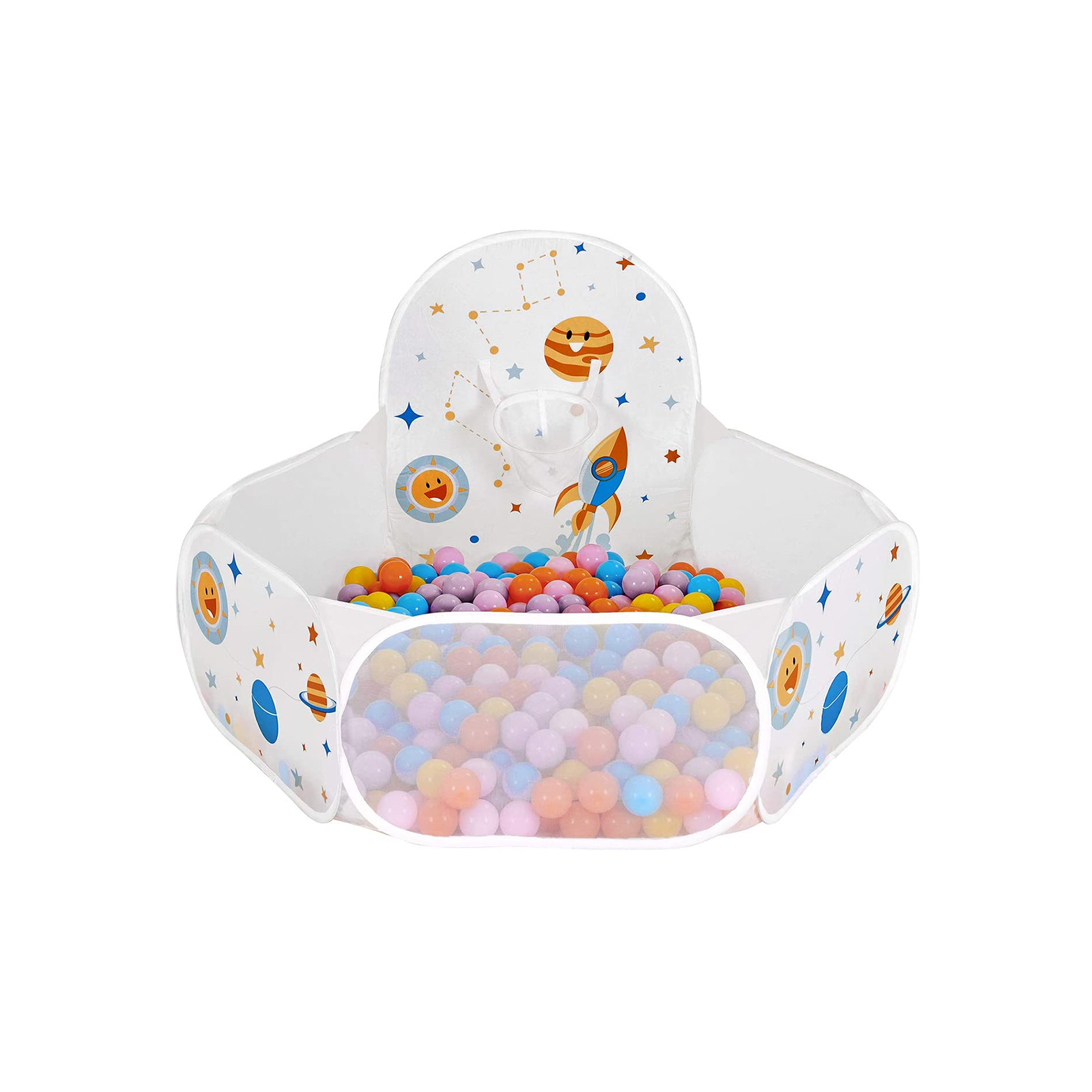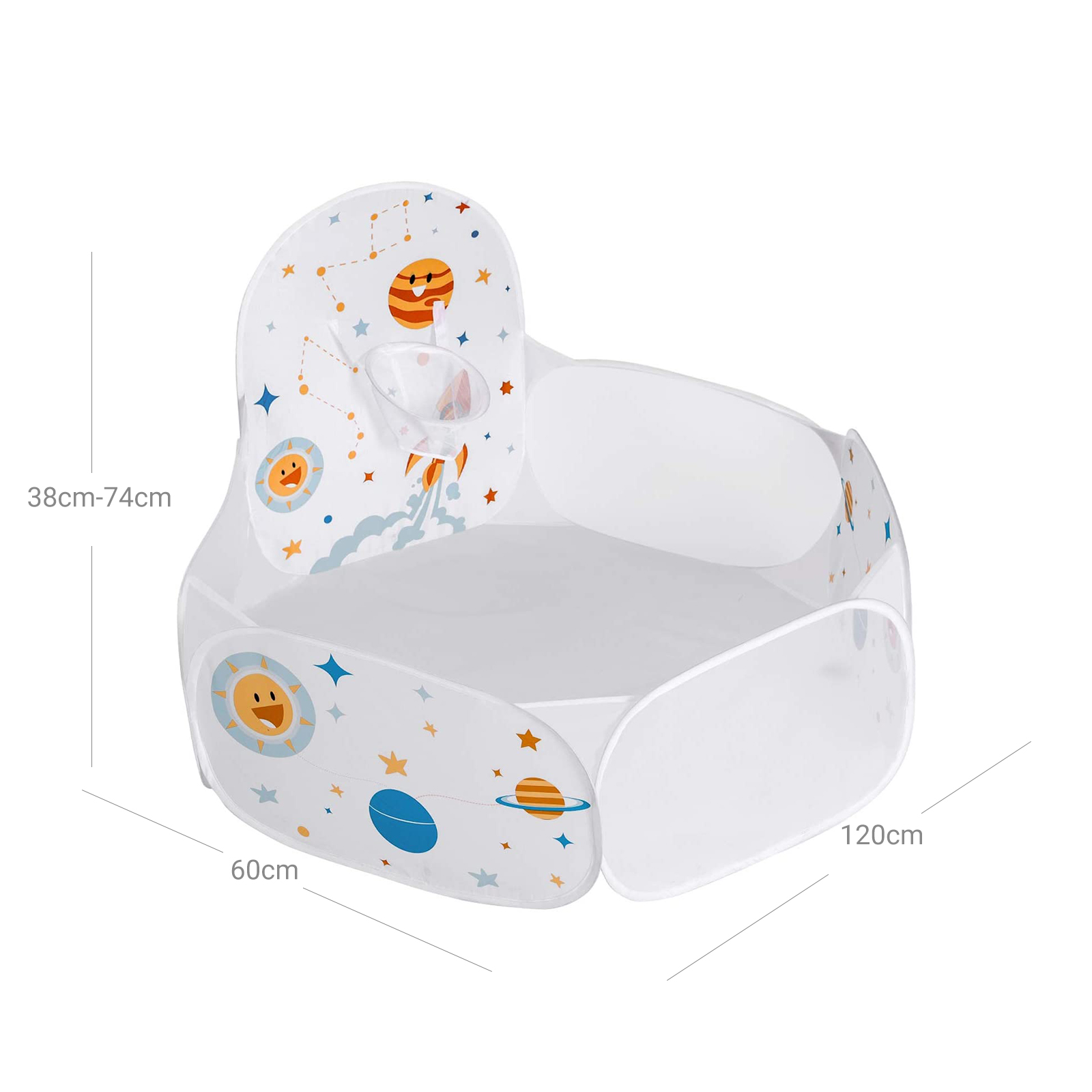 Durable materials: Children don’t usually worry about the durability of their toys, but as a parent, you do. Rest assured, because this ball pit from SONGMICS is made of durable polyester and can easily withstand daily use by toddlers. The perfect gift: Still looking for the perfect gift for an upcoming baby shower or children’s birthday party? Want to find a toy to entertain your grandchildren? This ball pit from SONGMICS is the perfect gift for anyone with a toddler. It allows children to let their imaginations run wild while you enjoy a quiet cup of coffee. For cute little bundles of joy: This pop-up play tent is a real bundle of joy. It comes in a handy carrying bag, so you can easily set up this fun ball paradise anywhere and take it with you again. Whether in your own living room, at your in-laws’ house, or at a friend’s house, this ball pit will bring joy to your child wherever you go. Product details:Color: White Material: Polyester, flat steel wire Size: 120 x 100 x 74 cm (L x W x H) Weight: 0.5 kg Scope of delivery: 1 x ball pool 1 x transport bag SONGMICs notes: Balls are NOT included in the scope of delivery. This is a pop-up ball pit that unfolds abruptly. Please keep it far enough away from your face when opening. For the above reason, the product should not be set up by children. It should be set up by an adult. Keep the product away from sources of fire. We recommend using balls with a diameter greater than 5 cm for this ball pool. Smaller balls could be swallowed or inhaled.