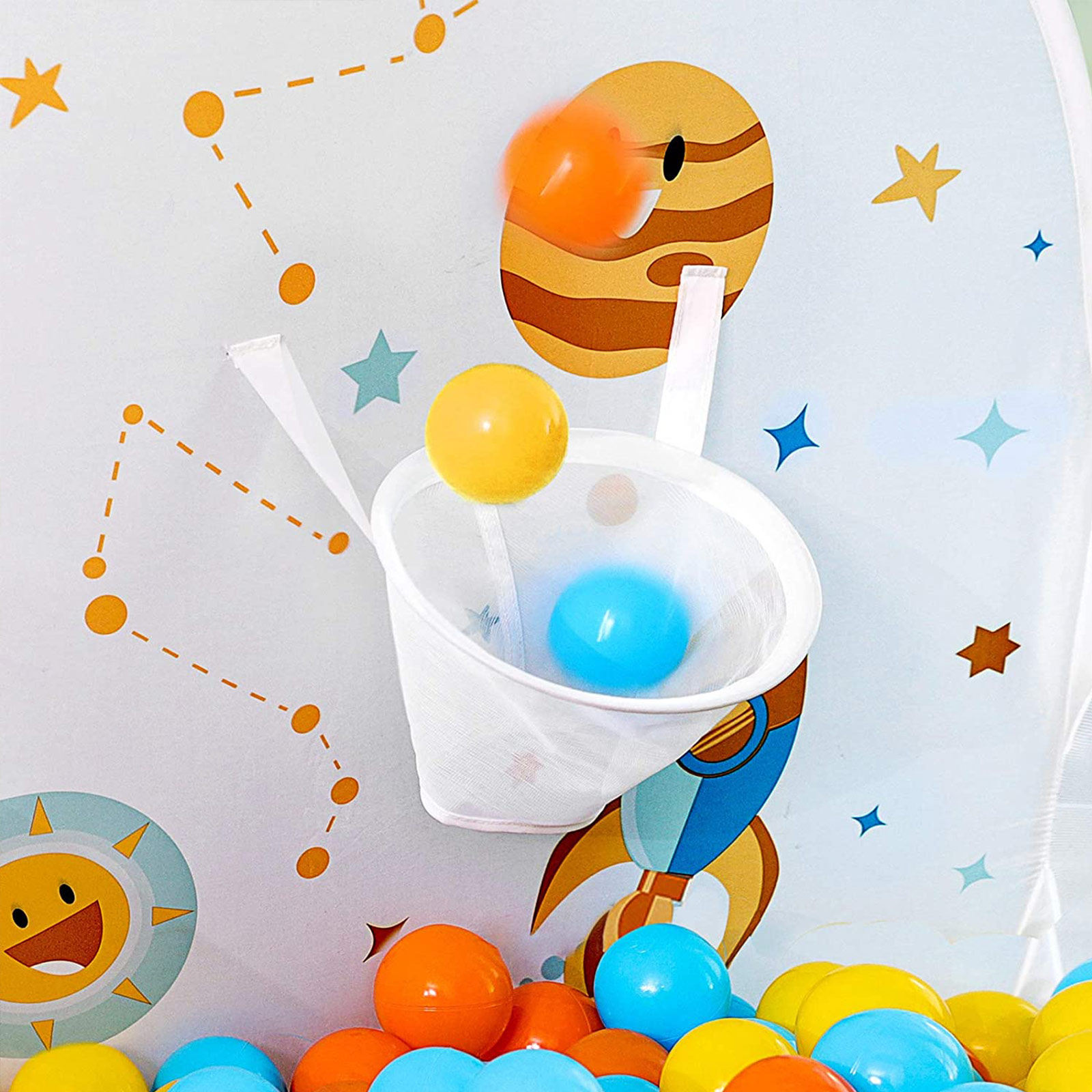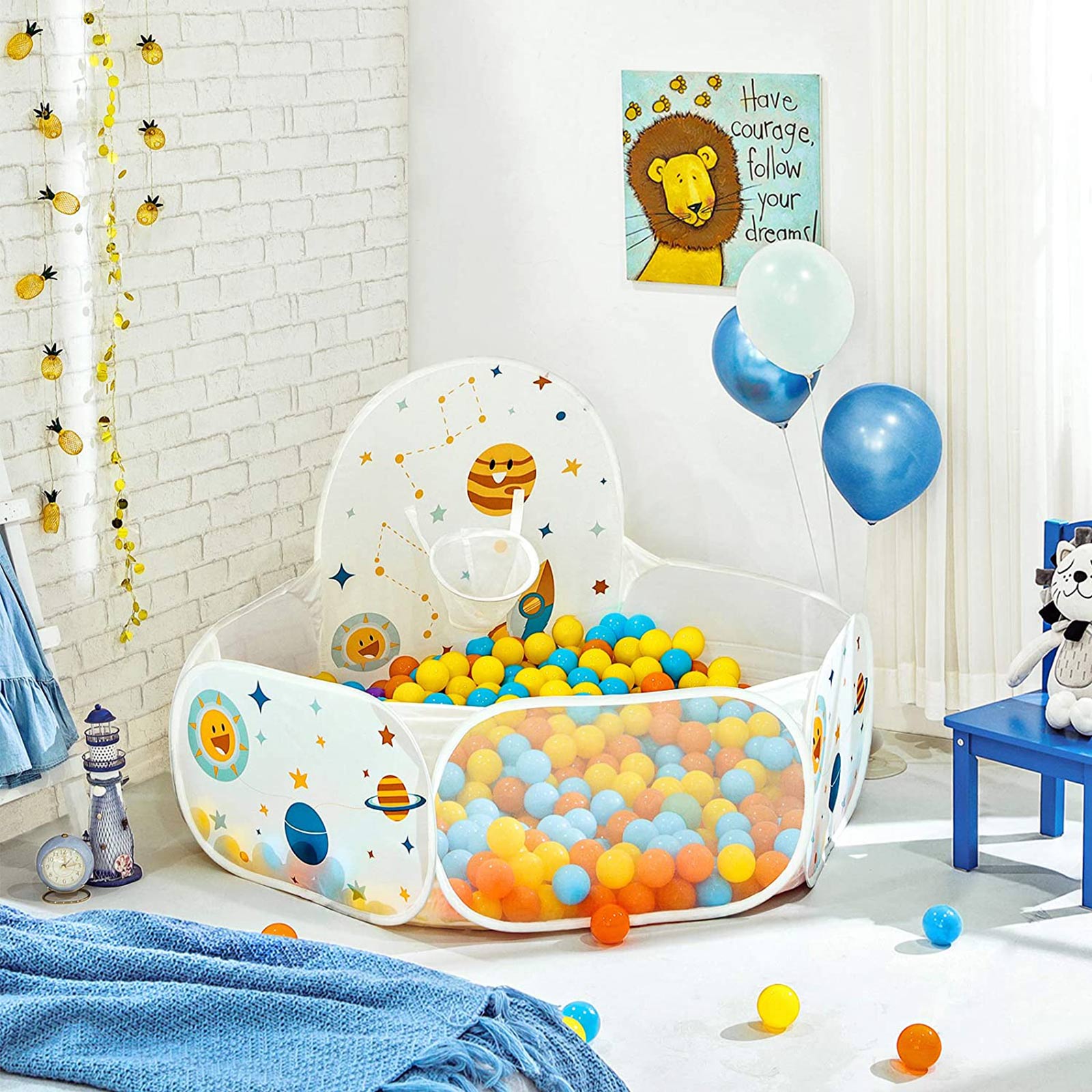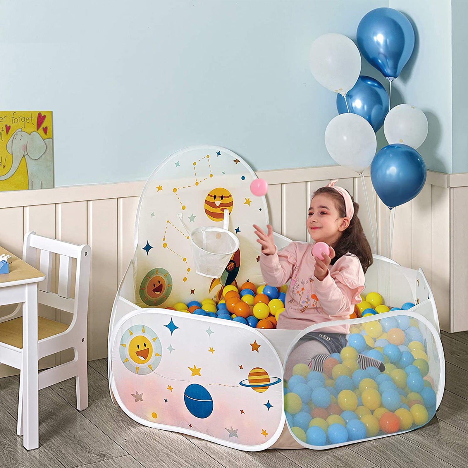 Durable materials: Children don’t usually worry about the durability of their toys, but as a parent, you do. Rest assured, because this ball pit from SONGMICS is made of durable polyester and can easily withstand daily use by toddlers. The perfect gift: Still looking for the perfect gift for an upcoming baby shower or children’s birthday party? Want to find a toy to entertain your grandchildren? This ball pit from SONGMICS is the perfect gift for anyone with a toddler. It allows children to let their imaginations run wild while you enjoy a quiet cup of coffee. For cute little bundles of joy: This pop-up play tent is a real bundle of joy. It comes in a handy carrying bag, so you can easily set up this fun ball paradise anywhere and take it with you again. Whether in your own living room, at your in-laws’ house, or at a friend’s house, this ball pit will bring joy to your child wherever you go. Product details:Color: White Material: Polyester, flat steel wire Size: 120 x 100 x 74 cm (L x W x H) Weight: 0.5 kg Scope of delivery: 1 x ball pool 1 x transport bag SONGMICs notes: Balls are NOT included in the scope of delivery. This is a pop-up ball pit that unfolds abruptly. Please keep it far enough away from your face when opening. For the above reason, the product should not be set up by children. It should be set up by an adult. Keep the product away from sources of fire. We recommend using balls with a diameter greater than 5 cm for this ball pool. Smaller balls could be swallowed or inhaled.