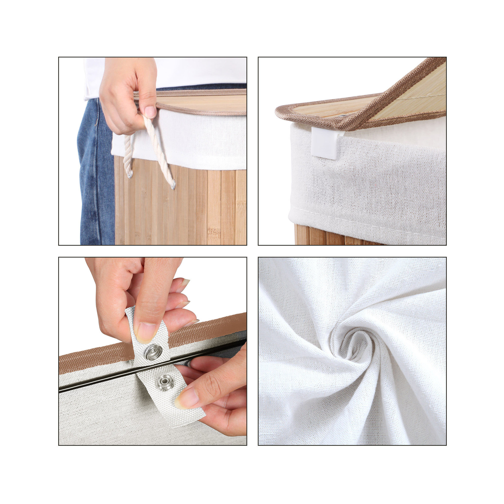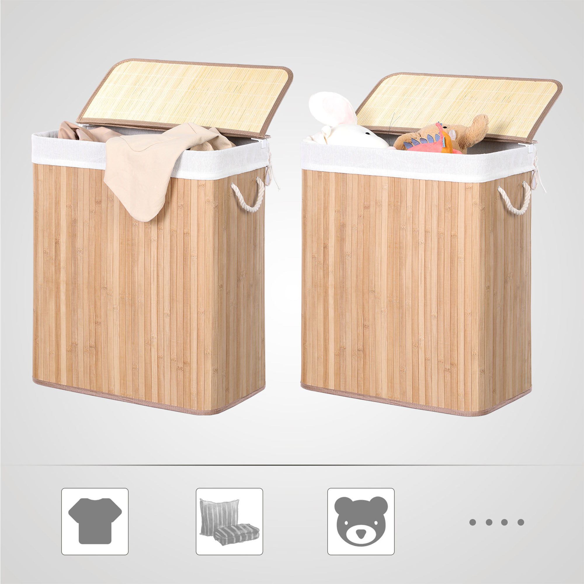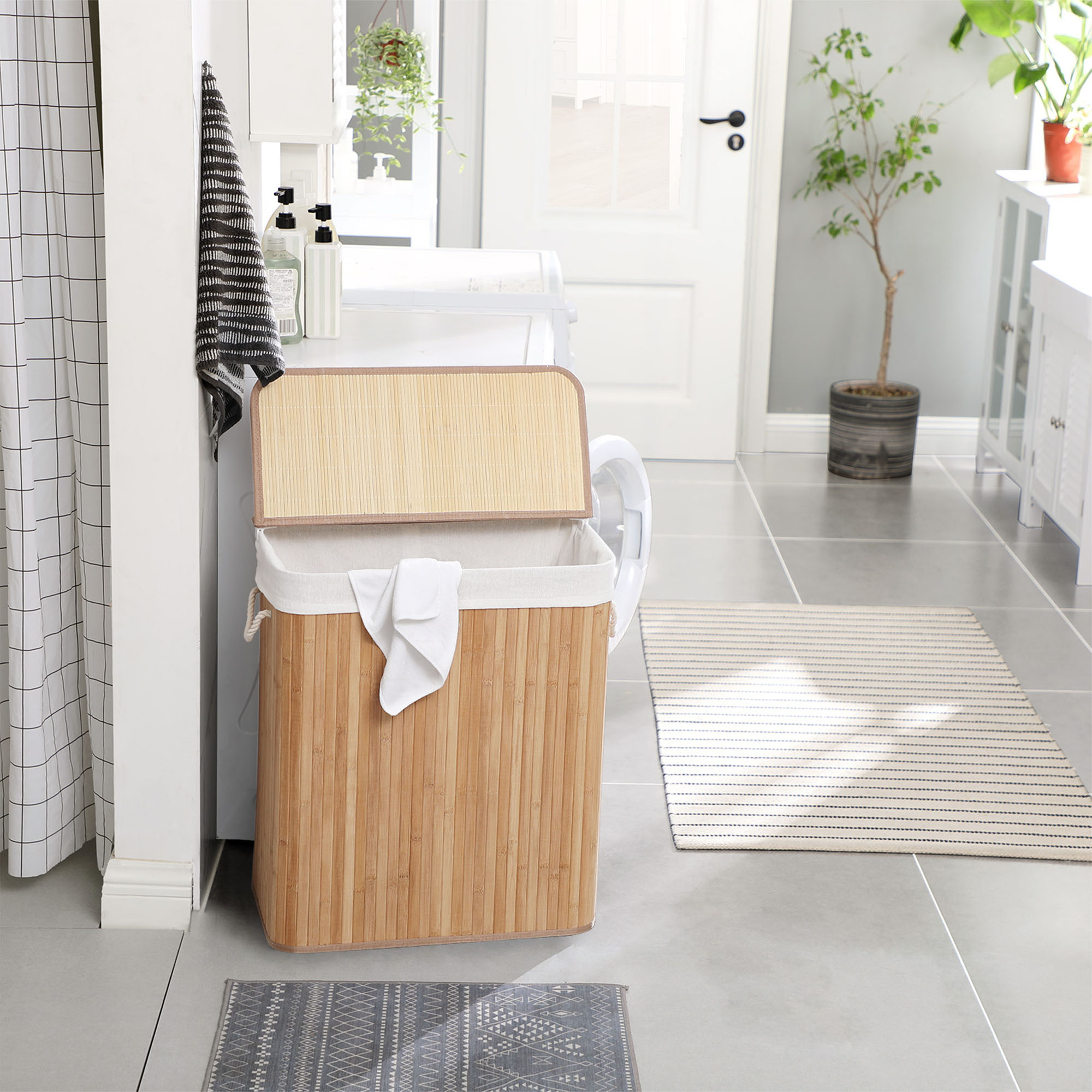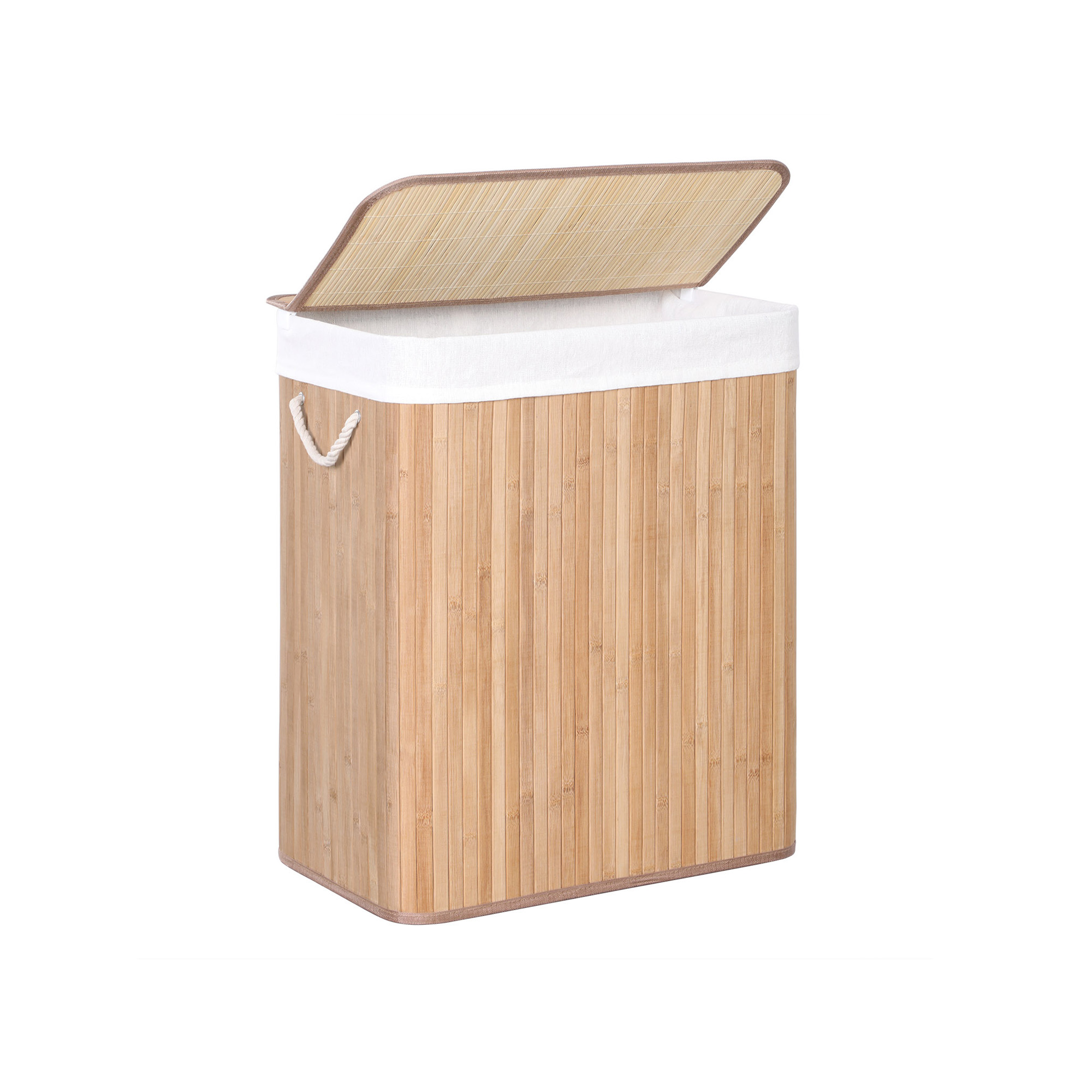 For an effortless laundry day: Is your dirty laundry scattered all over the room, so that you have to laboriously collect it on laundry day before you can take it to the washing machine? Or do you regularly discover more items of clothing after your laundry is already happily spinning in the washing machine?If so, this laundry basket from SONGMICS is just right for you! Welcome bamboo into your home: Natural material? Renewable? These are just the icing on the cake when it comes to the advantages of bamboo. This material is also characterized by its high stability and attractive, fresh appearance. So you don’t have to compromise on style when you want to buy a sturdy piece of furniture. Will accompany you for many years: The metal frame and base plate give the basket a stable hold. This makes this laundry basket resistant to deformation and promises good load-bearing capacity (up to 25 kg) and a long service life. Product details: Color: Natural colors Material: Bamboo, cotton, plywood, metal frame, ABS clip Size: 51.5 x 31.5 x 60.5 cm (L x W x H) Weight: 2.7 kg Max. static load capacity: 25 kg Scope of delivery: 1 x laundry basket 1 x instructions (DE, EN, FR, ES, IT) SONGMICS notes:Please do not store sharp objects in this product to avoid damage or injury. The max. static load capacity is 25 kg. Please do not store heavier items in this laundry basket.