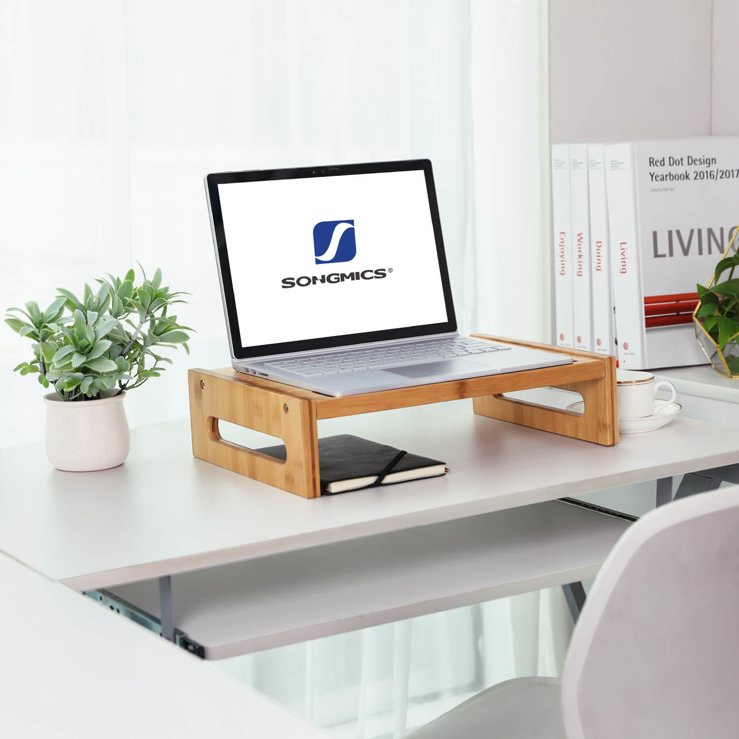 Anyone who spends most of their working day sitting in front of a computer will inevitably experience neck and back pain at some point. The SONGMICS monitor stand is designed to help you achieve the optimal sitting posture. This multi-purpose stand also provides a neat place to store your pens, paper clips, and sticky notes. There is also space for your keyboard at the bottom, giving you enough room to write and read on your desk. Product details: – Color: natural bamboo – Material: bamboo – Load capacity: 20 kg – Product dimensions: 41 x 10 x 28 cm (W x H x D) – Weight: 1.6 kg Scope of delivery: – 1 x monitor stand – 1 x instructions (DE, EN, FR, ES, IT) – 1 x bag of fittings SONGMICS Notes: – Do not use the product in places that are too dry or too humid. – You can use a slightly damp cloth for cleaning.