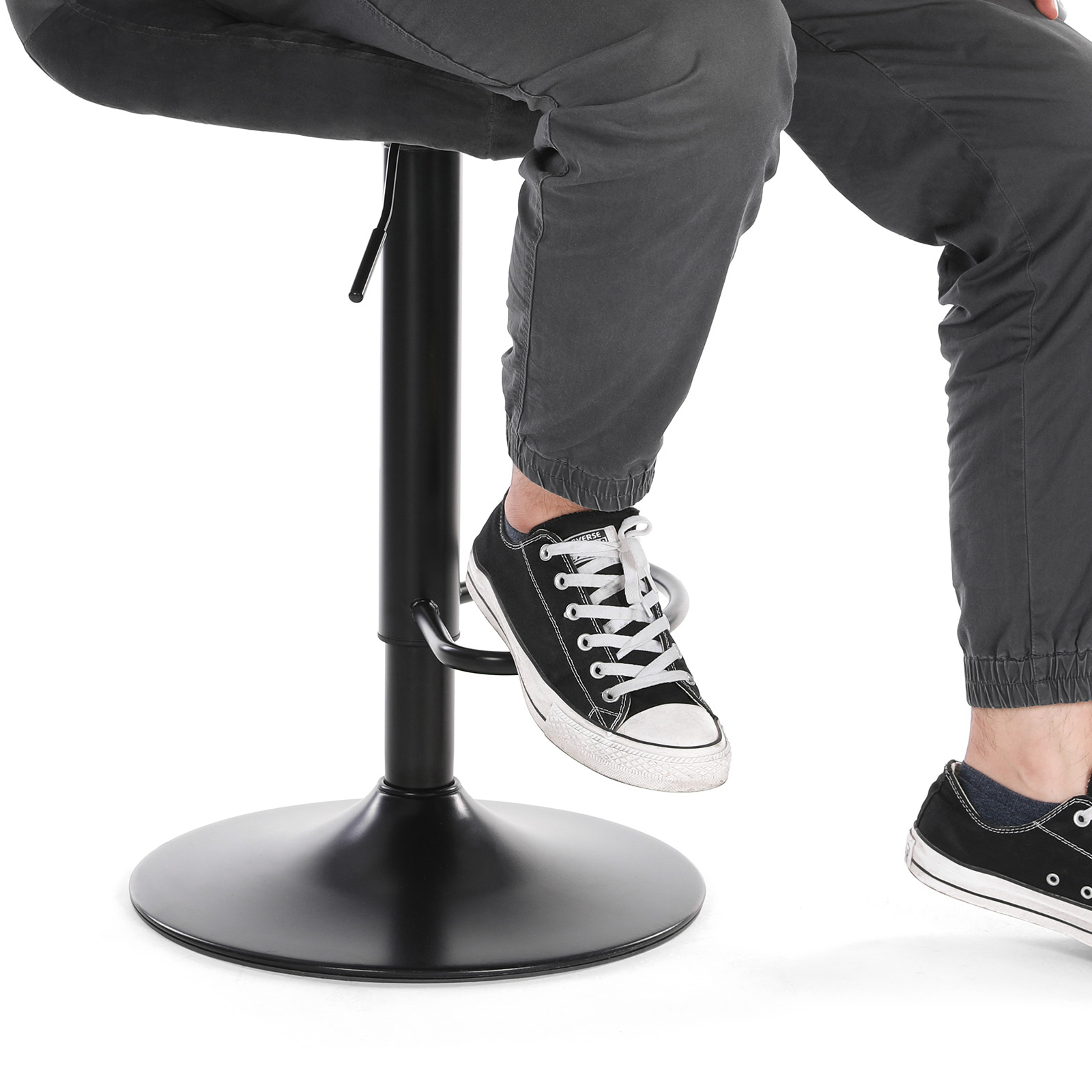 Comfort doesn’t just mean sitting on the couch in the living room. Thanks to these well-upholstered bar stools from SONGMICS, which feature a soft backrest and footrest, comfort now extends to your kitchen as well. Safe rotationThe 360° swivel kitchen chairs rotate smoothly and without wobbling. The base has a large diameter of 41 cm and is equipped with an anti-slip plastic ring on the underside. This ensures safe use and protects your floor from scratches. Elegance to the tipsThe simple profile, comfortable velvet cover, and powder-coated metal structure not only make this product shine, but also your kitchen. Have breakfast here with your loved one, work on the computer, or pour your guests a glass of wine. Product details:- Color: Black- Material: velvet, metal, foam- Size: 38 x 44.5 x (95-115) cm (L x W x H)- Height of adjustable seat: 62.5-82.5 cm- Seat dimensions: 38 x 44.5 cm (L x W)- Backrest height: 32 cm- Base diameter: 41 cm – Weight per chair: 7.8 kg – Max. static load capacity per chair: 120 kg Scope of delivery: – 2 x bar stools – 2 x accessory packs – 1 x instructions (DE, EN, FR, ES, IT)