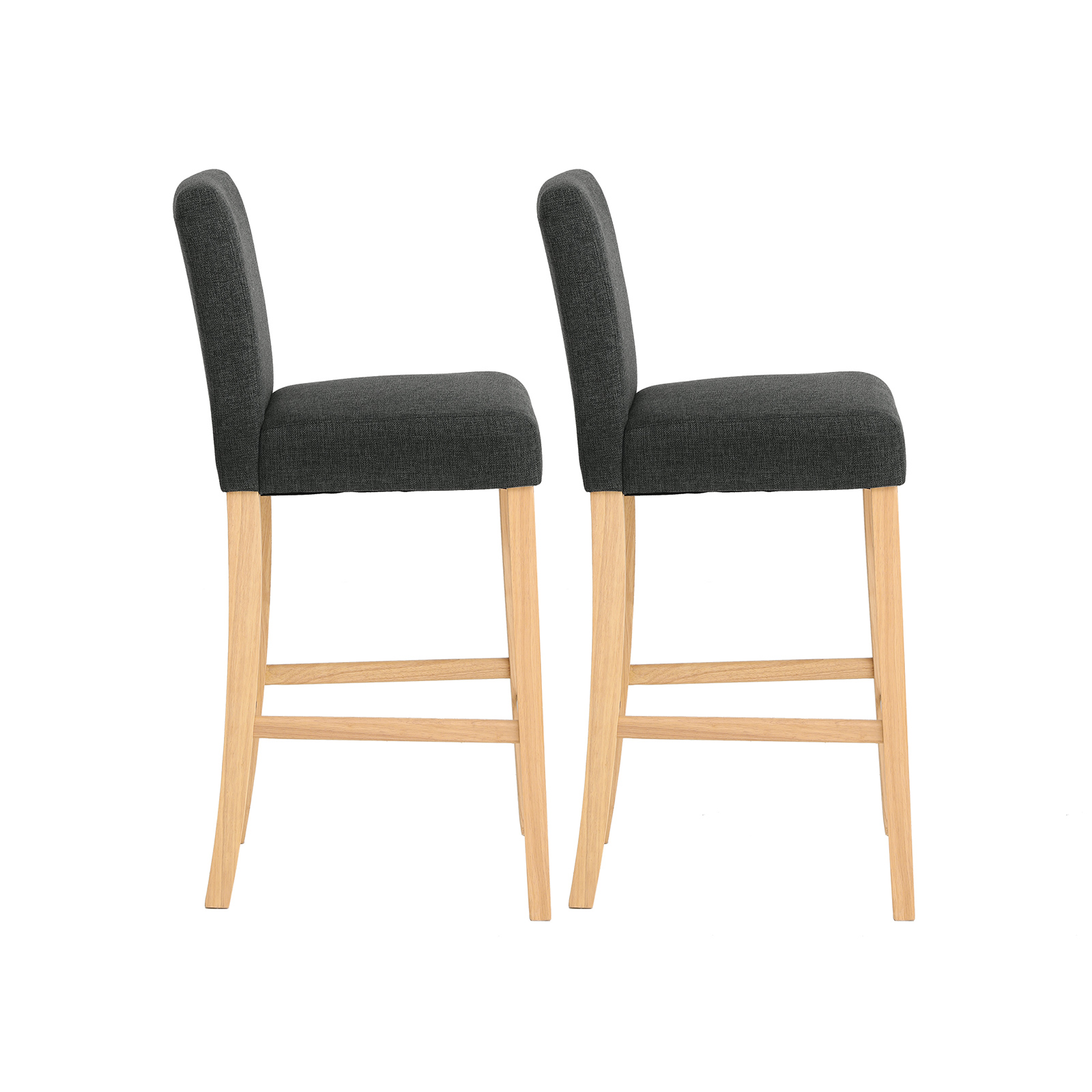 The upholstered bar stool with backrest is a true classic. With a high level of comfort thanks to the beautifully and fully upholstered backrest and seat, and a reasonable seat height with footrest, you can enjoy a relaxing time while eating or drinking. Ideal for counters, bars, living rooms, kitchens, or gardens! Product details:- Color: dark gray, natural- Cover: imitation linen- Backrest frame and legs: rubberwood (clear lacquer finish)- Seat frame: pine wood- Seat plate: plywood- Dimensions: 39 x 99.5 x 51.5 cm (W x H x D)- Seat height: 71 cm; Seat depth: 36 cm; Seat width: 39 cm- Net weight: 6.15 kg/chair- Max. load capacity: 120 kgScope of delivery:- 2 x bar stools- 2 x hardware bags- 1 x instructions (DE, EN, IT, FR, ES)SONGMICS notes:- For lasting stability and safety, it is advisable to regularly check the condition of the screws and tighten them. Repeated assembly and disassembly is also not recommended. – Please never rock while sitting, and all 4 legs should remain on the floor.