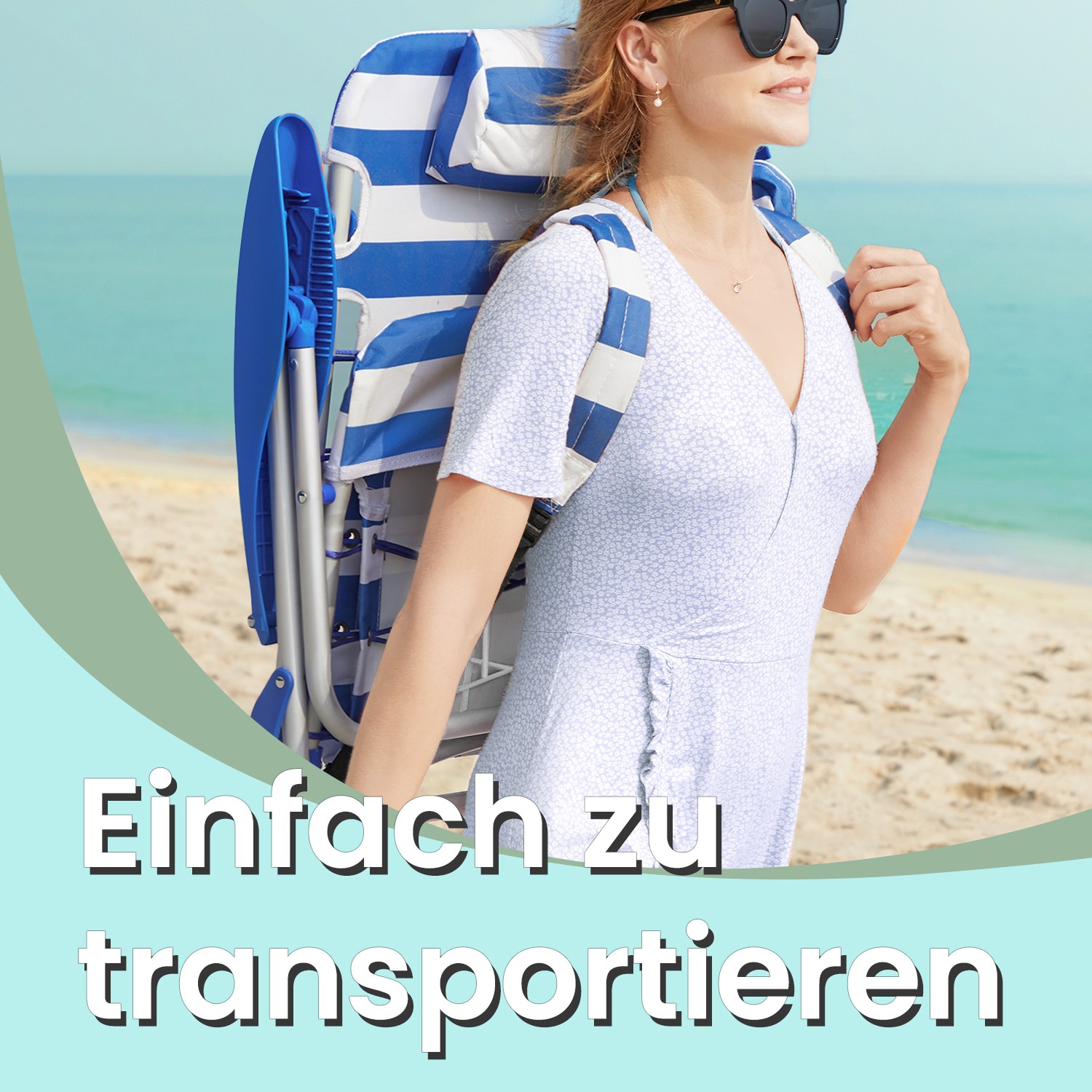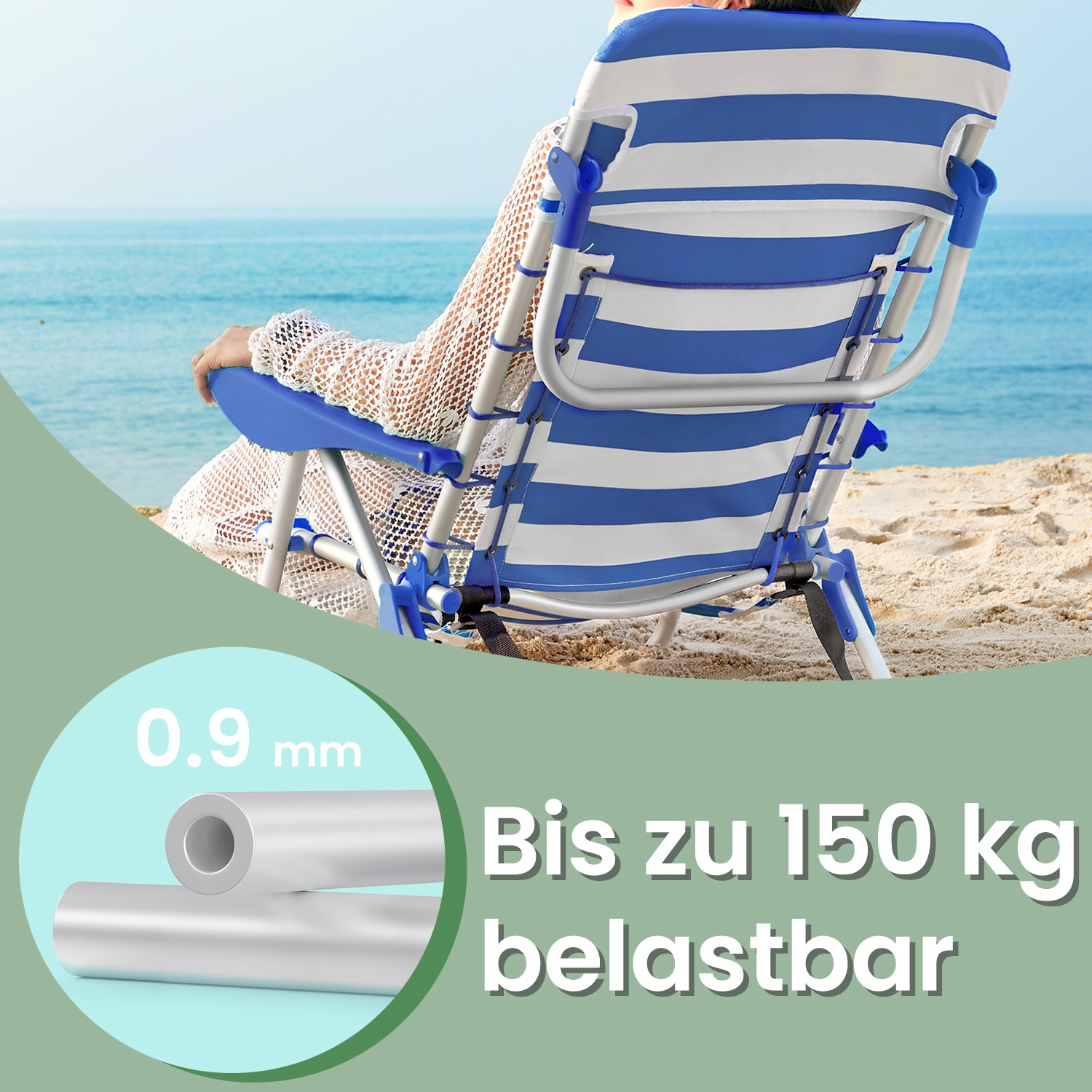 SONGMICS has developed a range of outdoor chairs to increase your comfort when relaxing on the beach, at the campsite, or in the garden. Enjoy your vacation! Fits anywhere Are you planning a beach vacation by the sea? Then this portable beach chair is the perfect choice for you. Are you a camping enthusiast? Then you shouldn’t miss out on this chair either. This practical accessory allows you to relax near your tent and enjoy the fresh air. This folding chair is also ideal if you want to have a picnic with your family in the park. Comfortable and practical Reading a book? Take a nap? Anything is possible on this folding chair! It is made of sturdy 600D Oxford fabric and has a high backrest so that your neck does not get tired when you lean back. In addition, the backrest is adjustable and you can even lie flat on the chair while your head rests comfortably on the cushion. What’s more, this chair can be folded up and, thanks to the shoulder straps and low weight (only 3.1 kg), can be carried easily over your shoulders like a backpack. It also takes up little space in the car. This camping chair offers everything you need! If you are a nature and outdoor lover, check out the other outdoor chairs from SONGMICS! Product details:- Color: Blue and white striped – Material: 600D Oxford fabric, aluminum frame – Dimensions: 63 x 68 x 75 cm – Weight: 3.1 kg – Max. load capacity: 150 kg Scope of delivery: – 1 x beach chair SONGMICS notes: – The product must not come into contact with sharp or pointed objects.