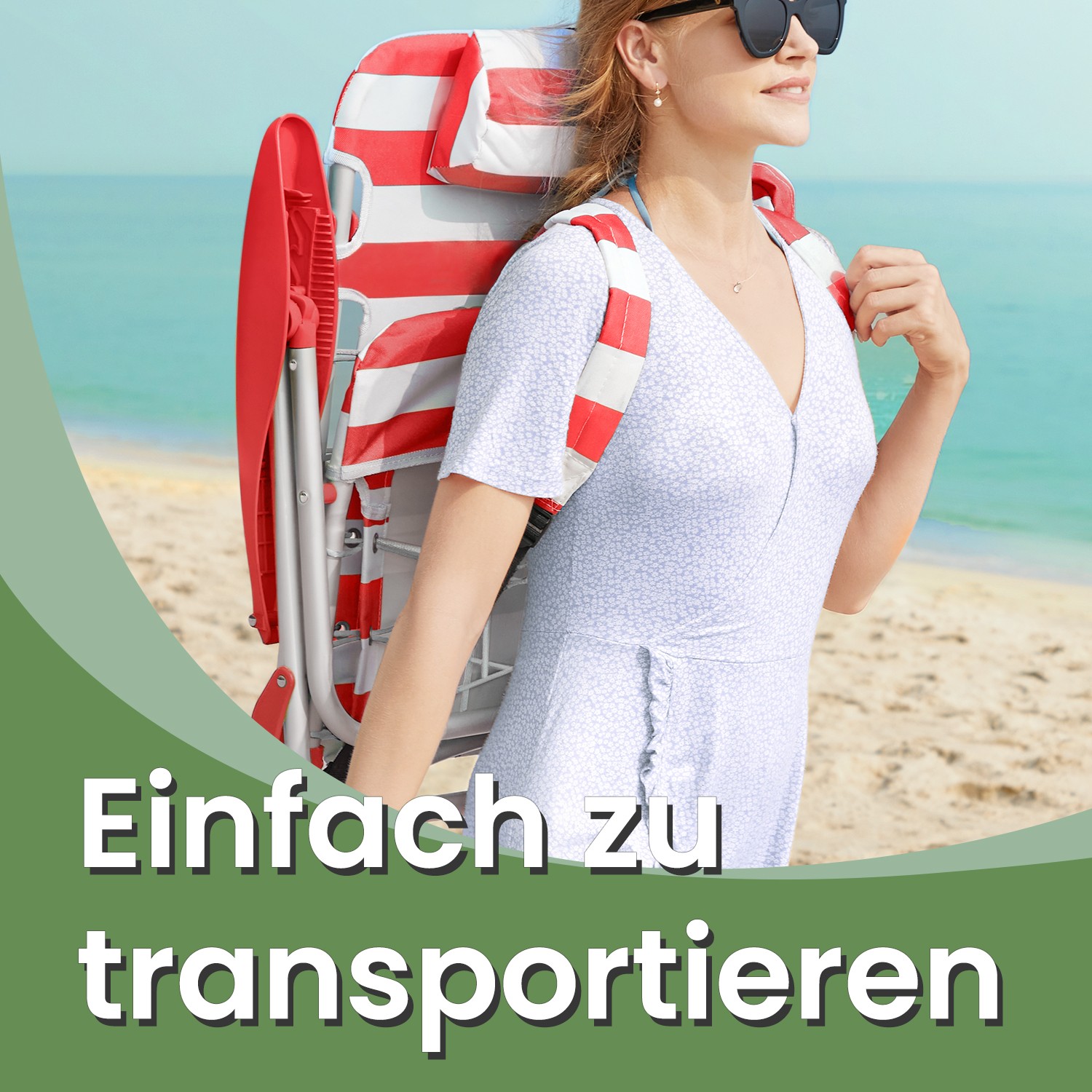 SONGMICS beach chair, camping chair, folding chair, outdoor chair, portable, with shoulder straps, foldable, adjustable backrest, with headrest, armrests, 2 side pockets