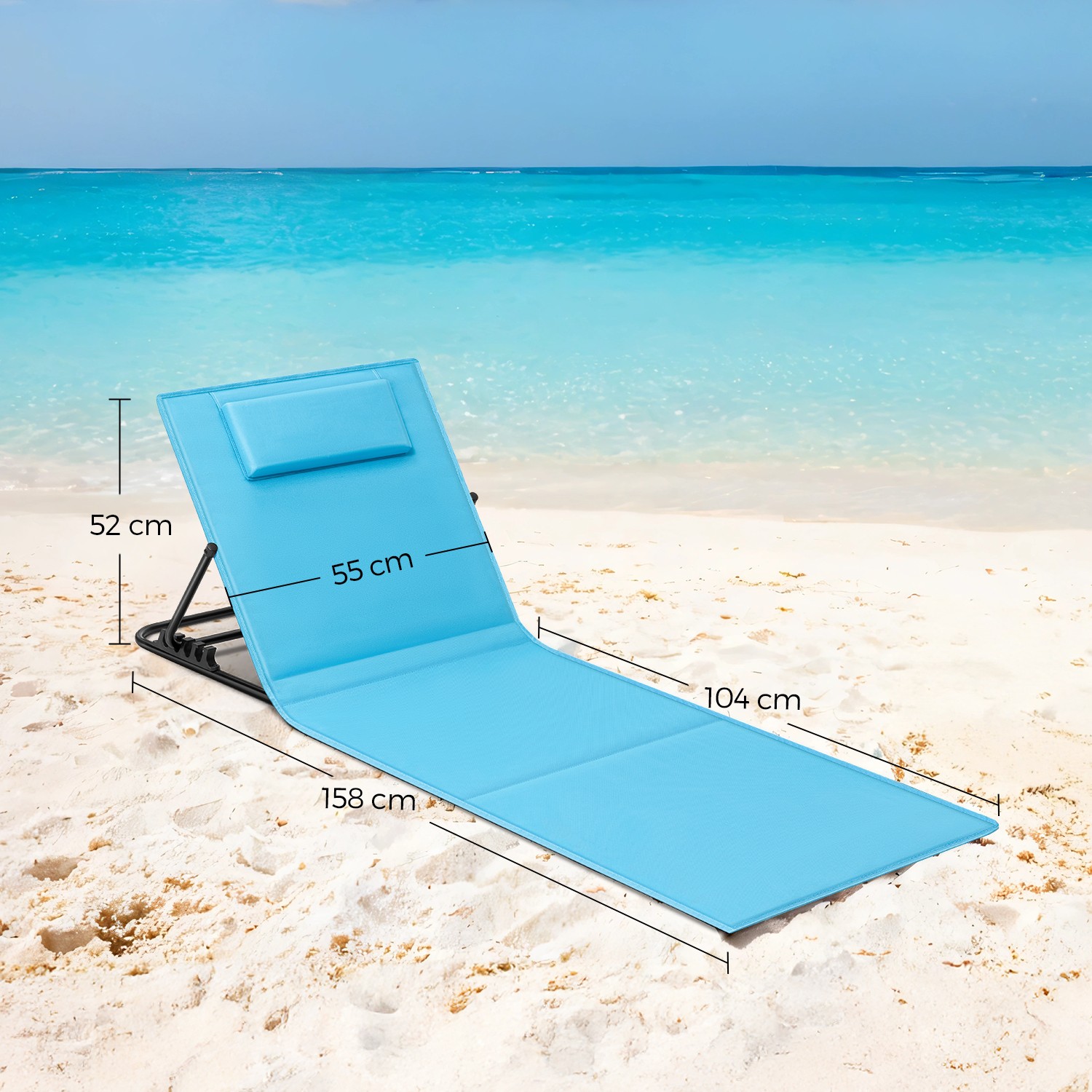 Beach chair, camping chair, sun lounger, foldable, adjustable backrest, handle, camping, garden, pool, 158 x 55 cm, slate gray
