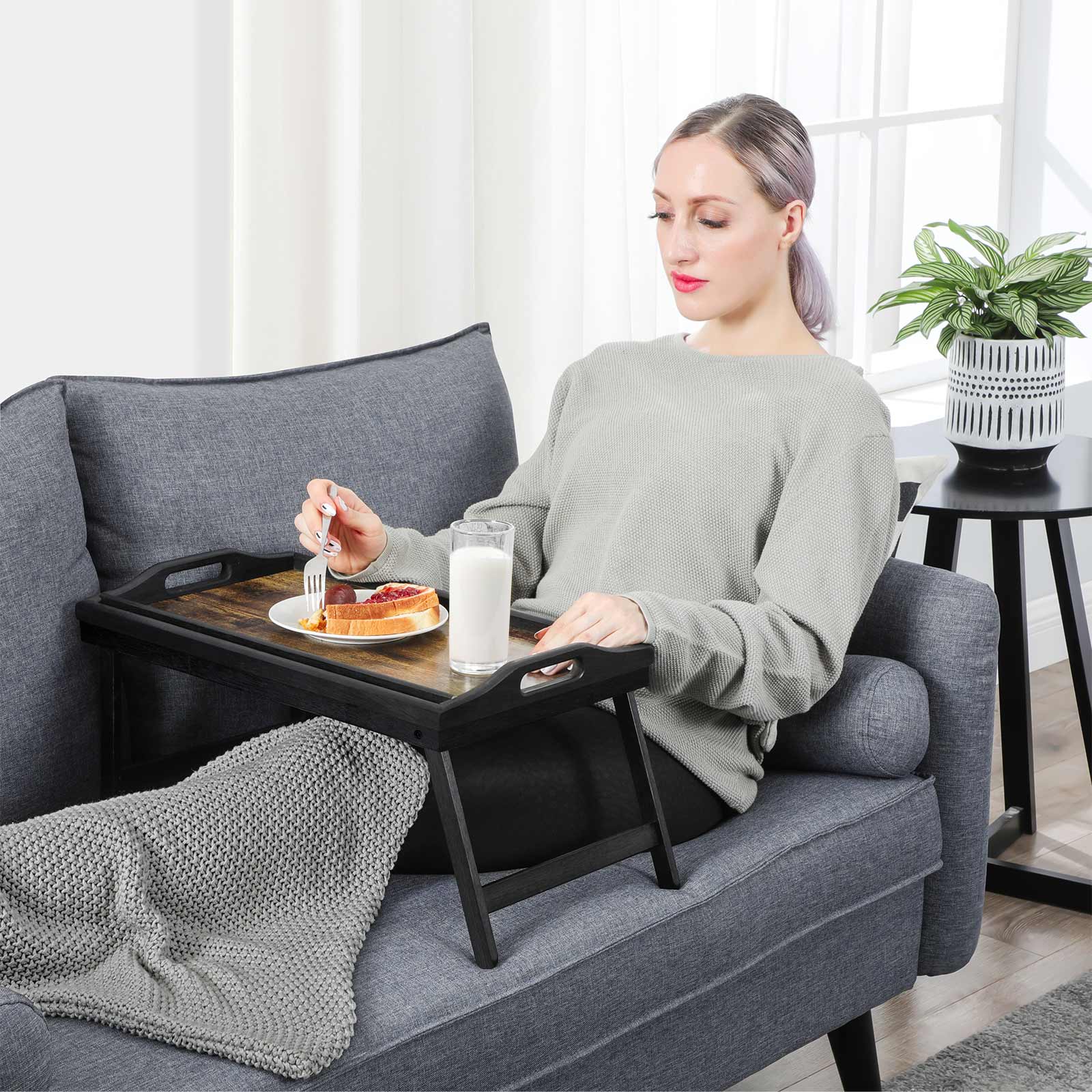 Style meets stability: thanks to its bamboo legs and wood-based tabletop, this vintage-look tray not only looks elegant, but will also serve you well for years to come. For eating, working, and relaxing: this 50 x 30 x 26 cm laptop stand offers you the ideal place to watch movies, surf the internet, or enjoy a romantic breakfast in bed. Also suitable for working or gaming. When folded, it takes up little storage space and can be conveniently taken along on picnics or camping trips. Advantages: Easy to clean. Lightweight, flexible use. Handles allow for easy and convenient transport. Foldable legs: multifunctional and space-saving. Rounded feet to protect people and bedding.Raised edges prevent crumbs from falling into bed. Product details: – Color: vintage brown – Material: bamboo, MDF (medium-density fiberboard) – Size: 50 x 30 x 26 cm (L x W x H) – Weight: 1.25 kg Scope of delivery: – 1 x bed table SONGMICS Notes:- To avoid damage, do not allow the product to come into contact with sharp objects. – Avoid dropping this product on the floor. – Not suitable for children! Risk of injury from trapping hands.