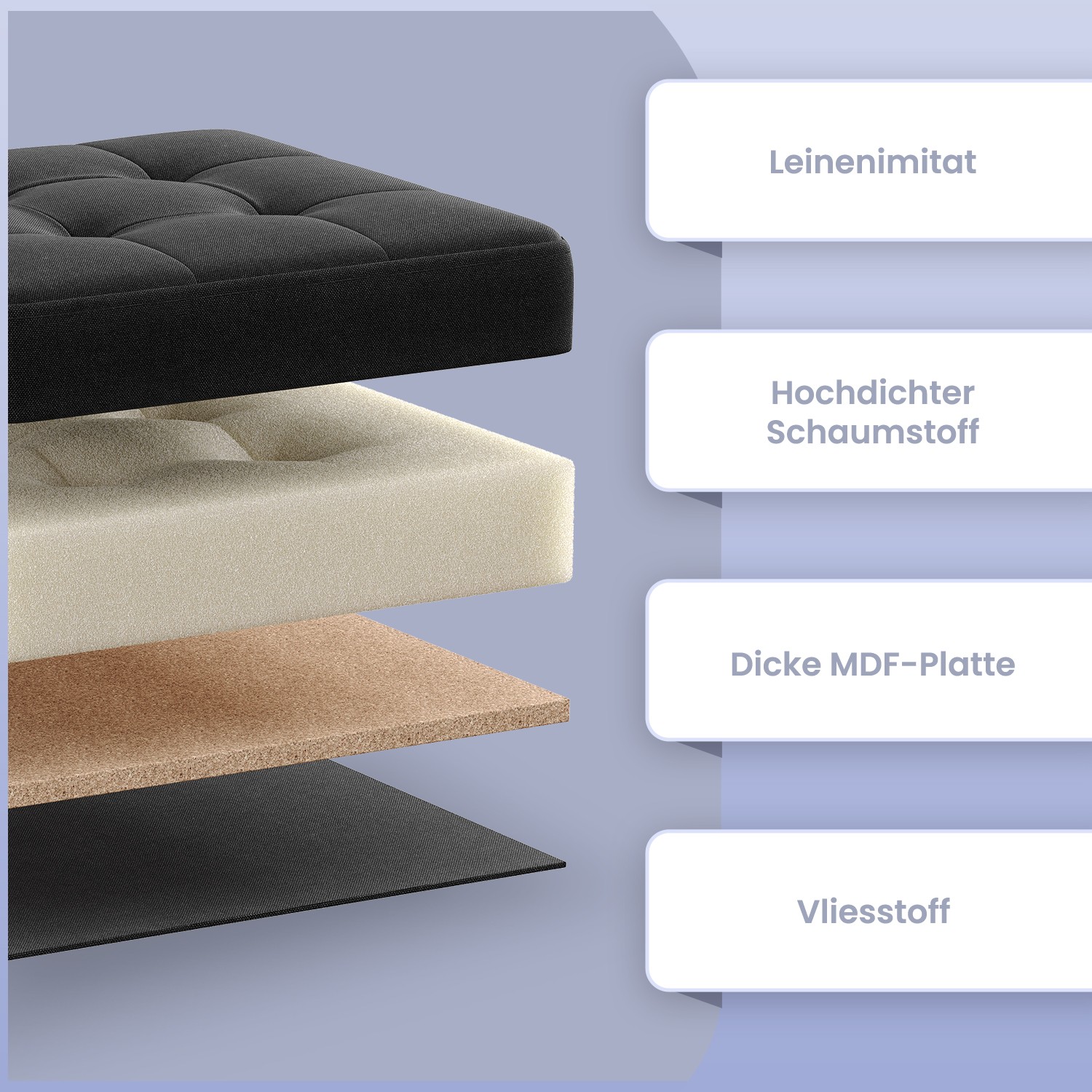 Material: MDF (medium-density fiberboard), faux linen, foam padding