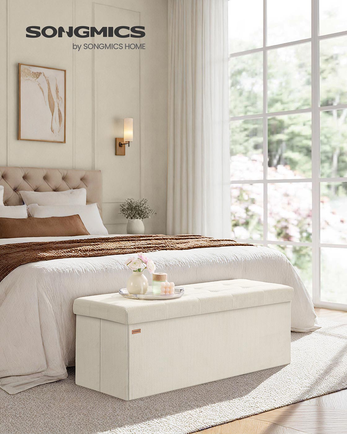 SONGMICS bench with storage space, foldable footstool, 38 x 76 x 38 cm, bed bench, storage box, load capacity up to 300 kg, living room, bedroom, entrance area, pastel pink LSF603R01