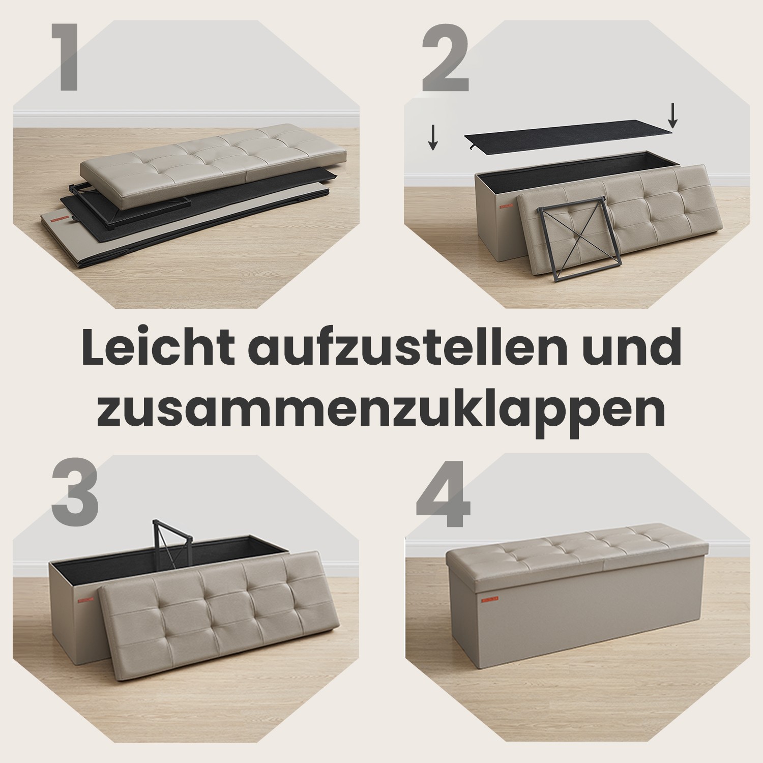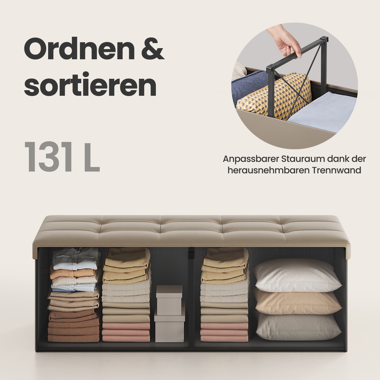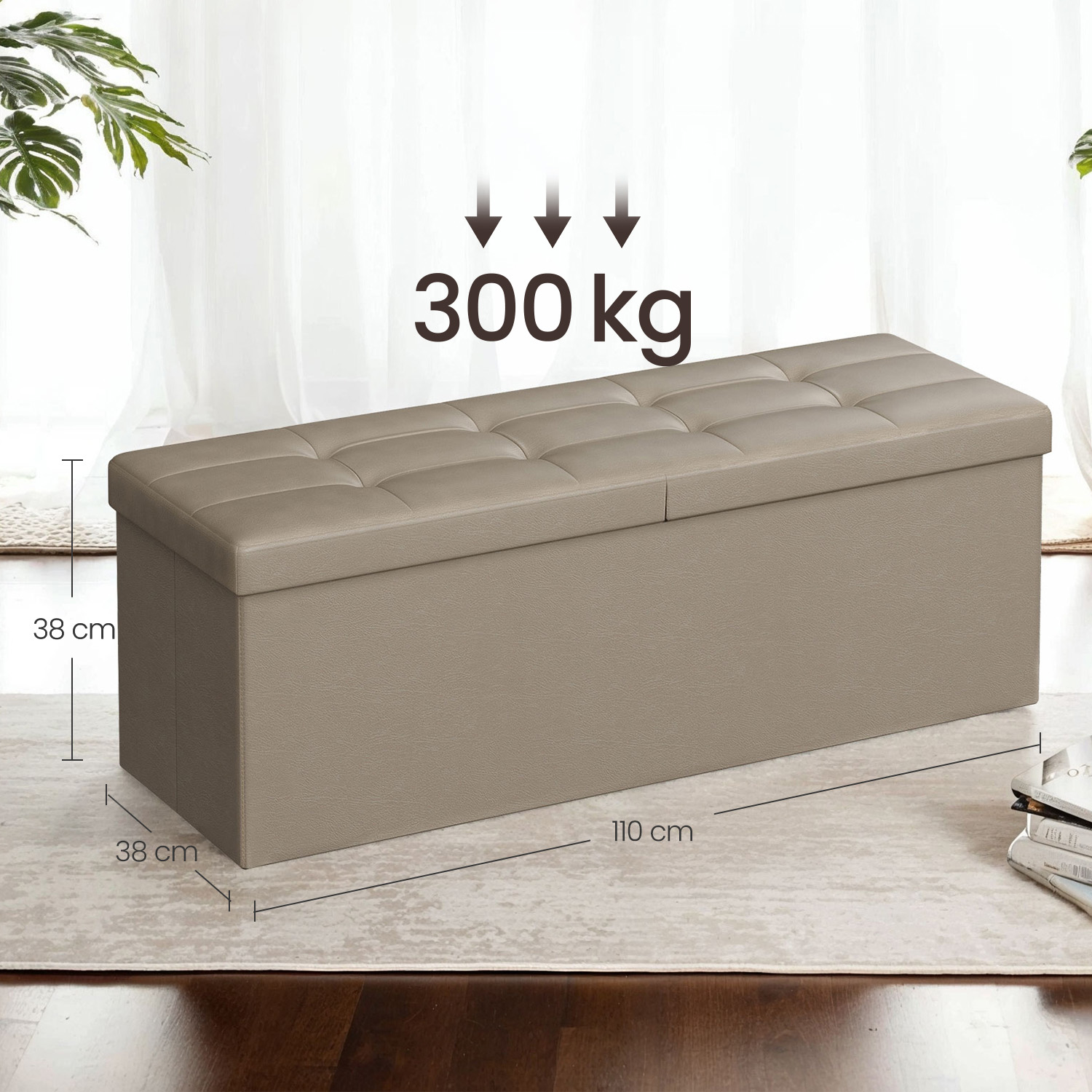 SONGMICS bench, foldable, storage chest, 120 liter capacity, load capacity up to 300 kg, 38 x 110 x 38 cm, coffee brown LSF075K01