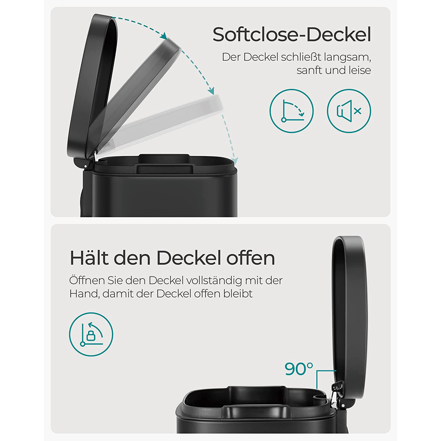 Recycling can be easy: this trash can has a capacity of 30 liters and protects your family from bacteria and unpleasant odors thanks to its airtight seal. But the best thing about this trash can is that you don’t have to touch it with your hands when disposing of waste, ensuring a high level of hygiene.A “puppy- and child-proof” trash can: Does your dog often rummage through the trash can? Do your little ones frequently reach into the open container? If so, you’ll definitely want to put a stop to that. That’s where our pedal trash can comes in! The lid only opens when you press the pedal. With its high-quality material and practical design, this trash can offers a clever solution for waste disposal.Product details: Color: Black Material: Steel, plastic (inner bucket) Size: 35 x 23.8 x 63 cm (L x W x H) Inner bucket size: 35 x 23.5 x 57.5 cm (L x W x H) Total height (with lid open): 85.5 cm Weight: 3.8 kg Scope of delivery: 1 x trash can SONGMICS notes: To clean the product, please wipe it with a soft, damp cloth and use mild cleaning agents if necessary.