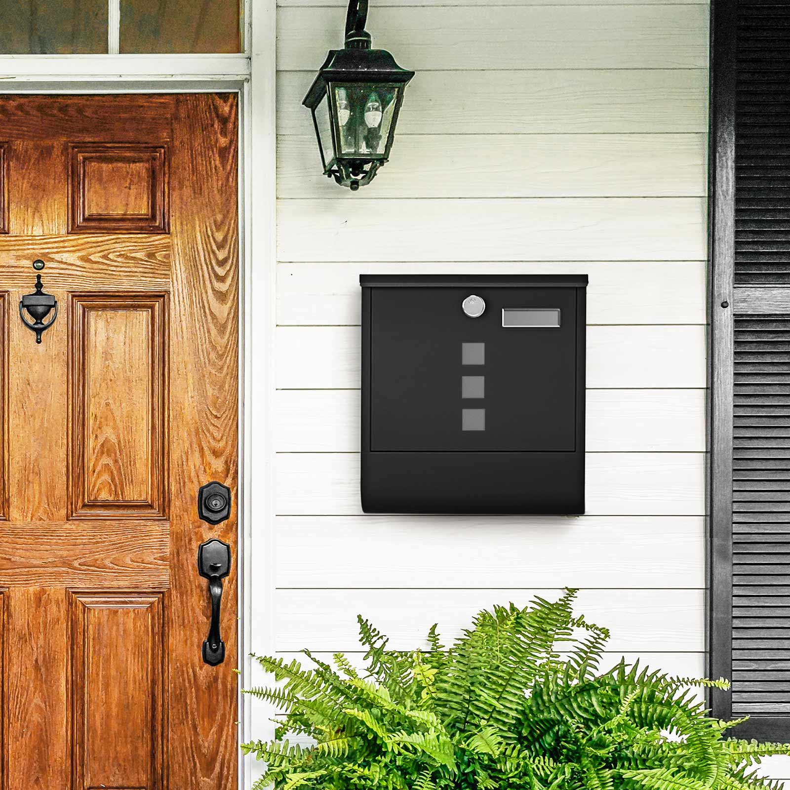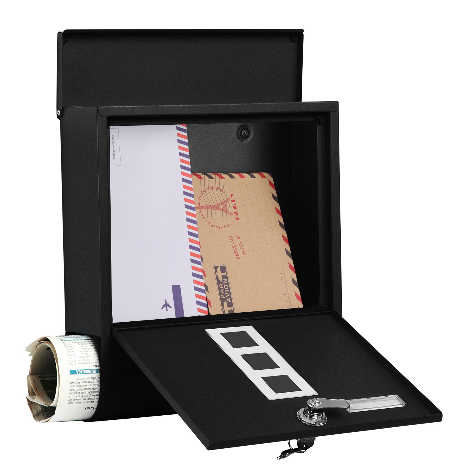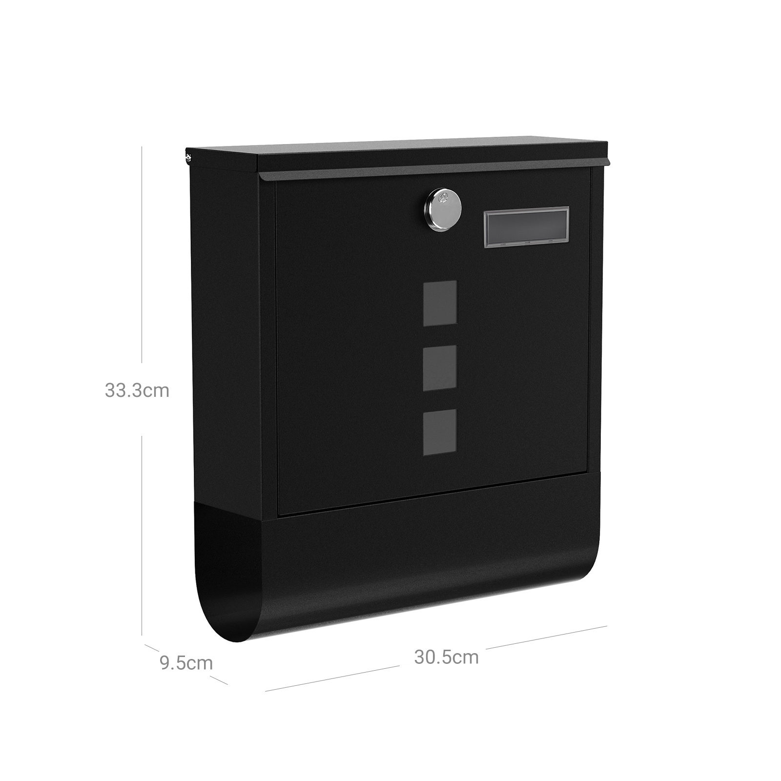 Product details: Color: Black Material: Powder-coated steel Size: 30.5 x 9.5 x 33.3 cm (L x W x H) Weight: 1.6 kg Scope of delivery: 1 x mailbox 1 x accessory package SONGMICS notes:It is recommended to place the mailbox in a weather-protected location to ensure a longer service life.