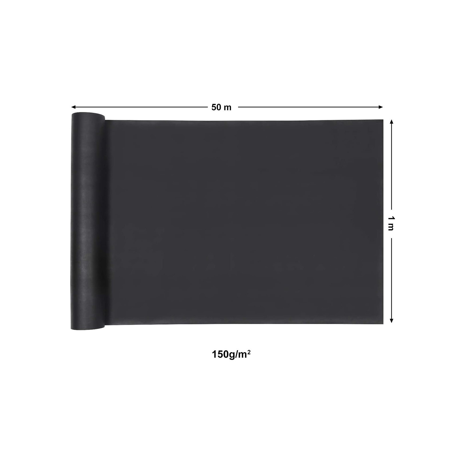 NO MORE DRAMA: Controlling weeds without chemicals does not mean you have to go back to the Stone Age. And you certainly don’t have to spend hours bending over your flower beds pulling weeds. This weed barrier is your advanced ally in the fight against pesky plants. Lay this 50 g/m² PP film with UV stabilizer over your soil before planting flowers or vegetables. The fabric blocks the sun’s rays, which weeds need to sprout from the ground. Now you can finally stop worrying about those unwanted pests! THE SOIL STAYS WELL MOIST: The garden fabric doesn’t just keep weeds at bay. The fabric is also breathable and water-permeable, allowing rain to flow through without any problems. The fabric also regulates moisture in the soil, allowing your plants to sprout healthily and vigorously. Product details: Color: Black Material: 150 g/m² PP (polypropylene), UV stabilizer Size: 1 m x 50 m (W x L) Weight: 8.5 kg Scope of delivery: 1 x garden fabric 10 x ground anchors