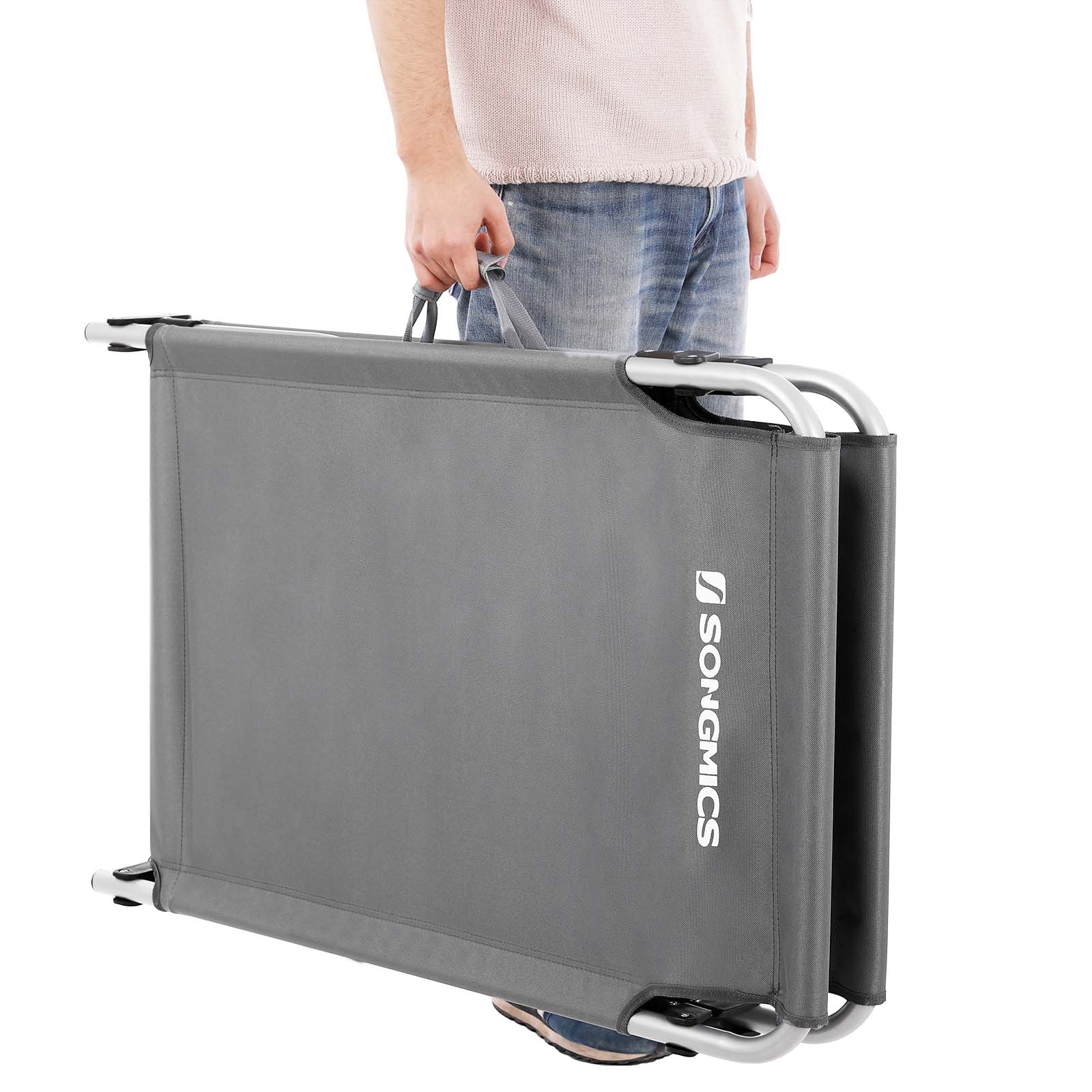 The T-shaped connecting piece provides greater stabilityMax. static load capacity is 260 kgComfortable lying surface600 D Oxford fabric, robust & moisture resistantEasy to transportThe camp bed can be folded up compactly for easy transport and storageTechnical detailsColor: GrayBatteries included: NoItem weight: 6.9 kgProduct weight incl. packaging: 8.3 kg