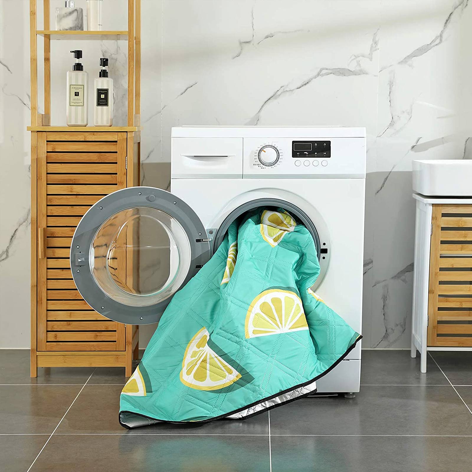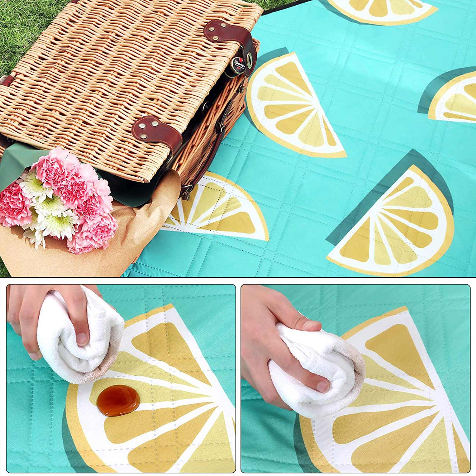 Enjoy the beauty of nature Whether you’re preparing for a spring picnic, summer camping trip, music festival, or simply sunbathing in nature, this blanket is your ideal accessory for a day at the park, beach, garden, or pool. High-quality workmanship With a soft polyester surface, aluminum coating, and foam layer in the middle, this picnic blanket is both cozy and waterproof. Simply fold it up to a compact size and take it with you when you travel. Product details:- Color: Lemon – Material: Polyester surface, foam padding, aluminum coating – Folded size: 41 x 14 x 14 cm (L x W x H) – Unfolded size: 200 x 150 cm (L x W) – Weight: 0.7 kg Scope of delivery: – 1 x Picnic blanket SONGMICS Notes:- Due to different lighting conditions or monitors with different resolutions, there may be slight color variations compared to the products shown in the pictures. – Please do not place this product on sharp or pointed objects such as stones or branches to avoid injury or damage. – Please do not wash the product too often in the washing machine, as this can negatively affect its service life.