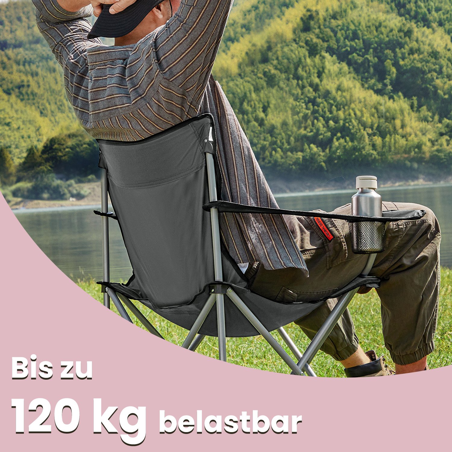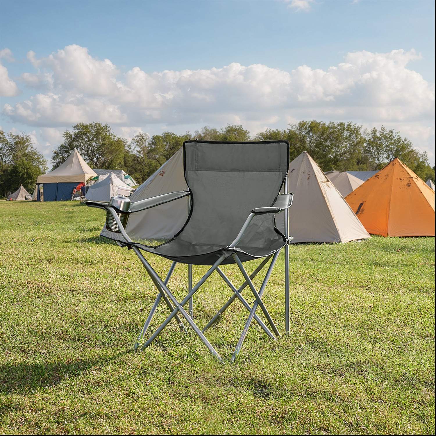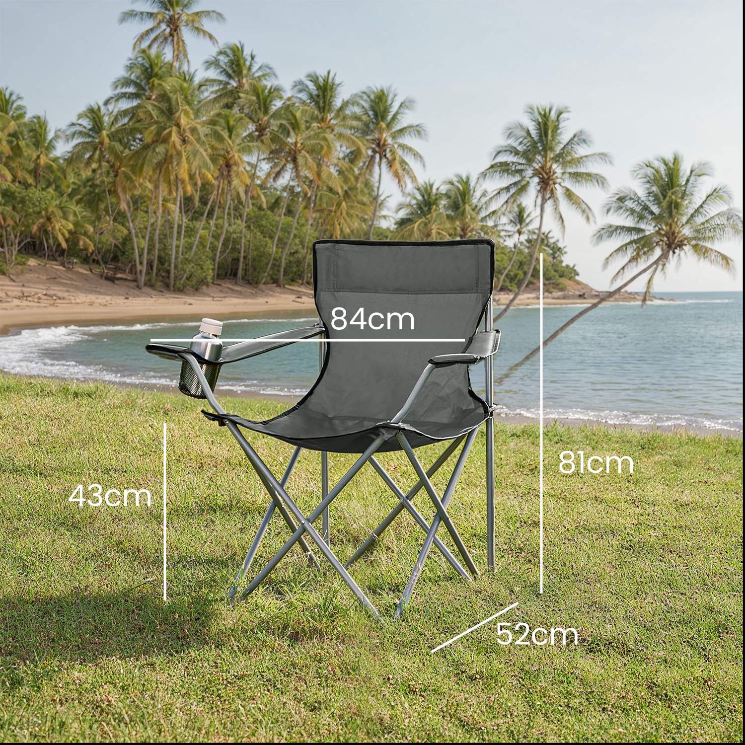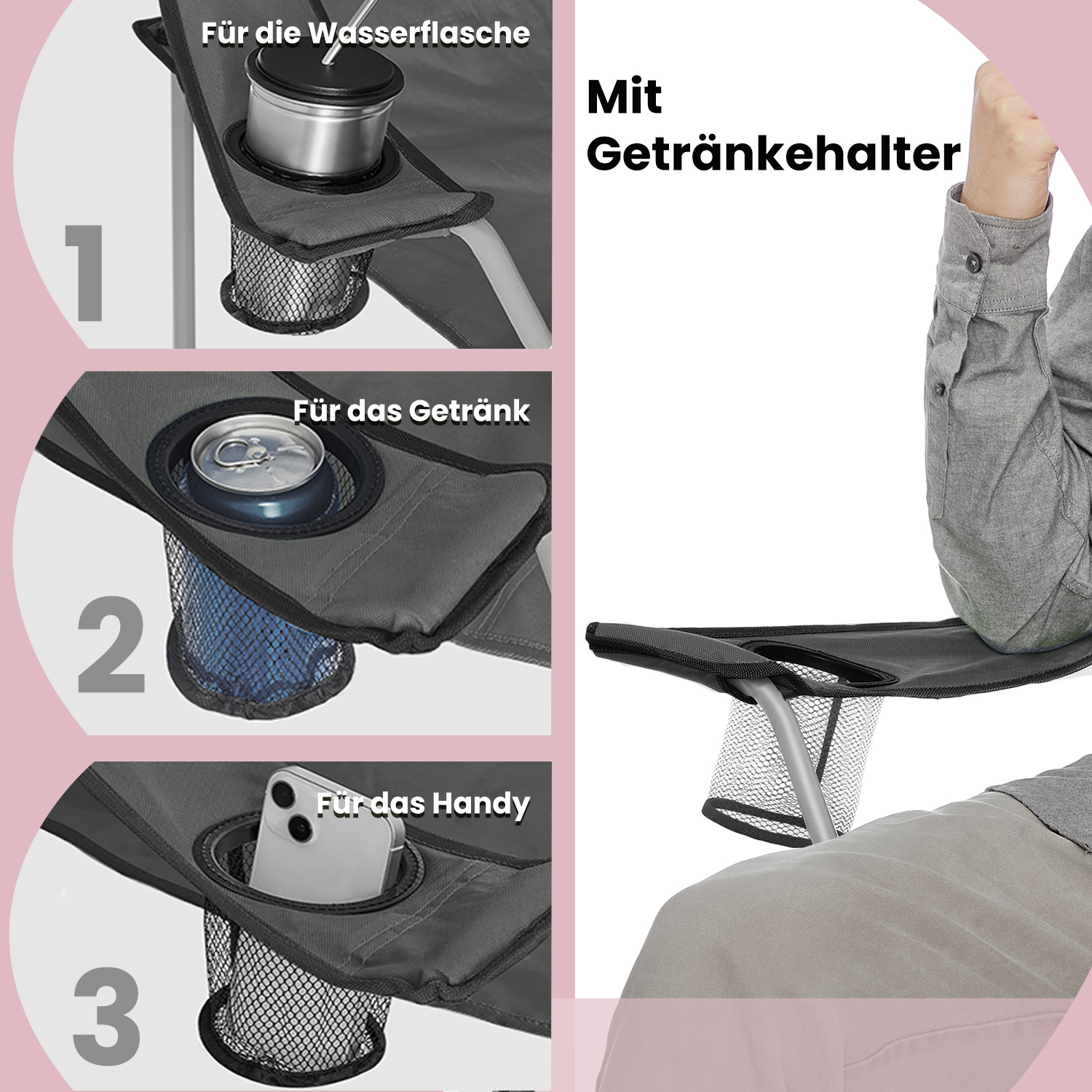 Camping chair set of 2, folding chair for outdoor use, with armrests, drink holder, foldable, load capacity up to 120 kg, camping, garden, beach, slate gray